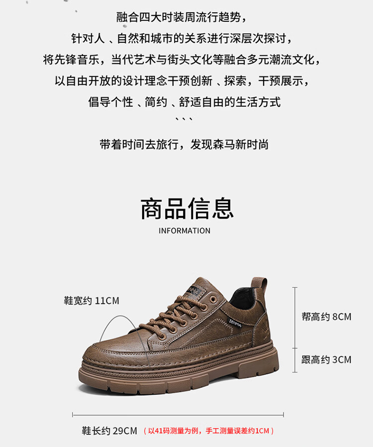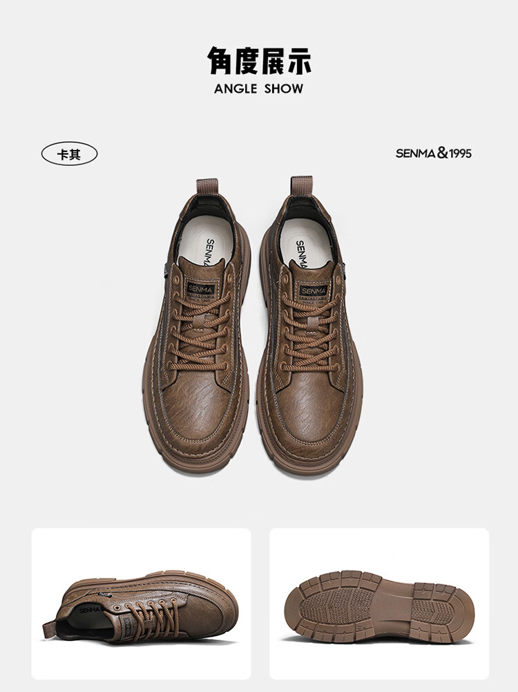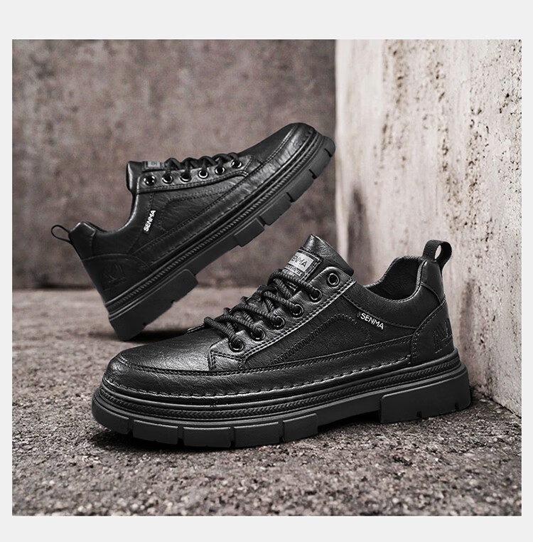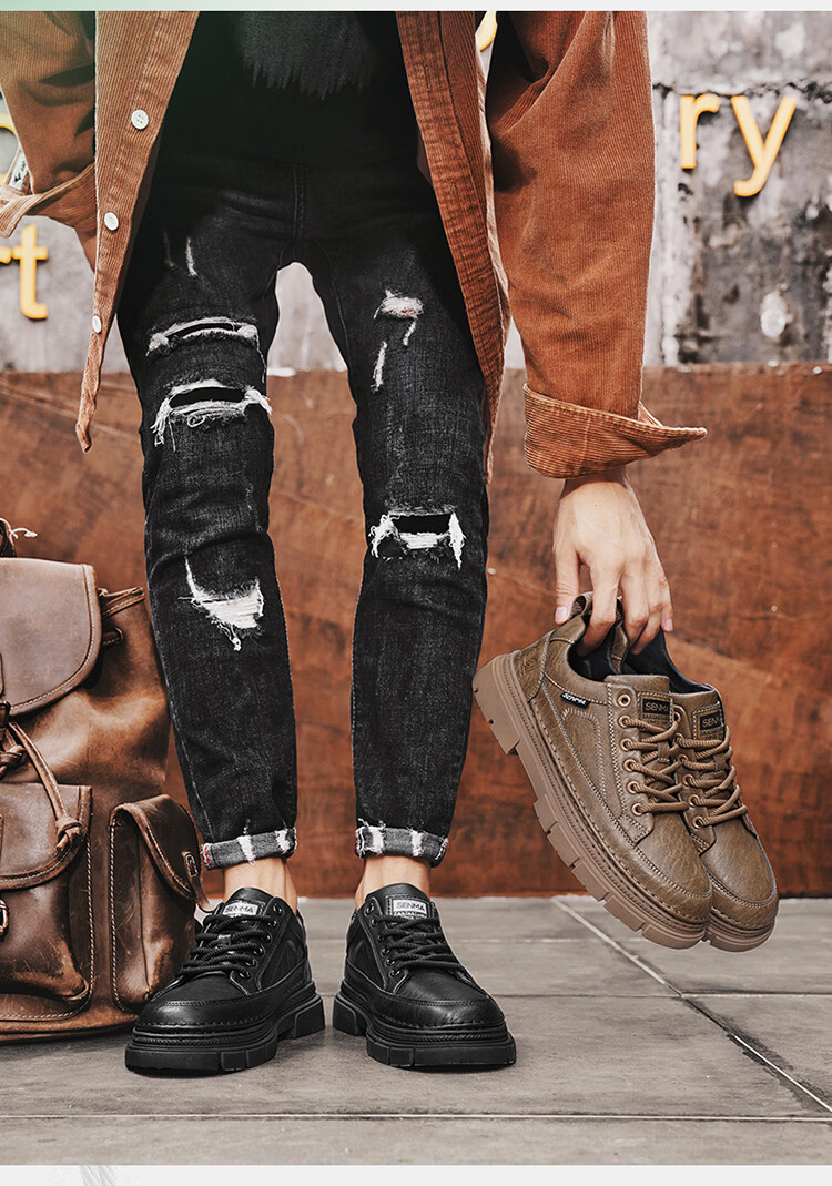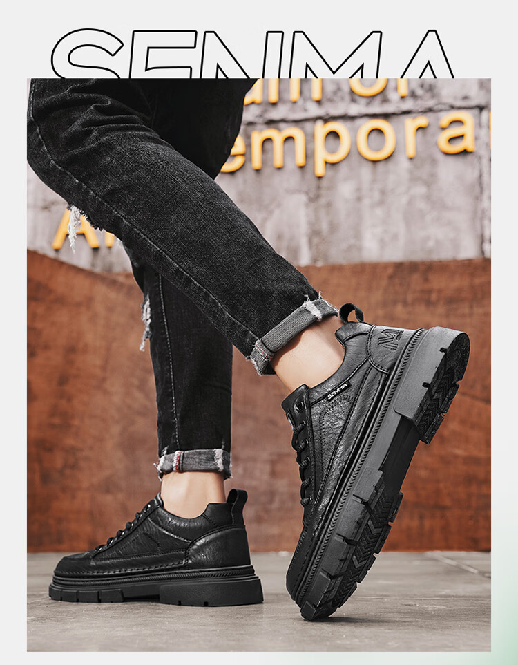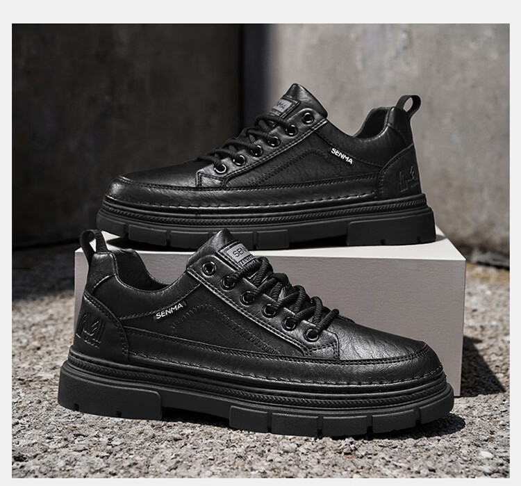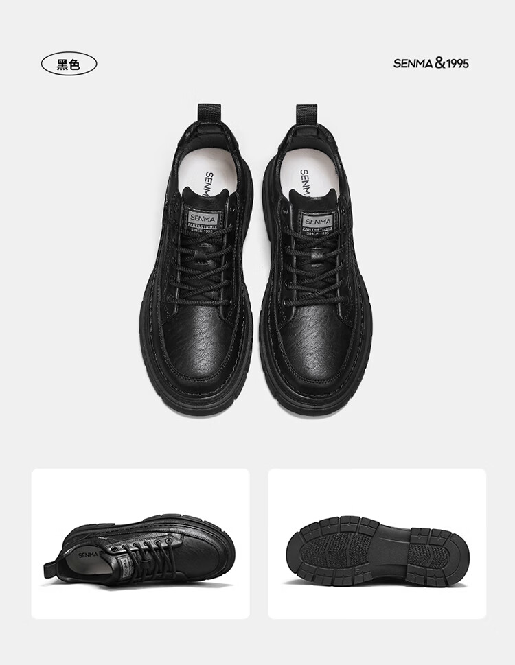 森馬男鞋2026年新款春季英伦风商务休闲皮鞋男士厚底增高黑色防滑板鞋 黑色【基础款】 39 标准码数/现货秒发