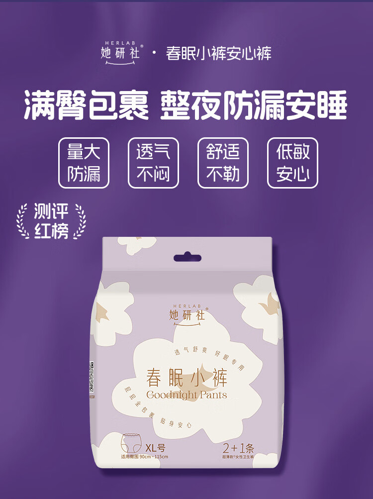 屈臣氏Herlab她研社女性卫生裤 M-L码 3条 80-110斤