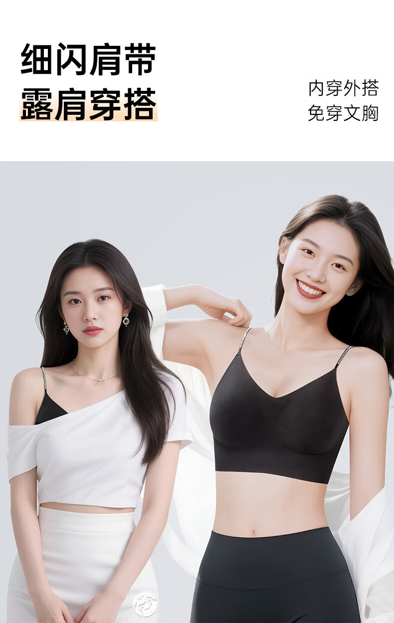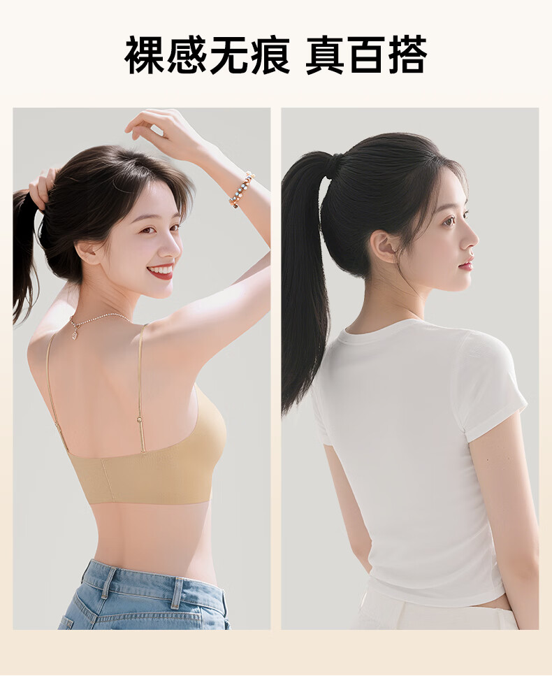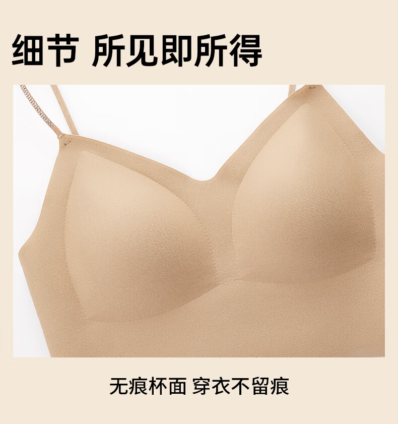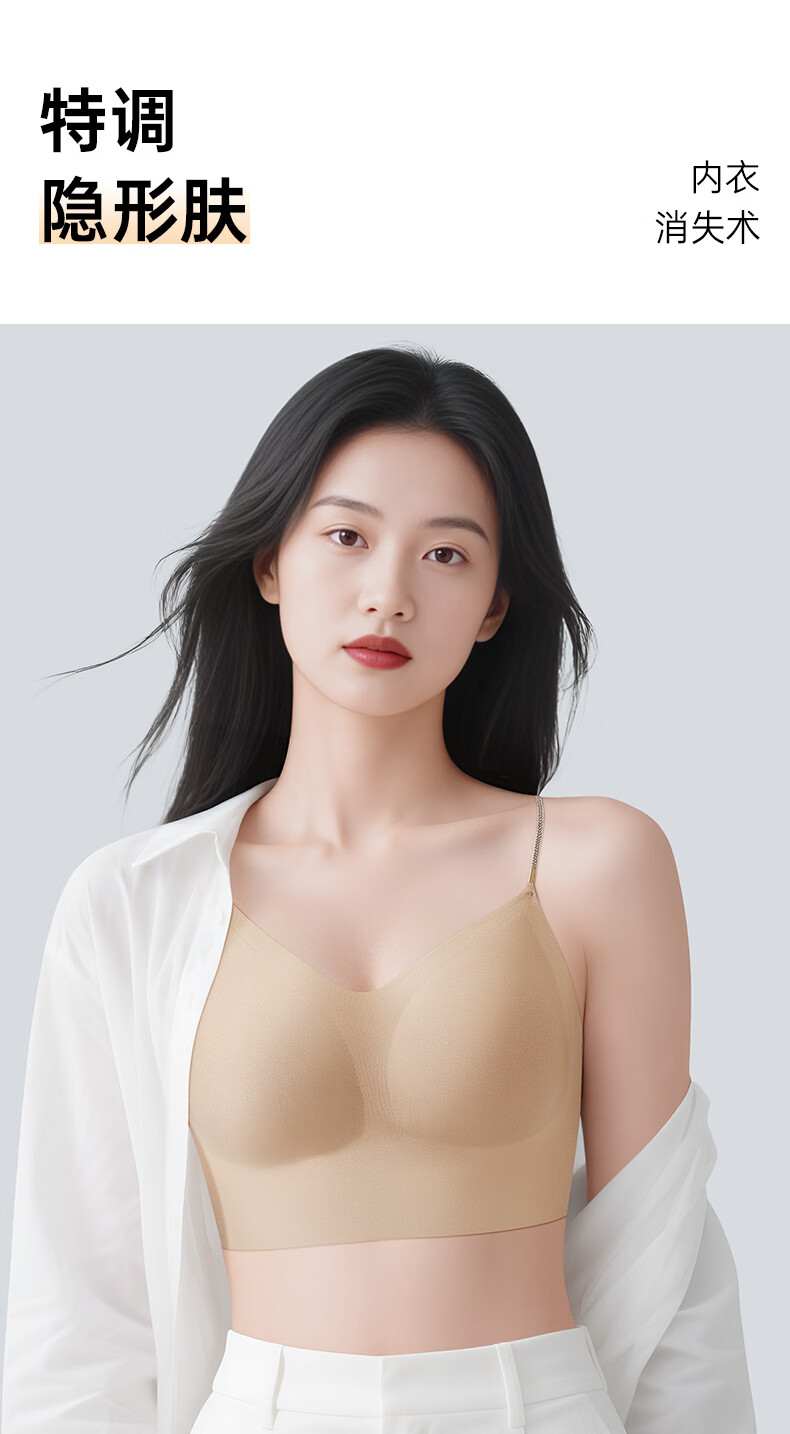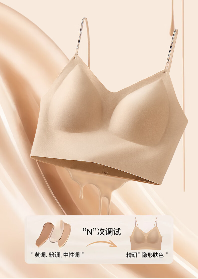 润微粉底液隐形内衣光面薄款细肩带无痕美背抹胸背心文胸罩内衣女 隐形肤 M (70AB/75AB)
