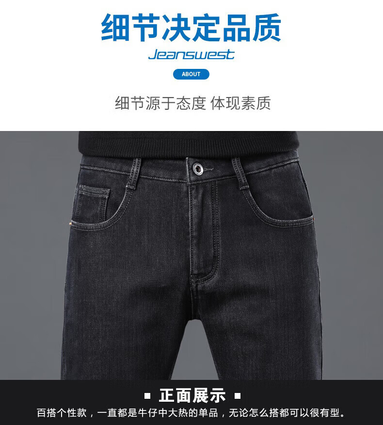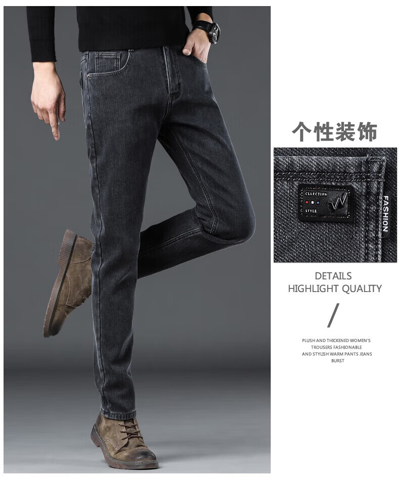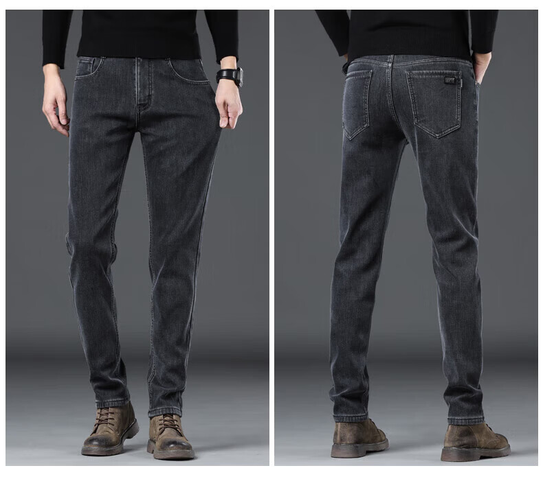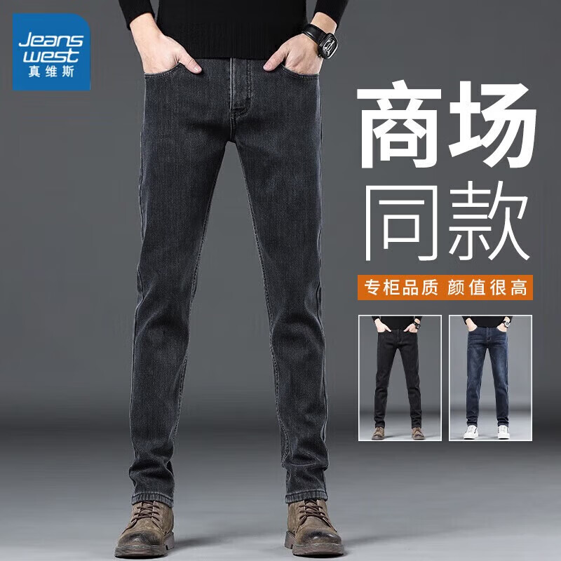 真维斯(Jeanswest)男士牛仔裤秋冬款加绒加厚宽松直筒长裤2026新款冬季修身保暖裤子 烟灰色【秋冬常规】 28 建议体重95-110斤