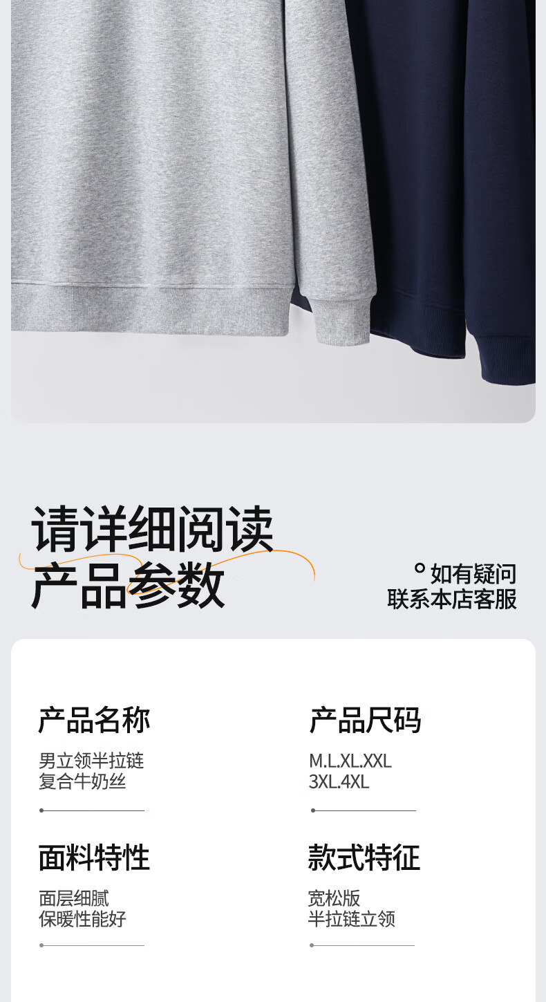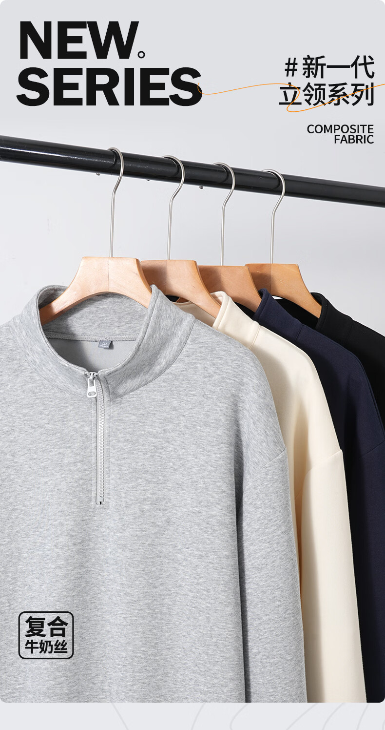 真维斯(Jeanswest)男士半拉链卫衣春秋季2026新款宽松休闲男装上衣潮流大码立领外套 米色 字母织物蓝_K M