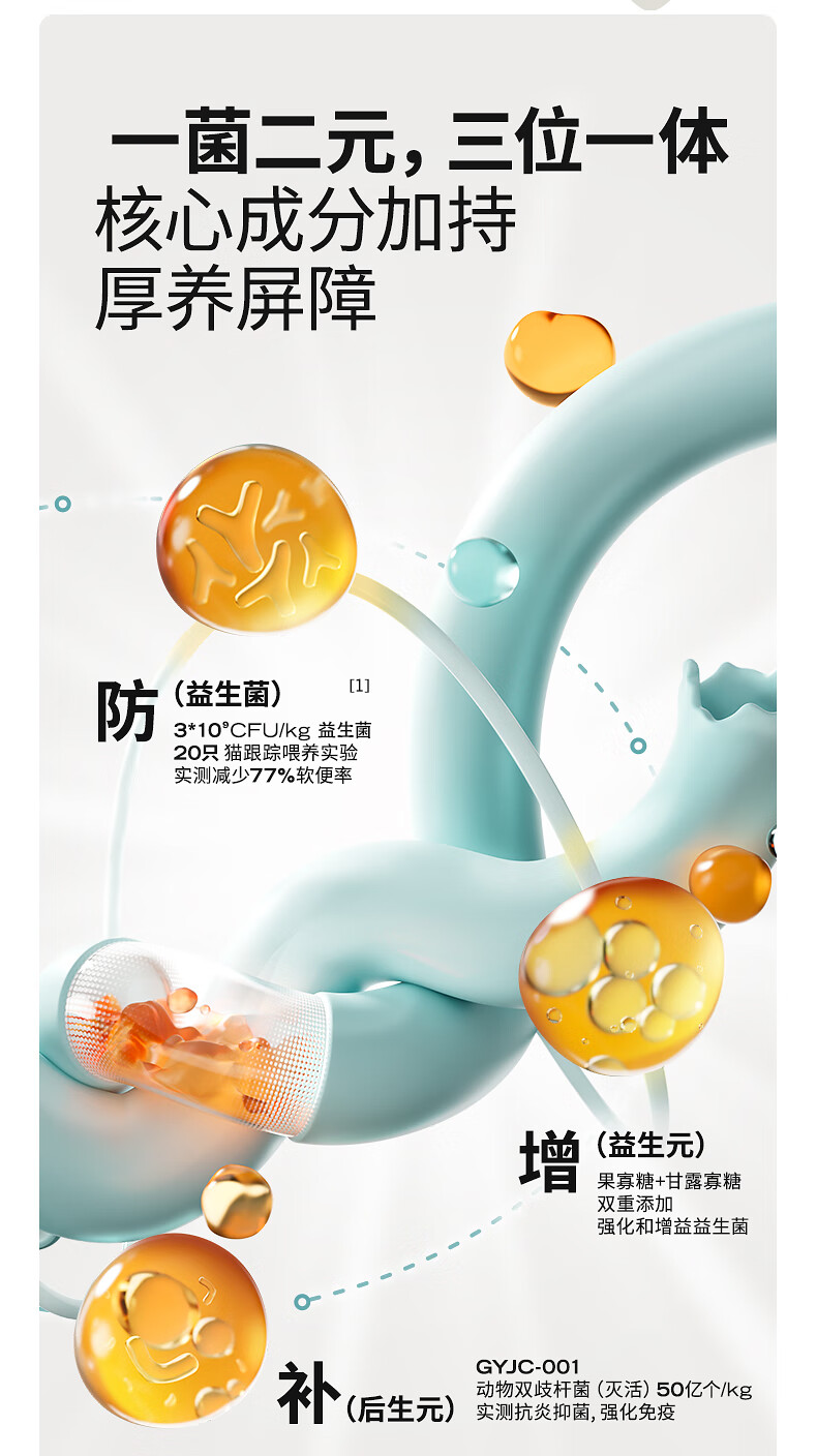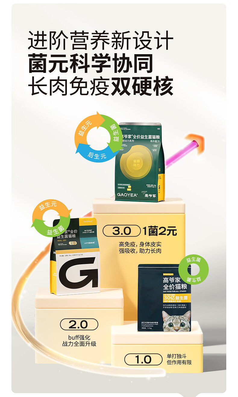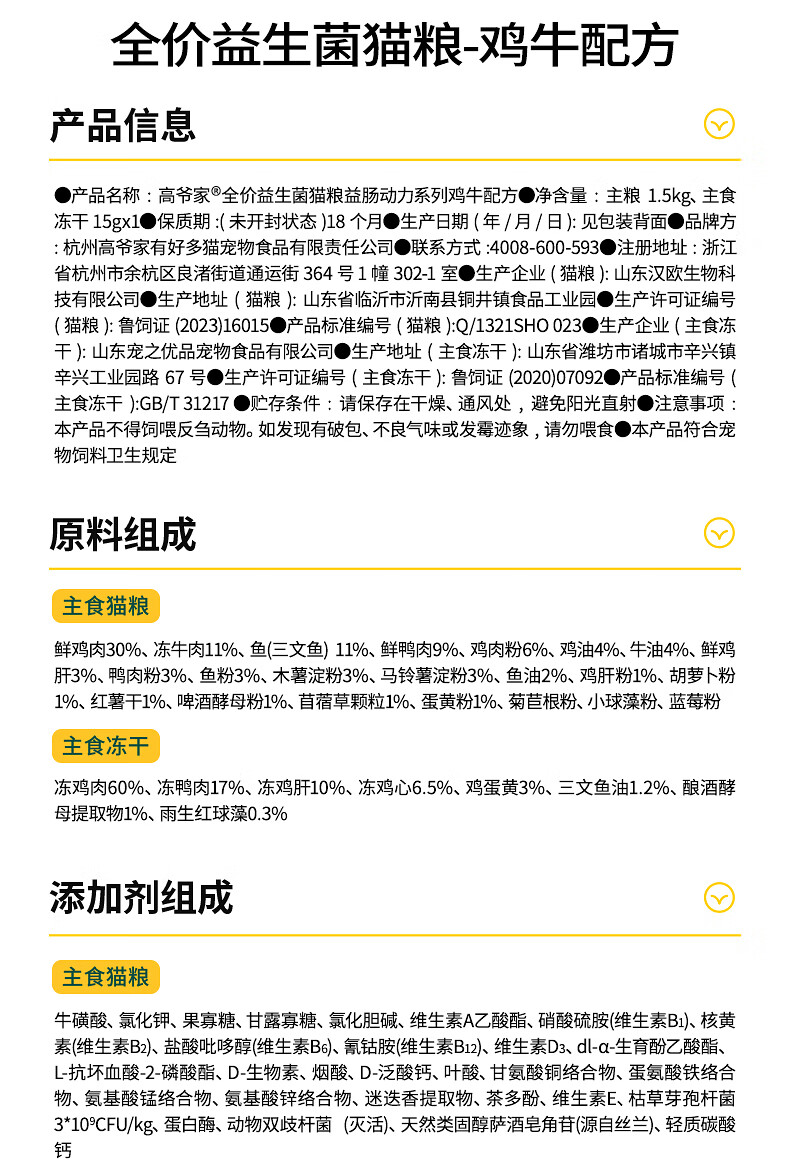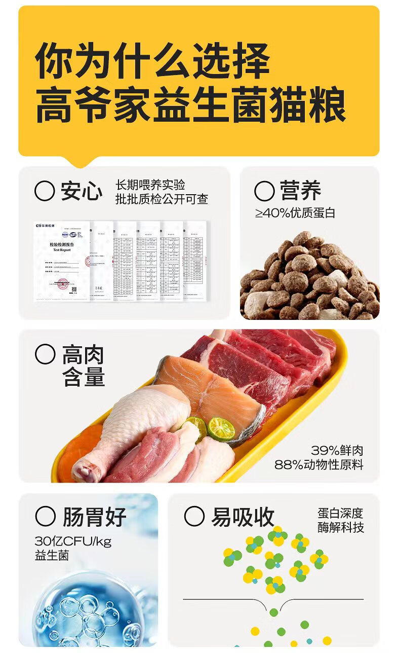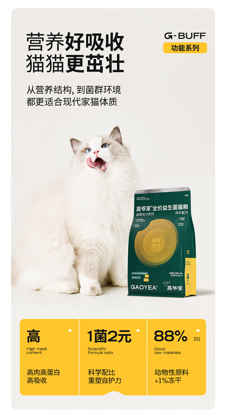 高爷家全价益生菌 高肉冻干 易消化 鱼肉益生菌猫粮1.5kg*3包