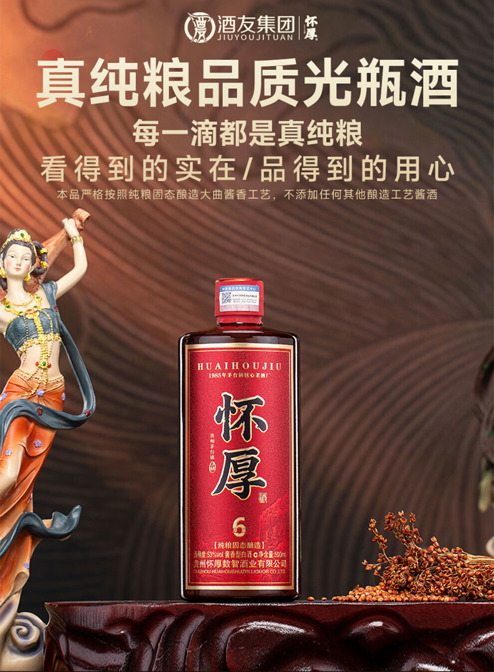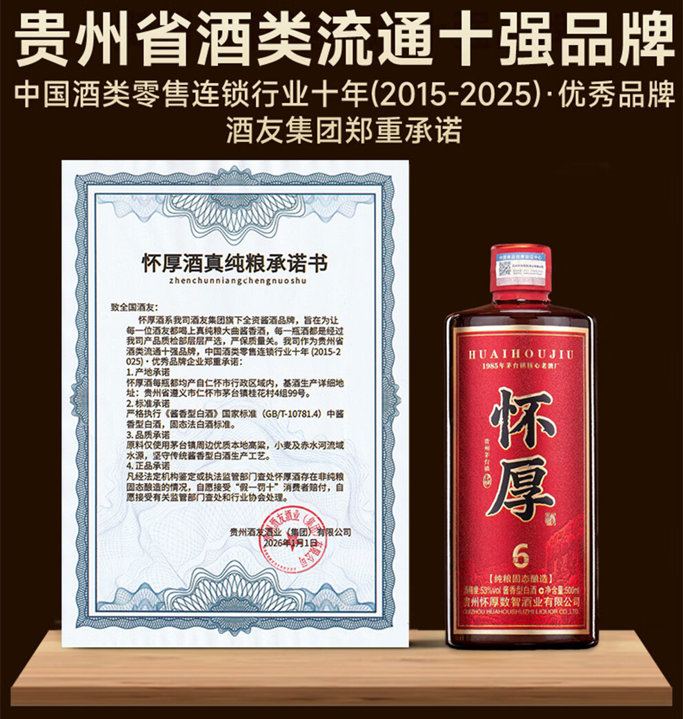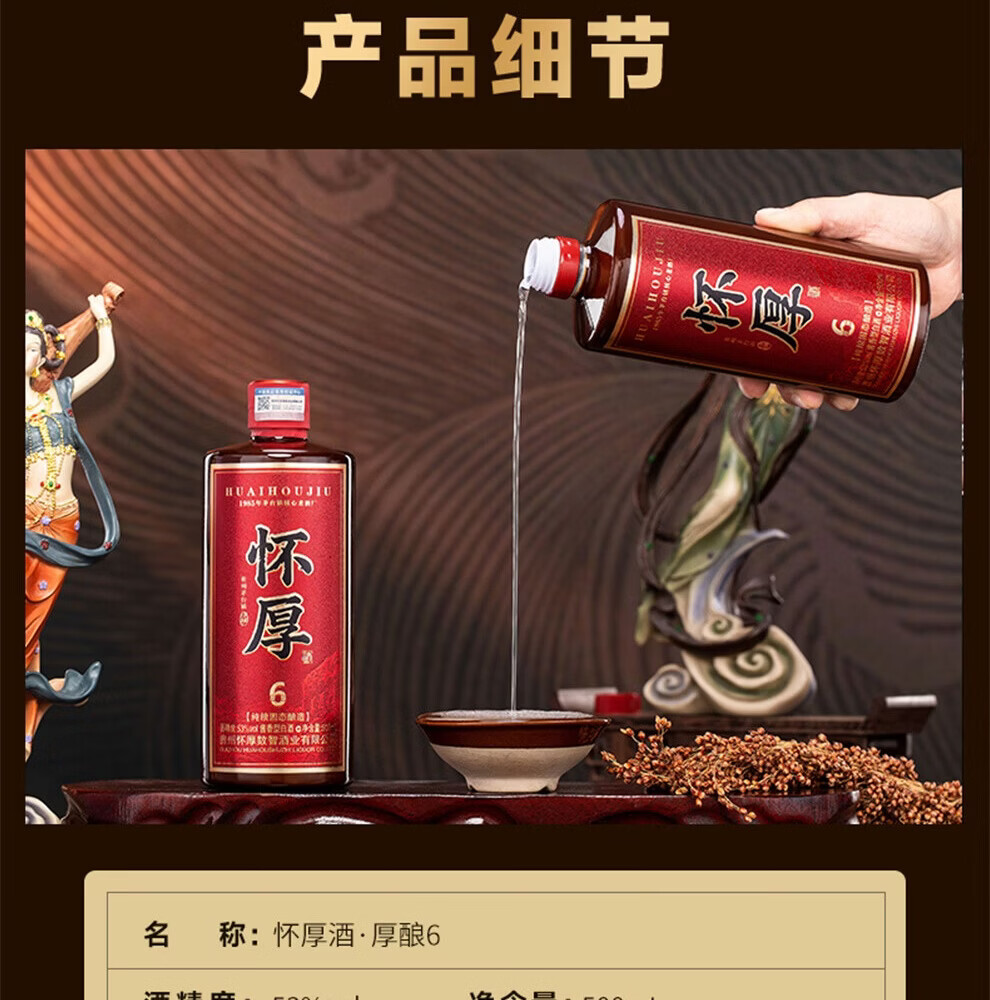 怀厚茅台镇酱香型白酒53度厚酿6 纯粮酿造真年份老酒 500ML自饮品鉴装