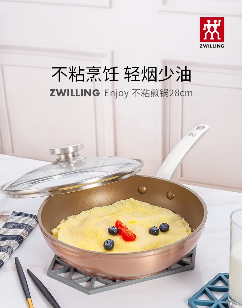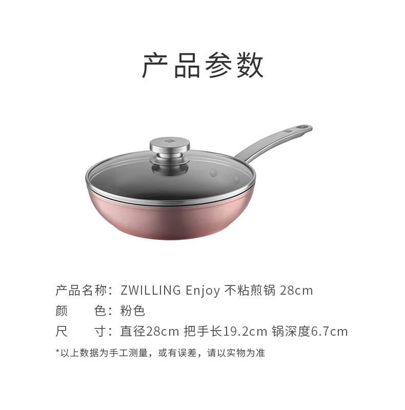 双立人(ZWILLING)不粘锅平底锅煎锅炒菜锅煎蛋锅牛排锅Enjoy粉色 煎锅 28cm
