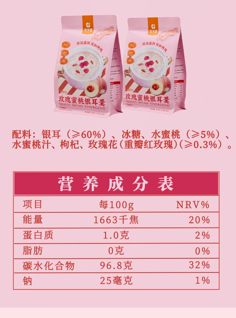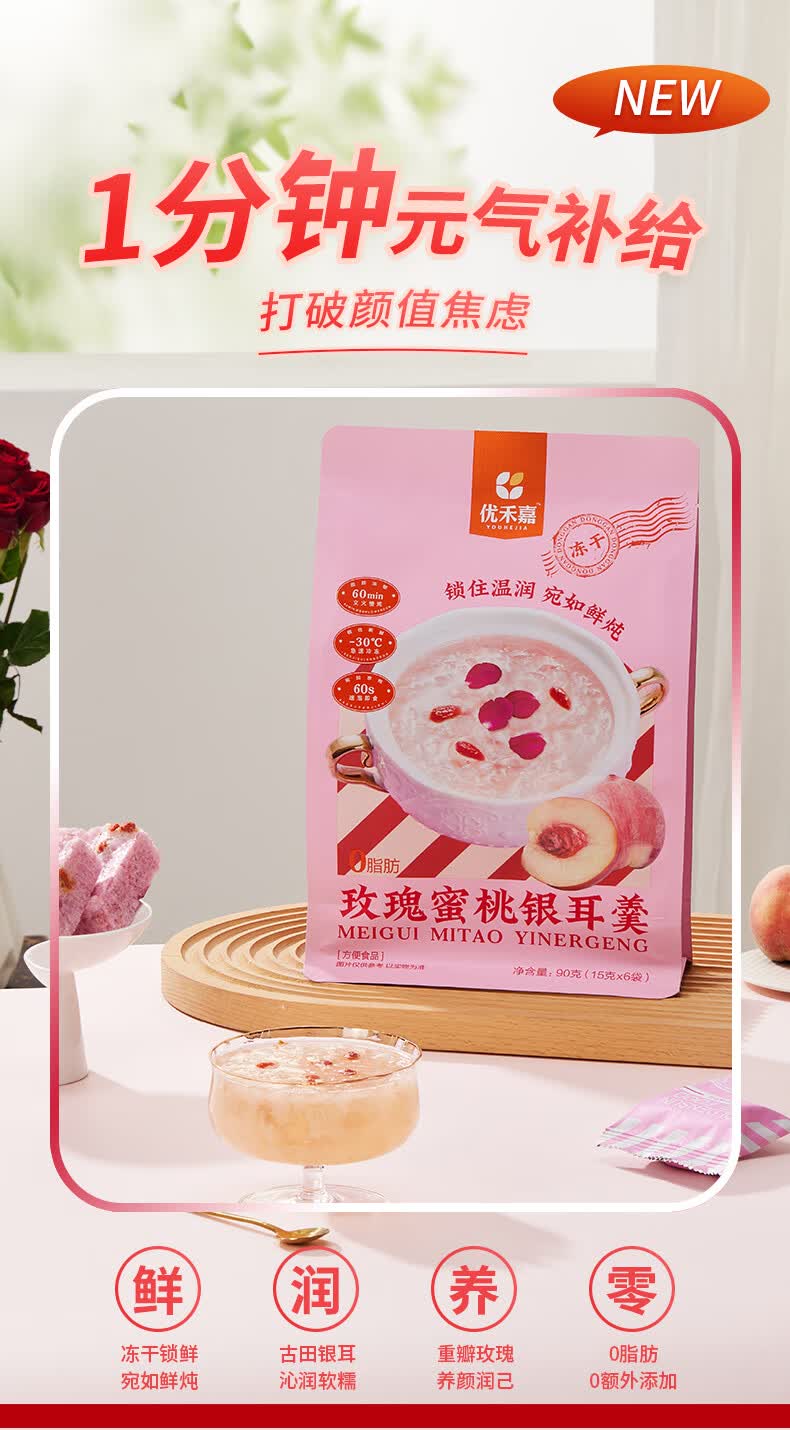 金日禾野玫瑰蜜桃冻干银耳羹15g*6小包 冲泡即食早餐夜宵速食代餐送女友