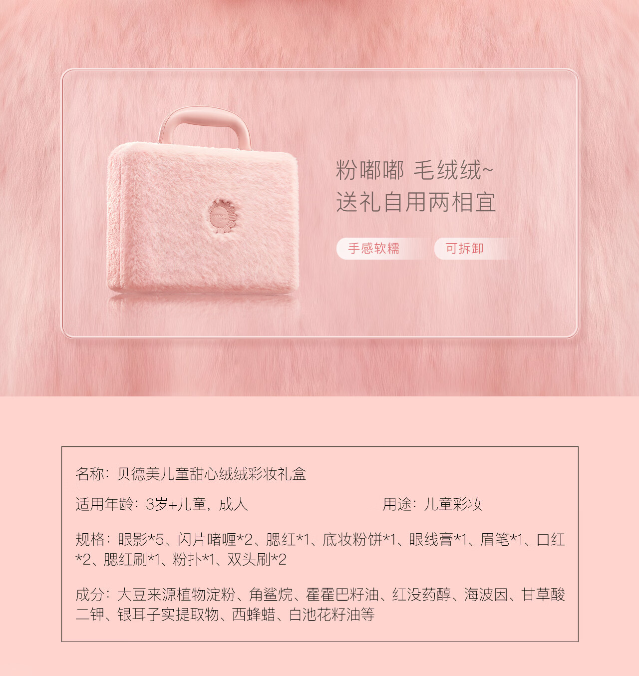 贝德美儿童化妆品彩妆礼盒套装女孩专用舞台妆全套口红眼影眉笔新年送礼