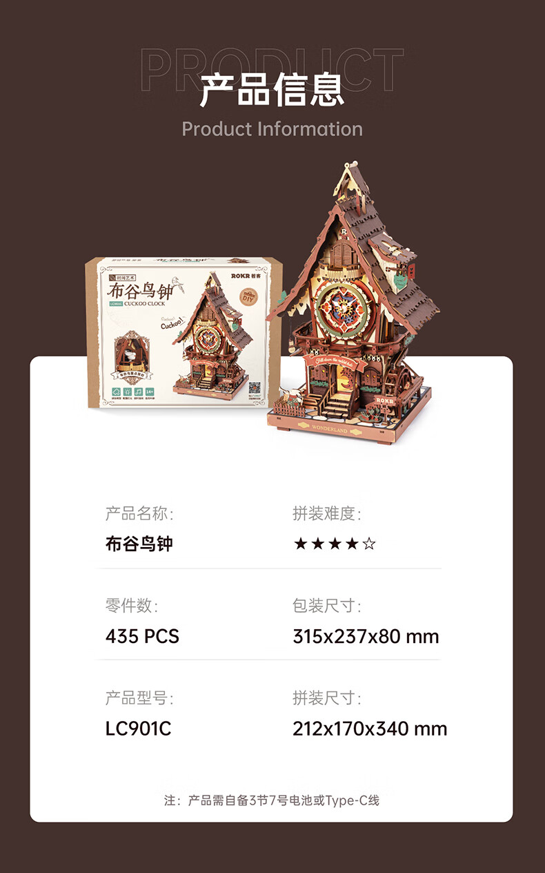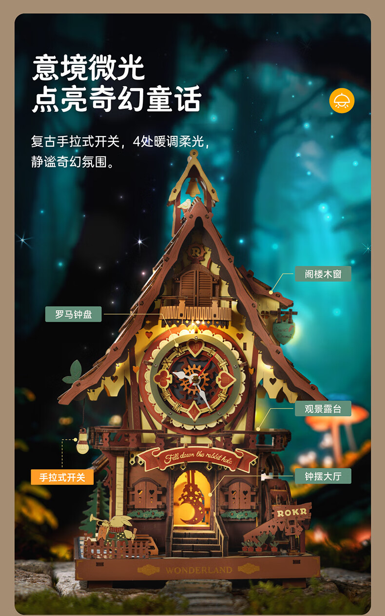 若客(ROKR)布谷鸟钟 积木成人3D立体拼图diy手工木质拼装模型玩具生日礼物