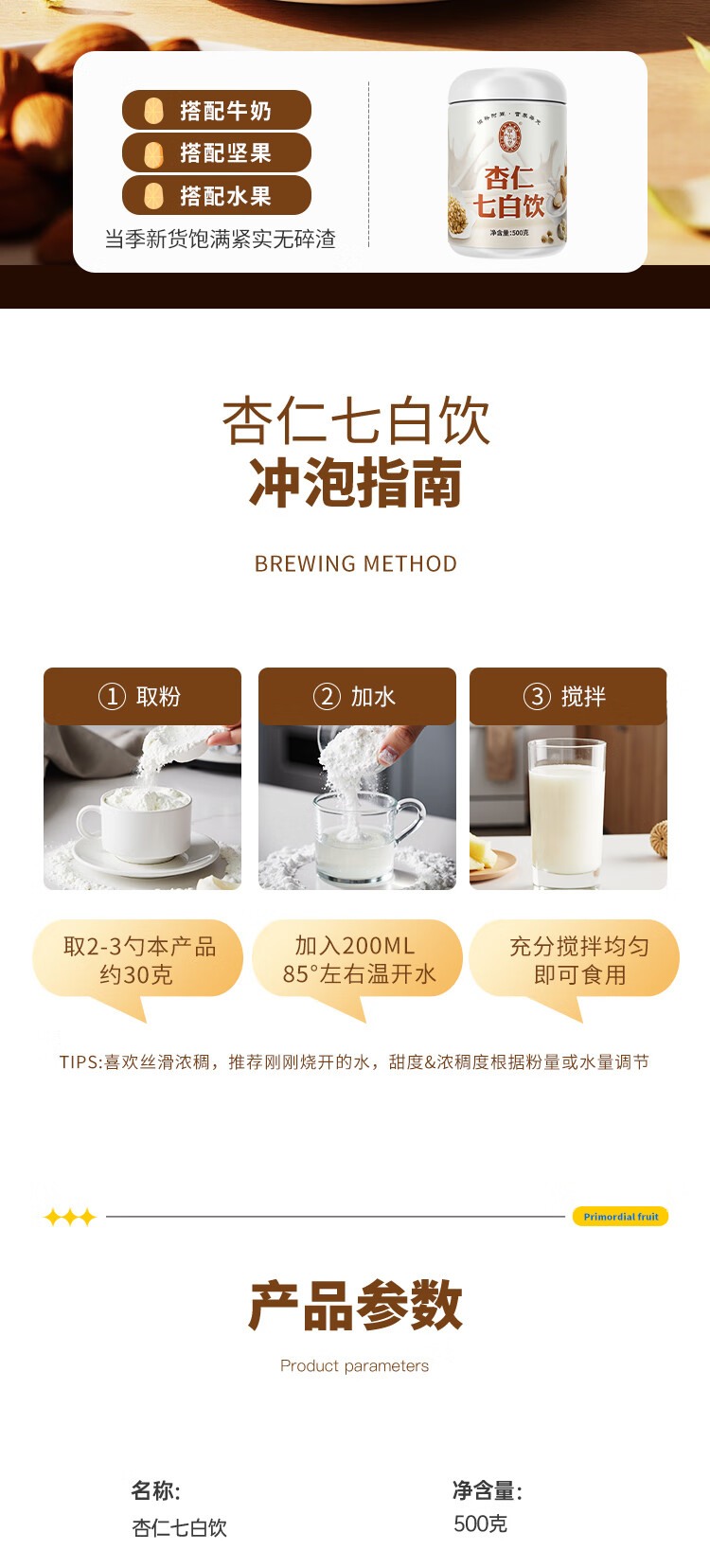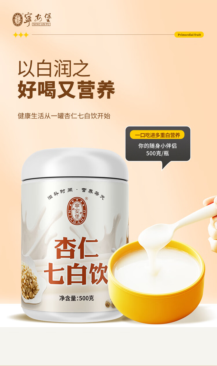 宁安堡杏仁七白饮粉500g莲子山药葛根茯苓百合科学配比 杏仁七白粉 500g*2罐