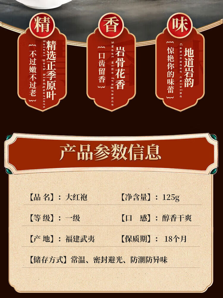 天旭【云山系列】大红袍茶叶武夷山乌龙茶浓香型一级岩茶 2026年新茶 125g(盒装) 一级大红袍口粮茶