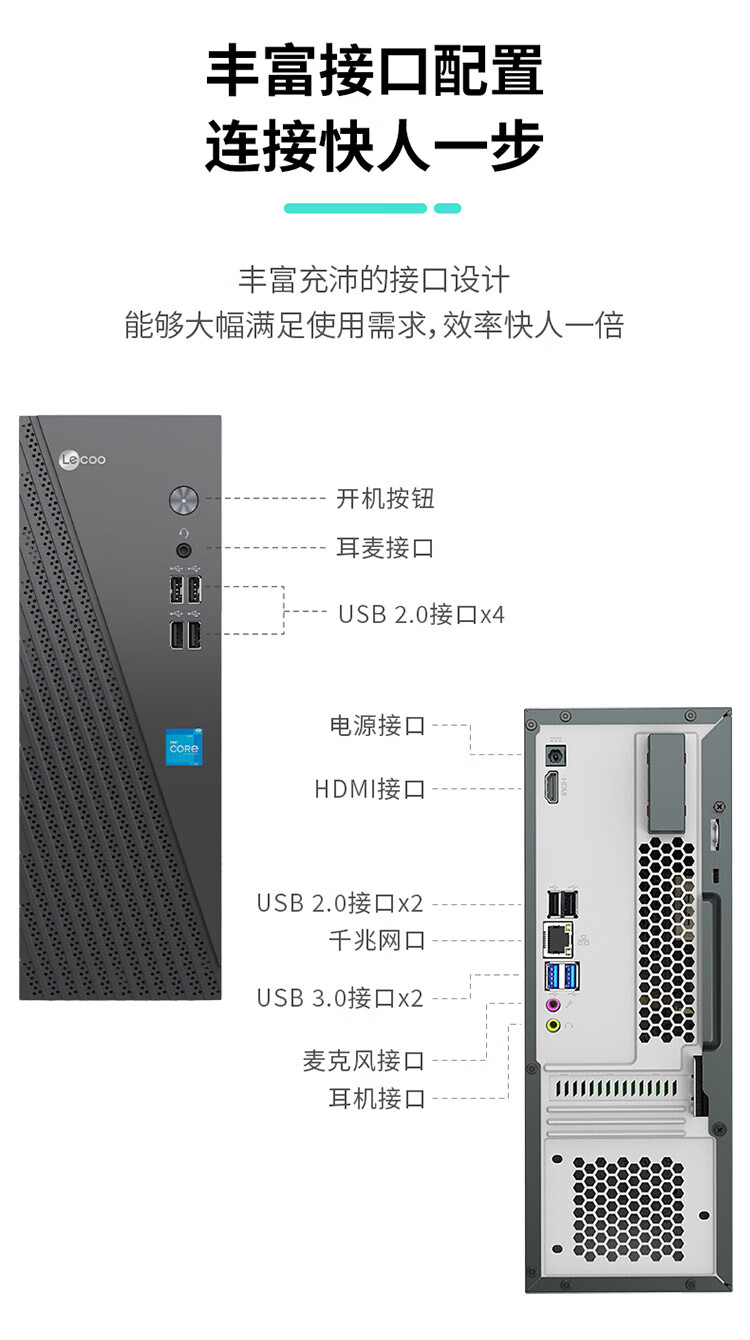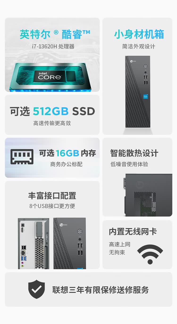 联想(Lenovo)来酷 Lecoo商务办公台式电脑主机(13代i7-13620H 16G 512G SSD )23.8英寸显示器