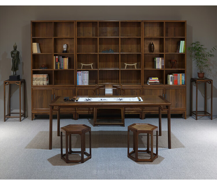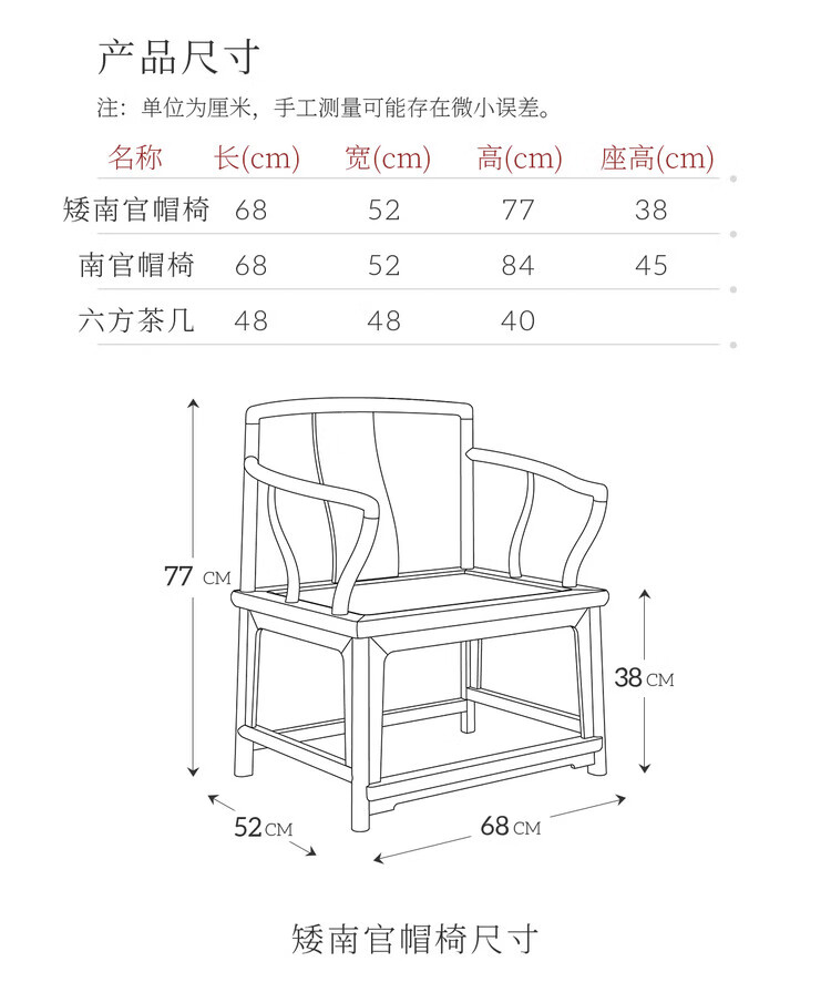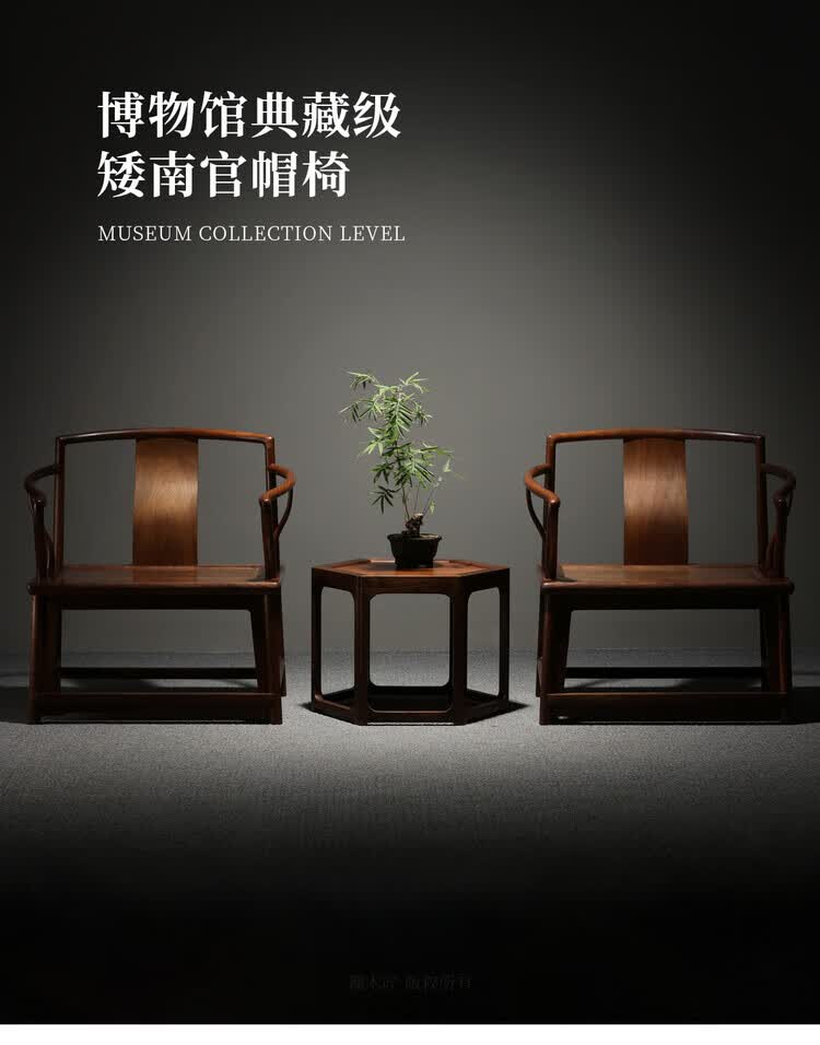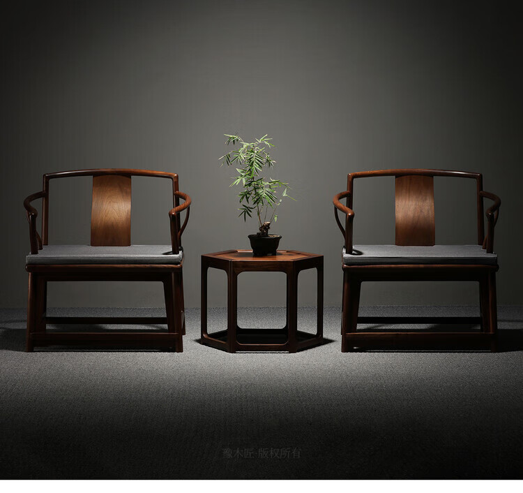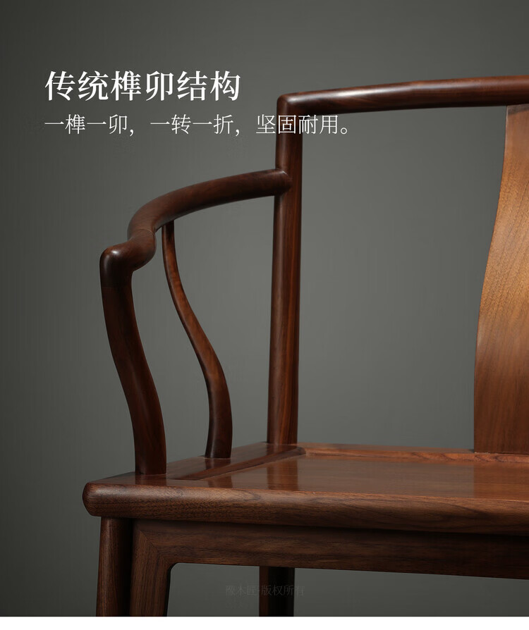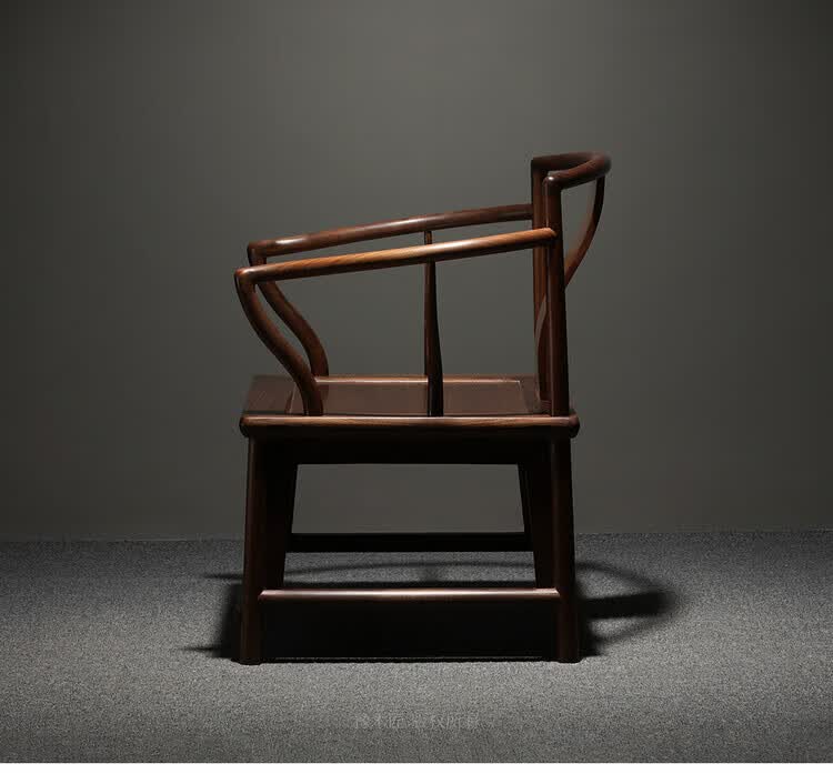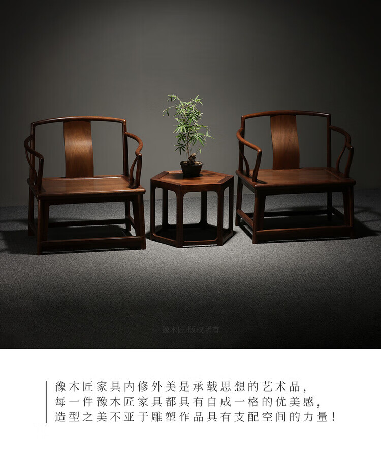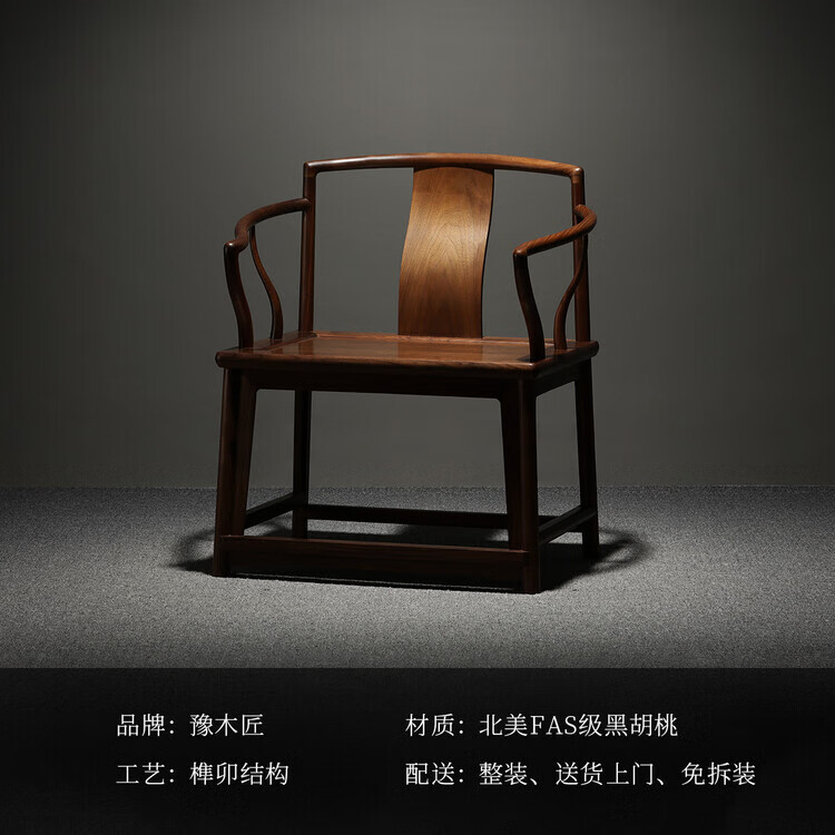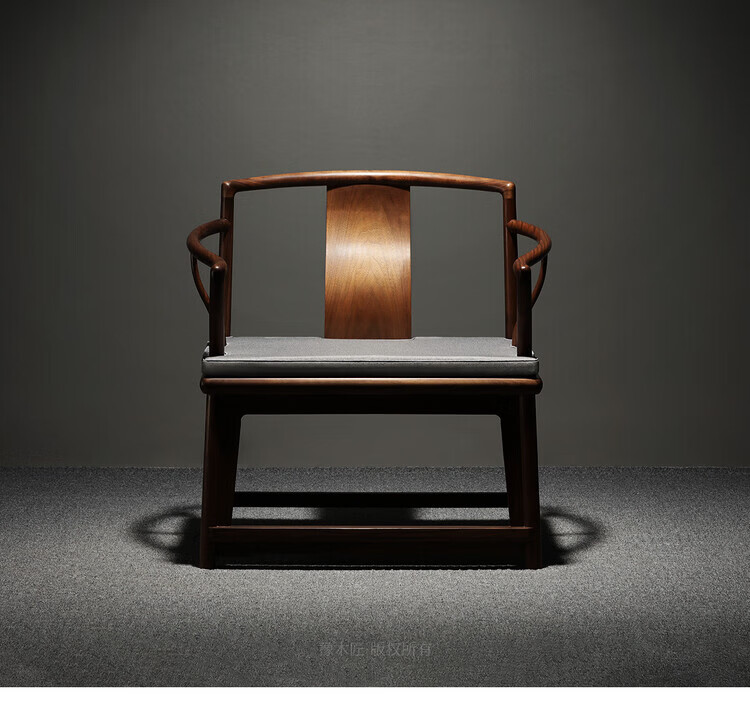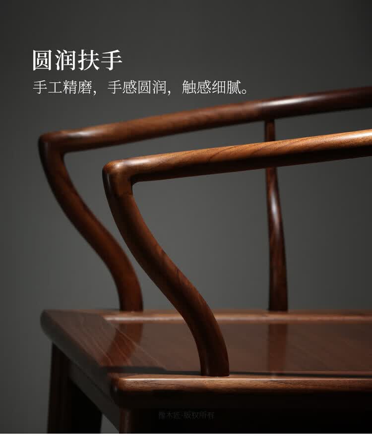中式仿古官帽椅实木太师椅圈椅茶椅子主人椅禅椅明式家具 黑胡桃矮南官帽椅(38坐高)赠配套坐垫