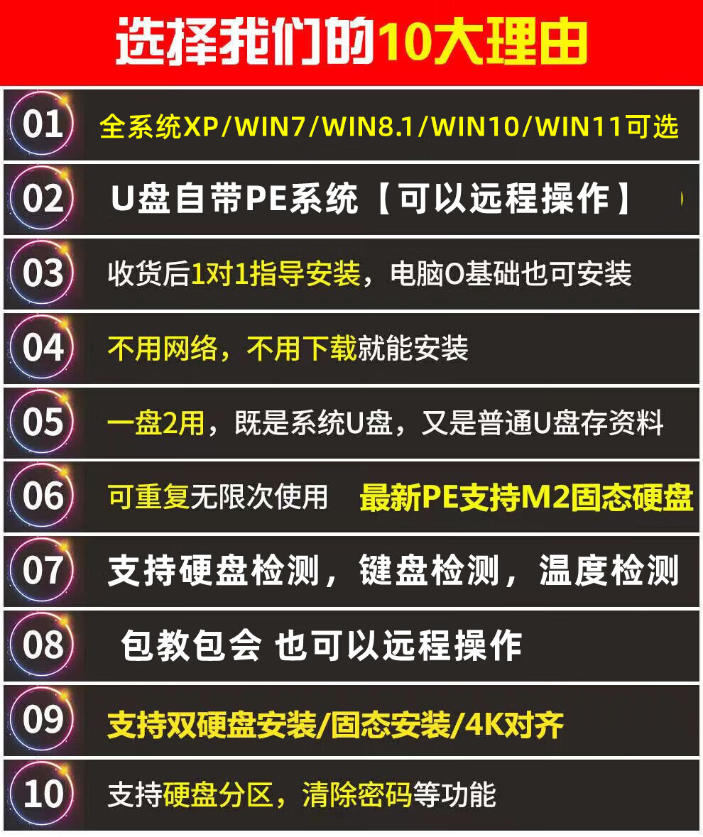 电脑系统U盘专业版纯净版装机一键重装旗舰PE优盘启动盘 纯净版wln7+10+11全套111个版本 64GB