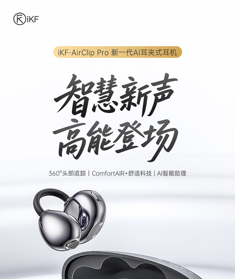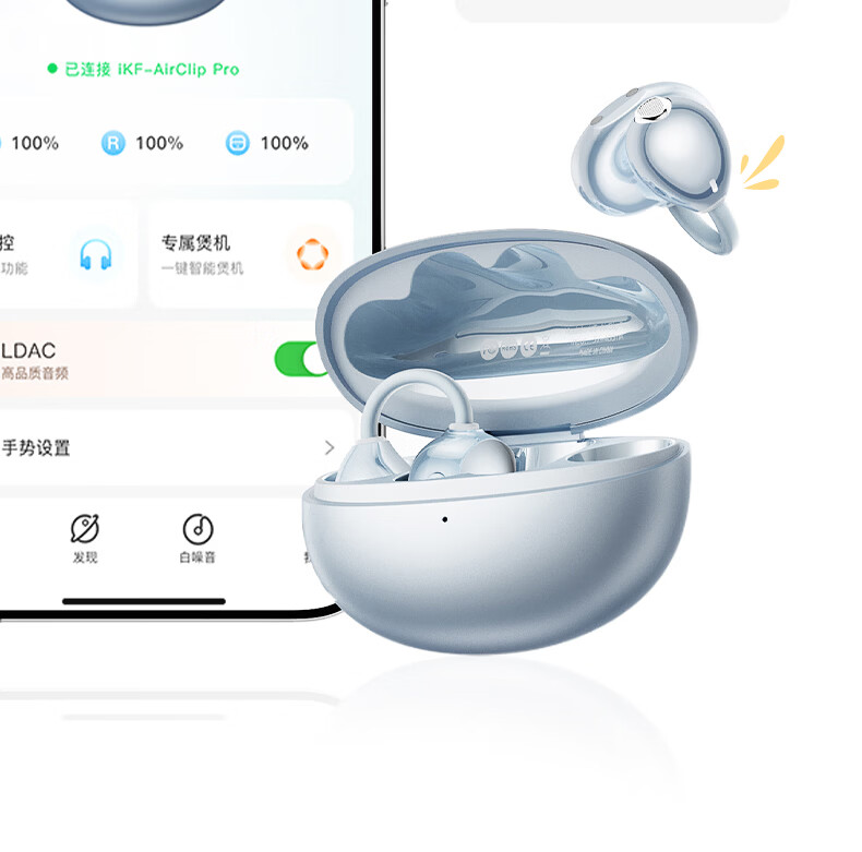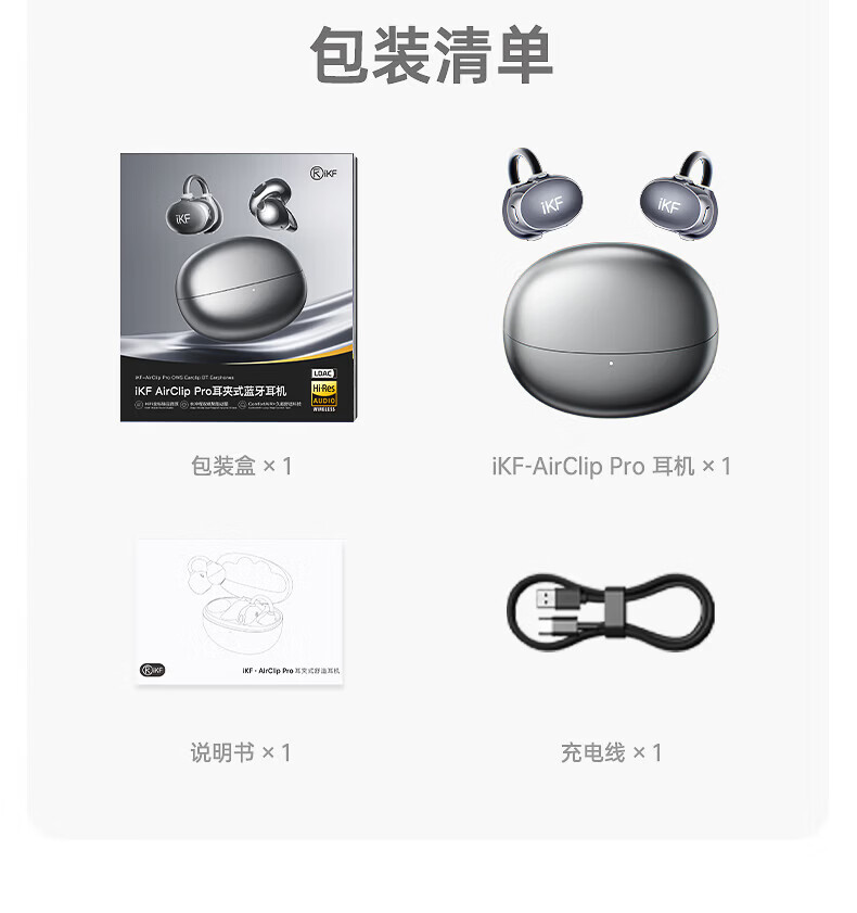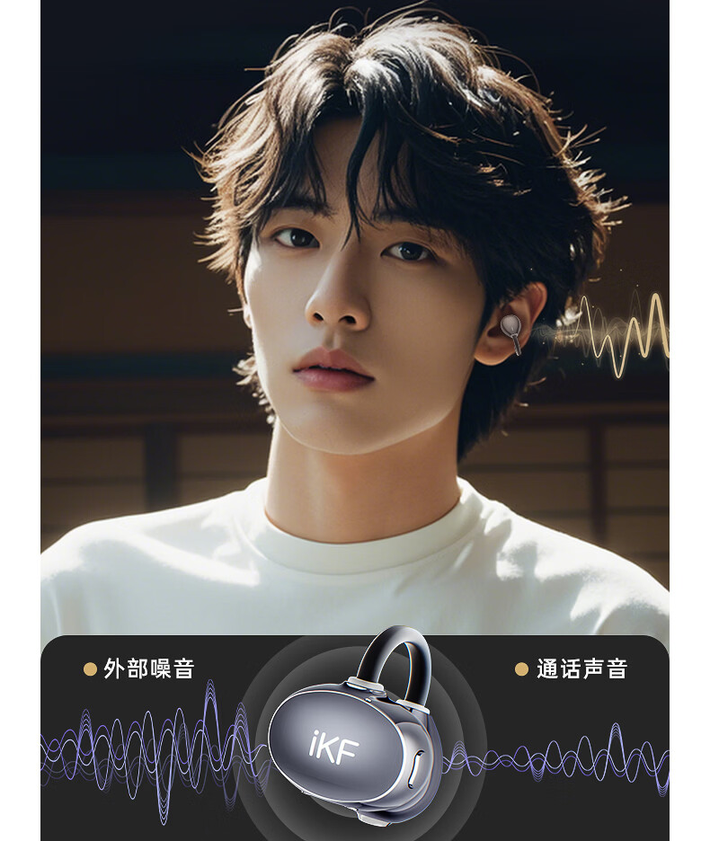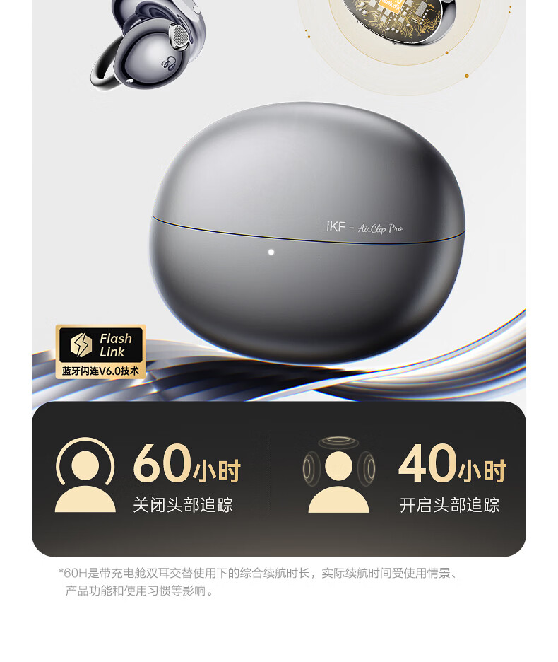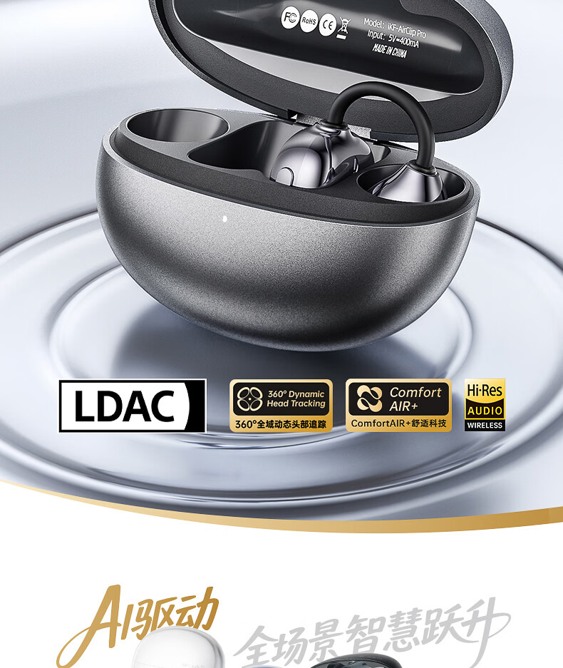 iKF AirClip Pro 【Hi-Res金标】AI翻译蓝牙耳机耳夹式无线开放式骨气传导耳机适用于华为运动 星际黑