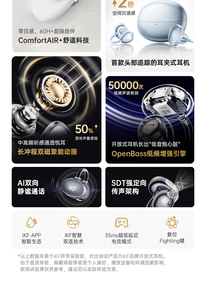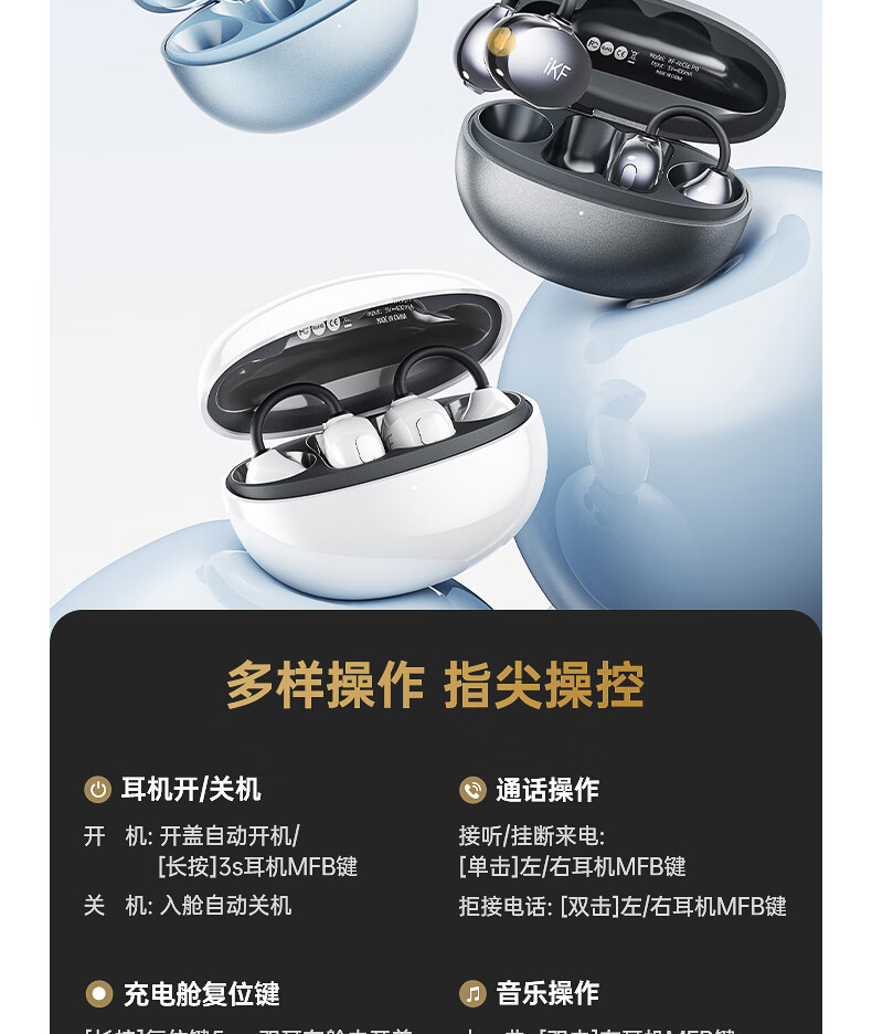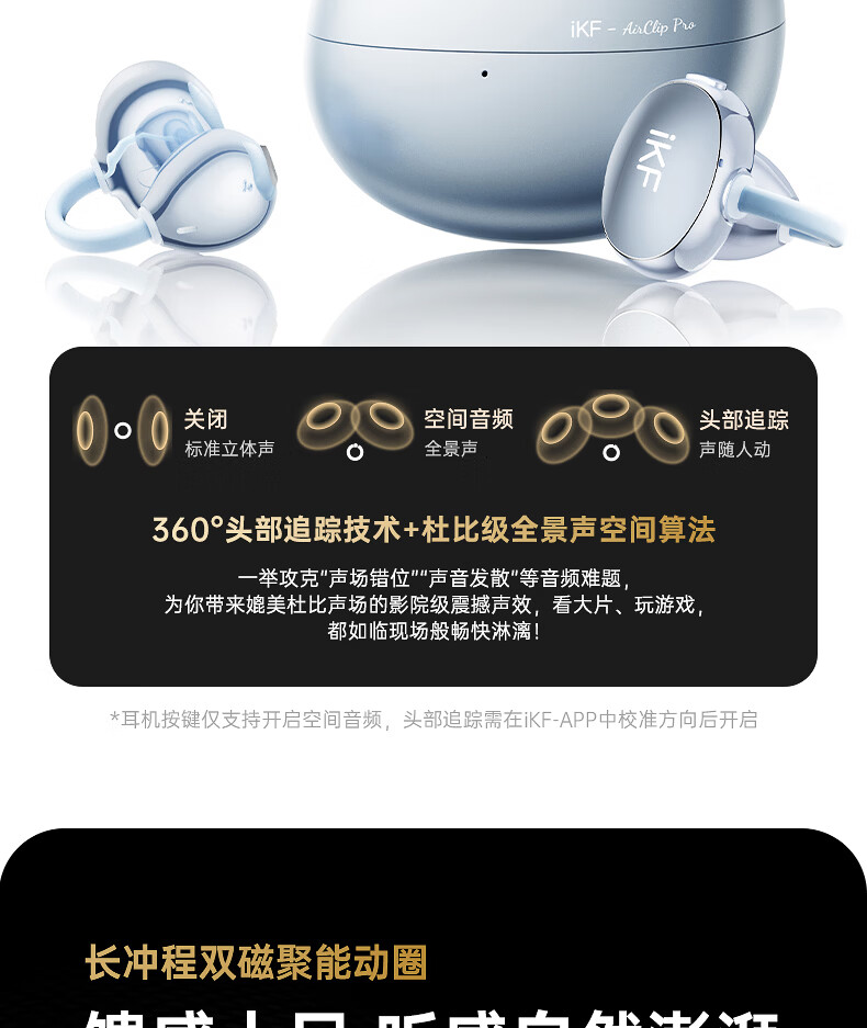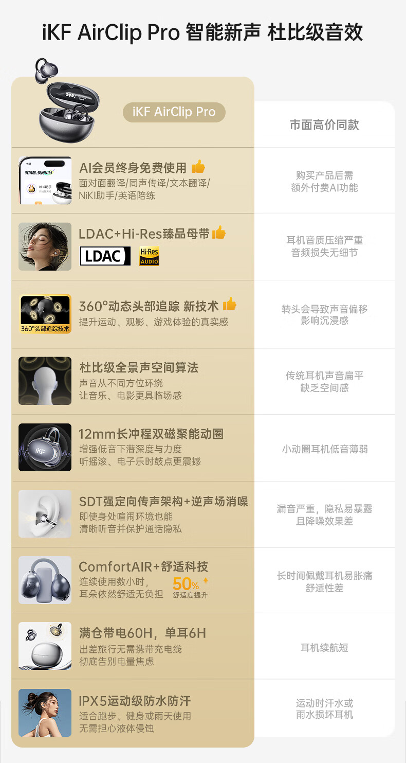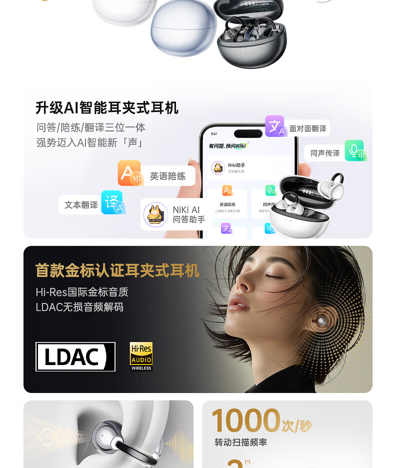 iKF AirClip Pro 【Hi-Res金标】AI翻译蓝牙耳机耳夹式无线开放式骨气传导耳机适用于华为运动 星际黑
