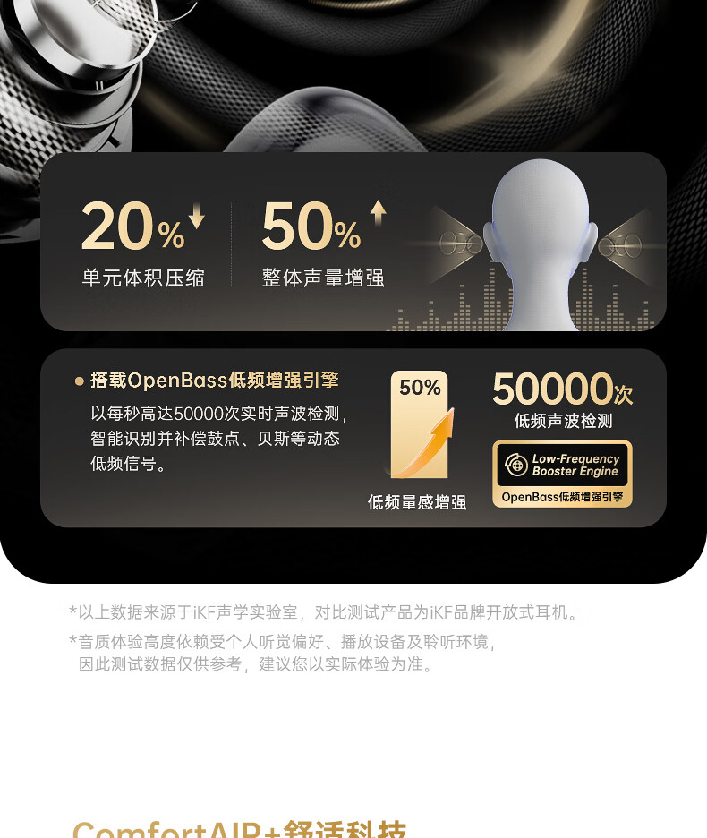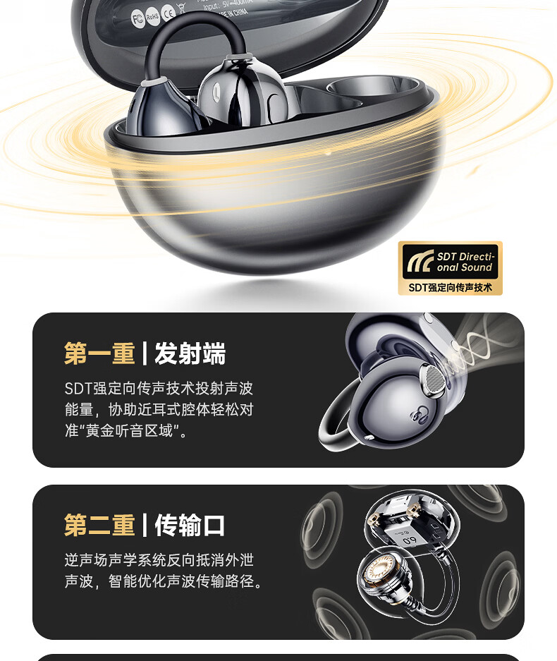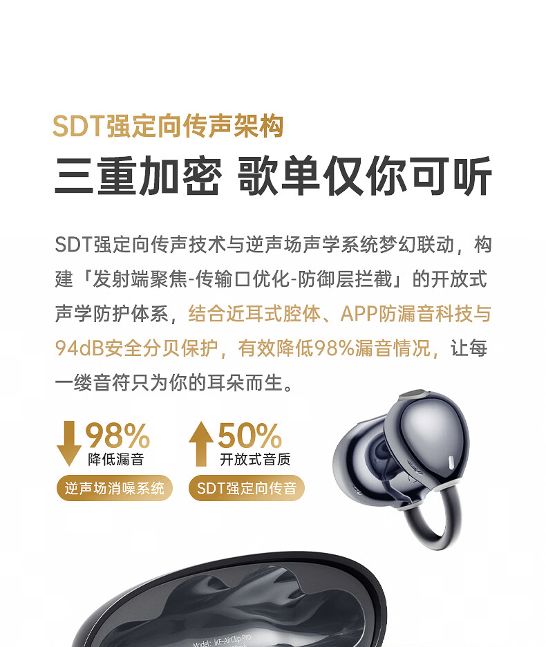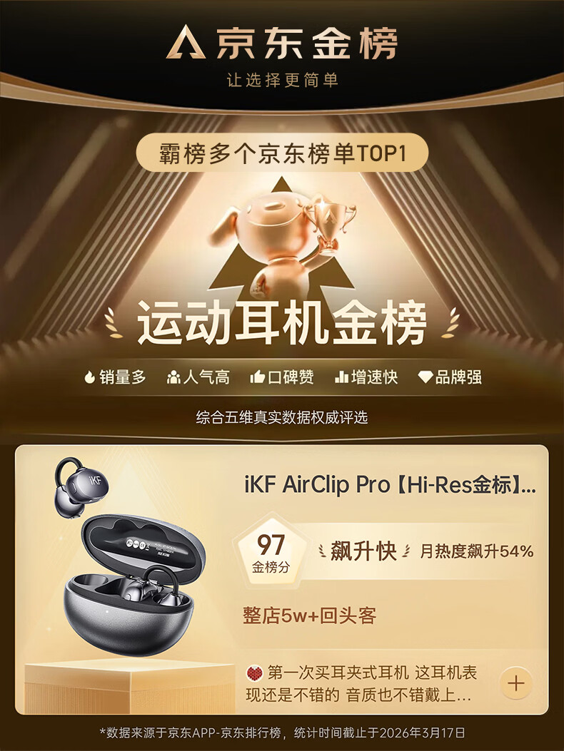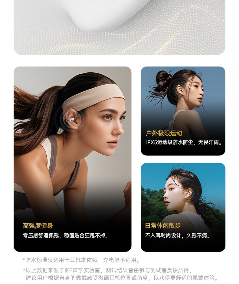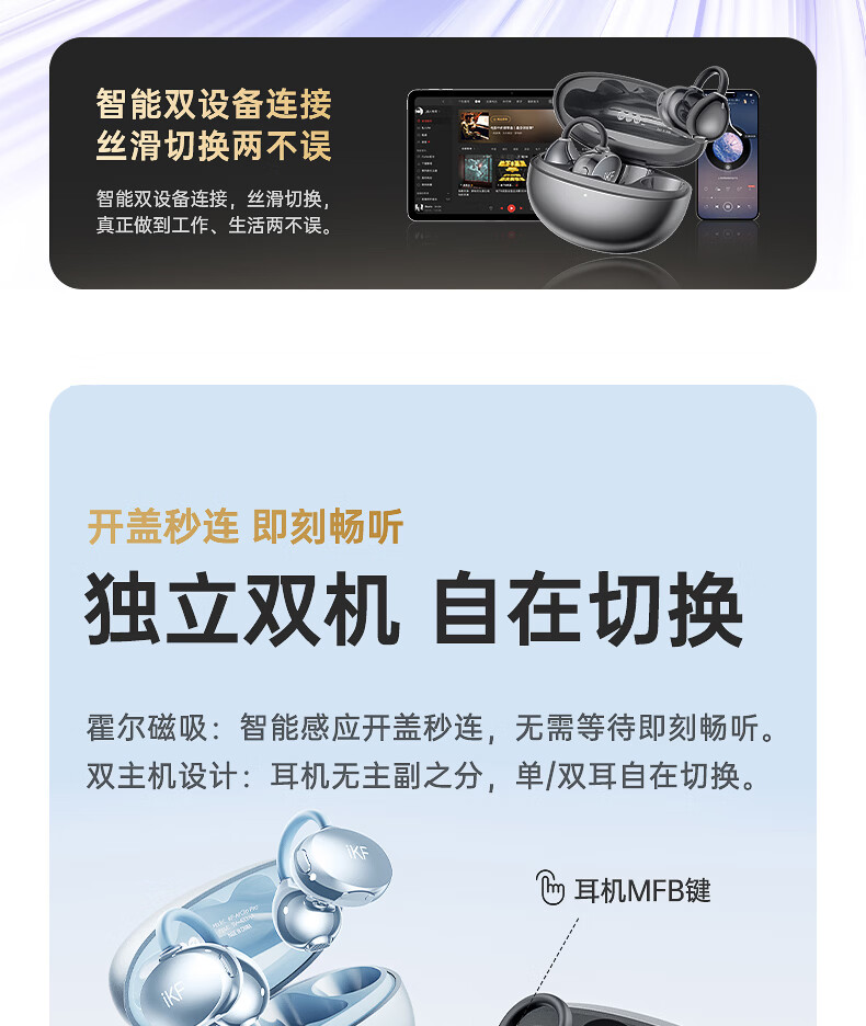 iKF AirClip Pro 【Hi-Res金标】AI翻译蓝牙耳机耳夹式无线开放式骨气传导耳机适用于华为运动 星际黑
