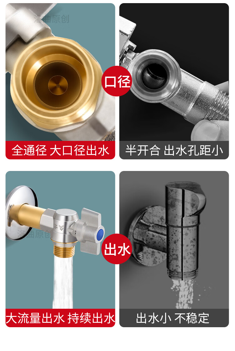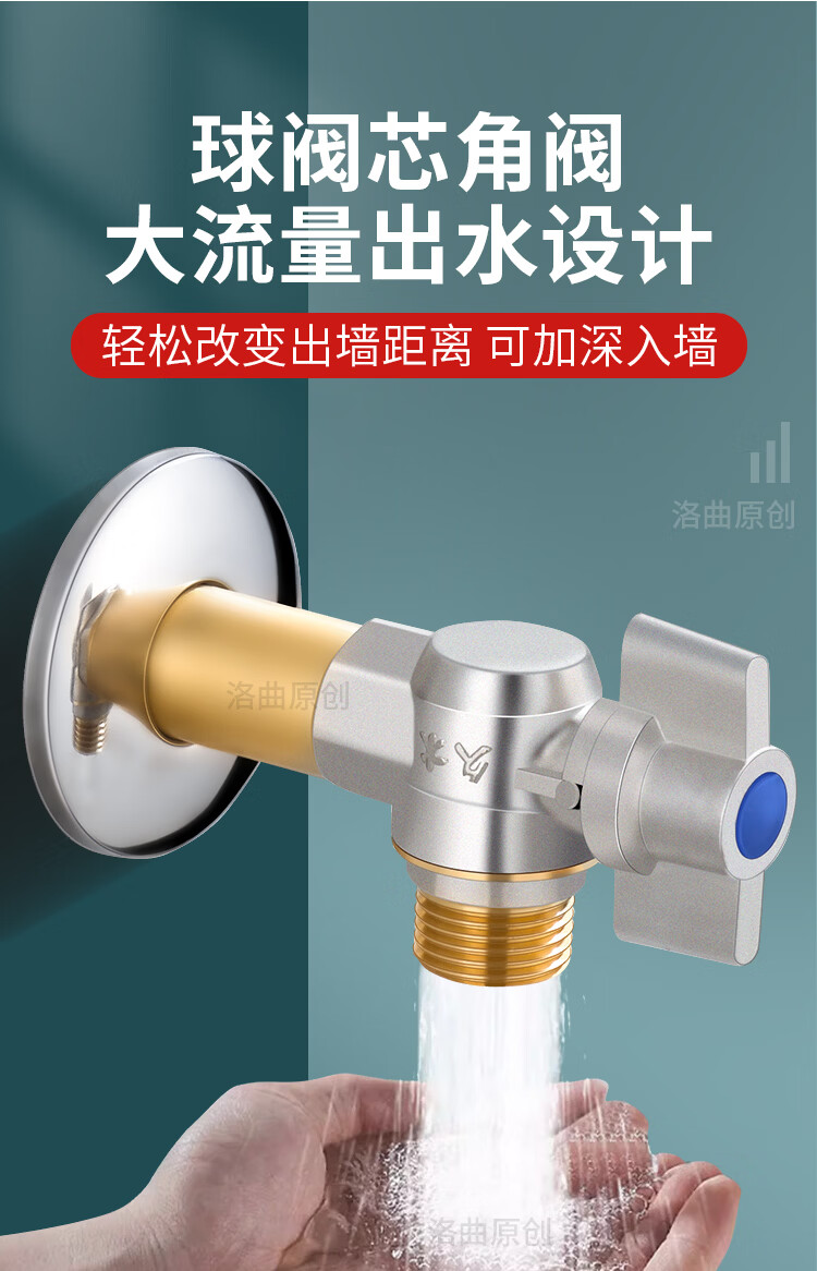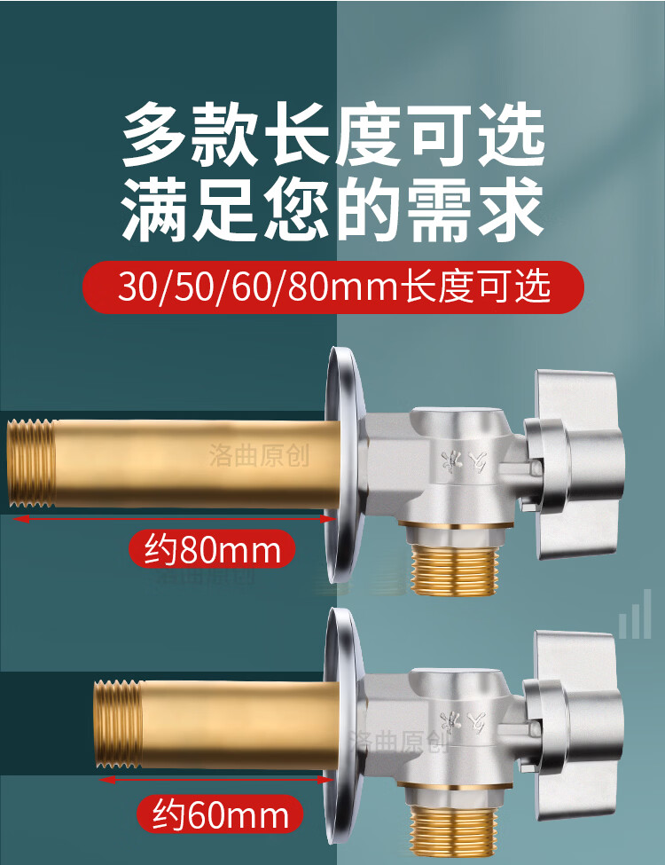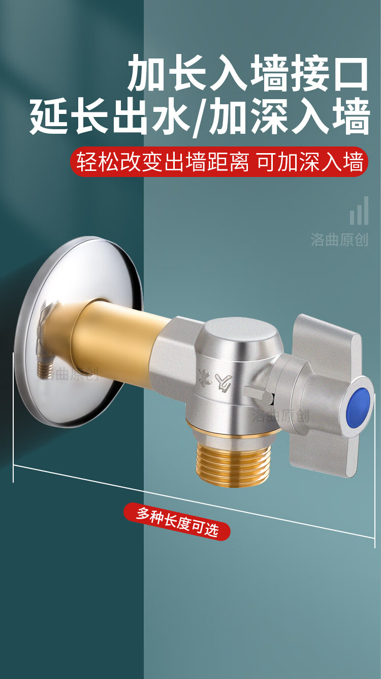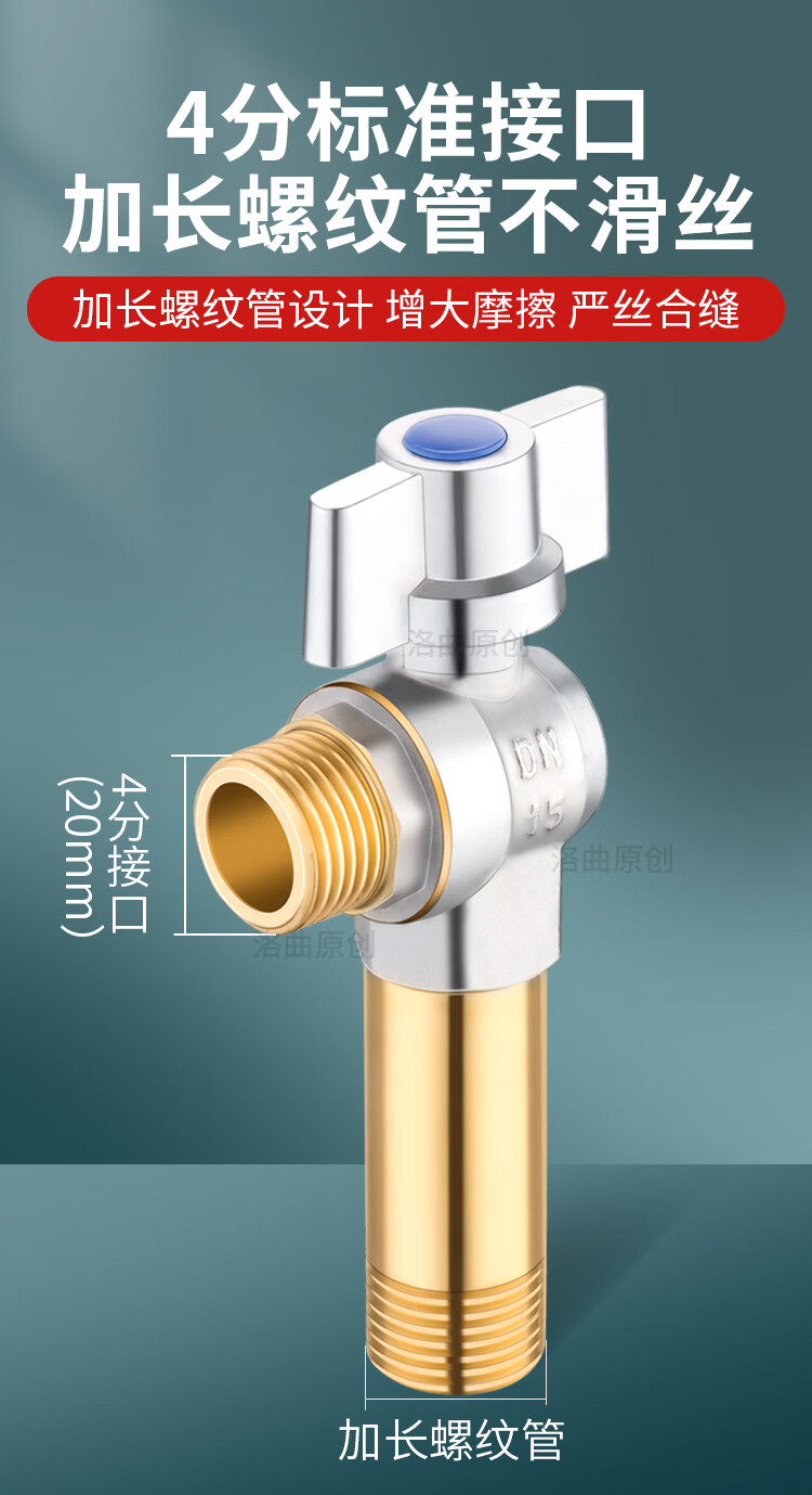 Jeonestan全铜4分加长角阀开关燃气热水器大流量球阀入墙马桶三角阀出水阀 磨砂款加厚大流量双出水(4分红标)