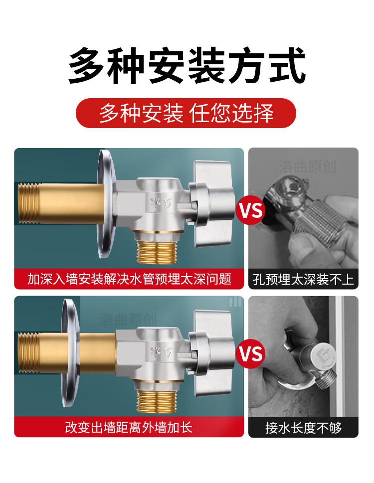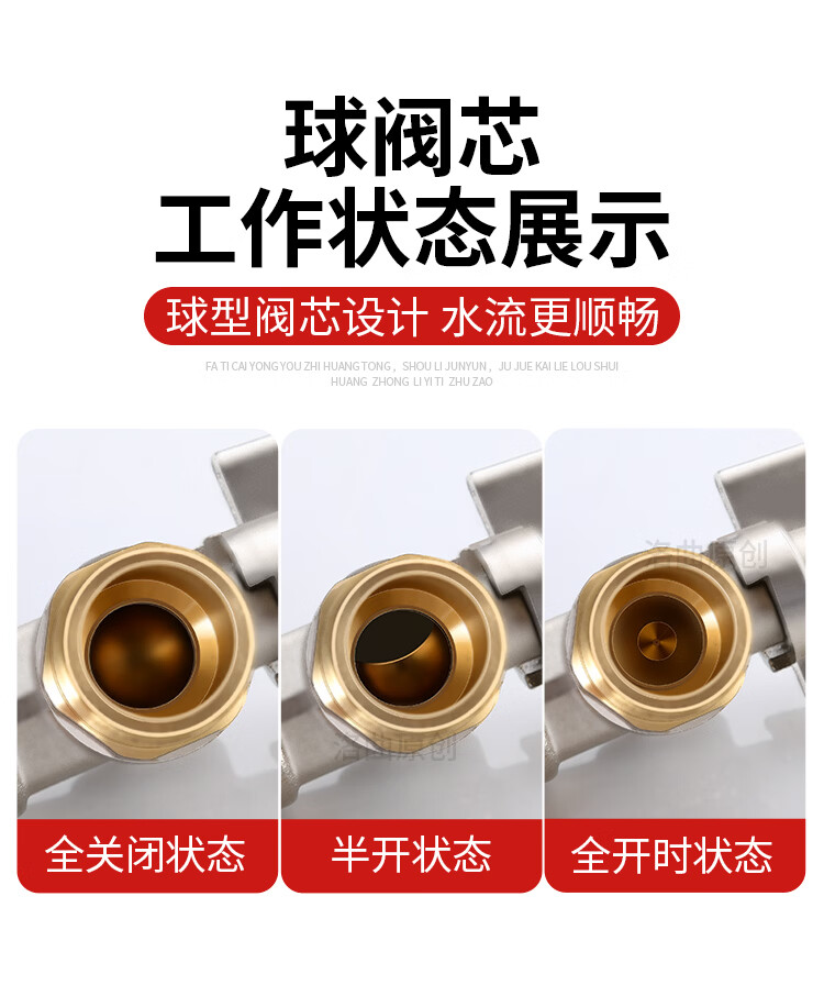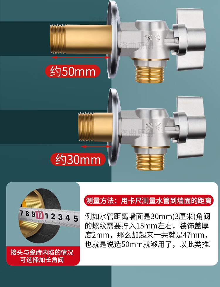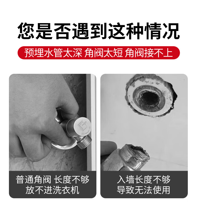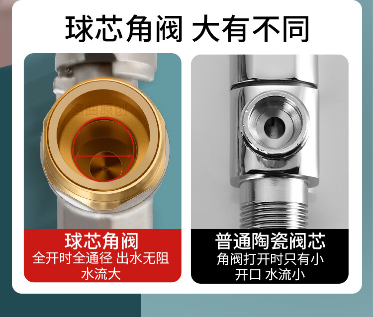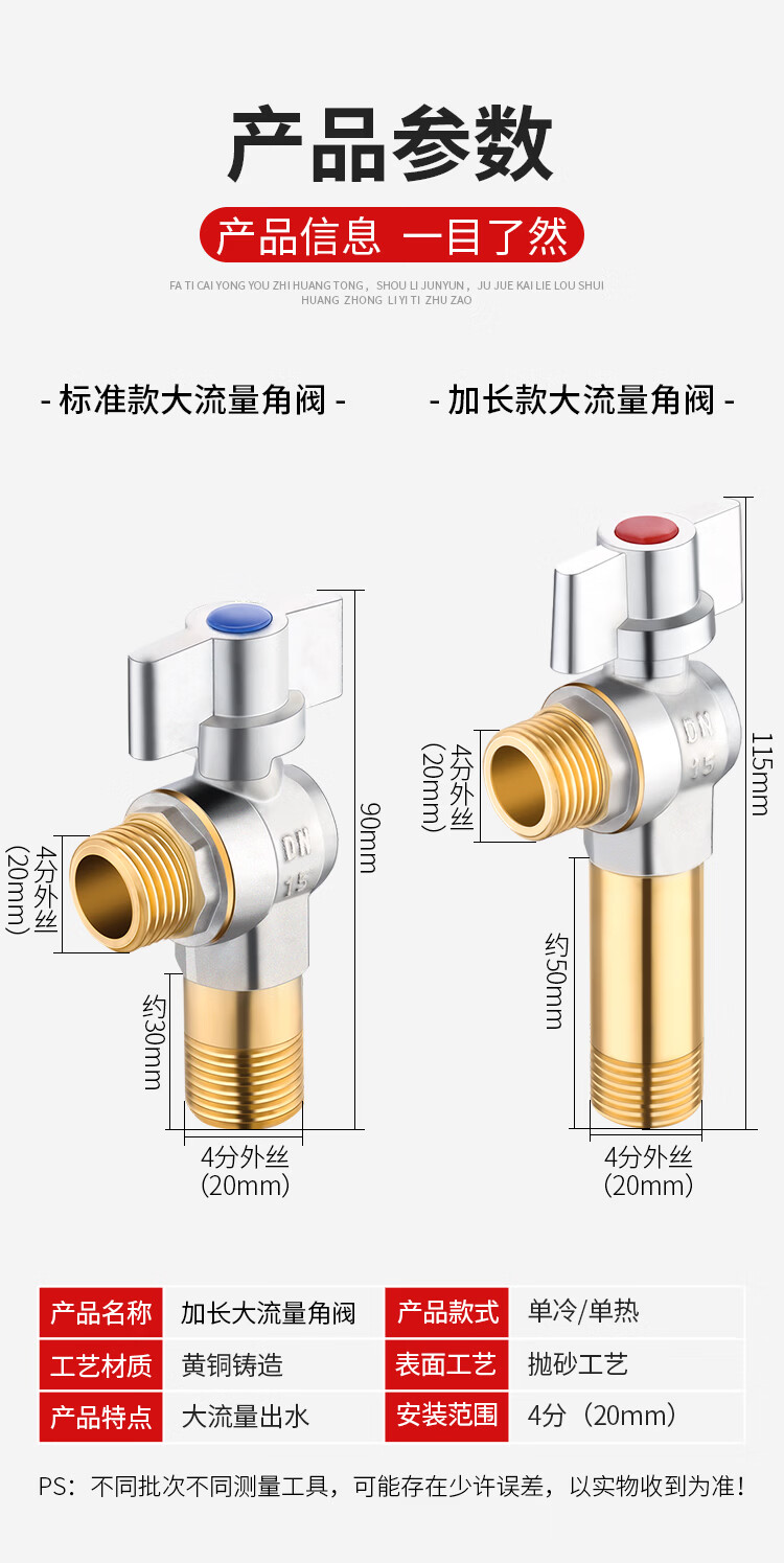 Jeonestan全铜4分加长角阀开关燃气热水器大流量球阀入墙马桶三角阀出水阀 磨砂款加厚大流量双出水(4分红标)