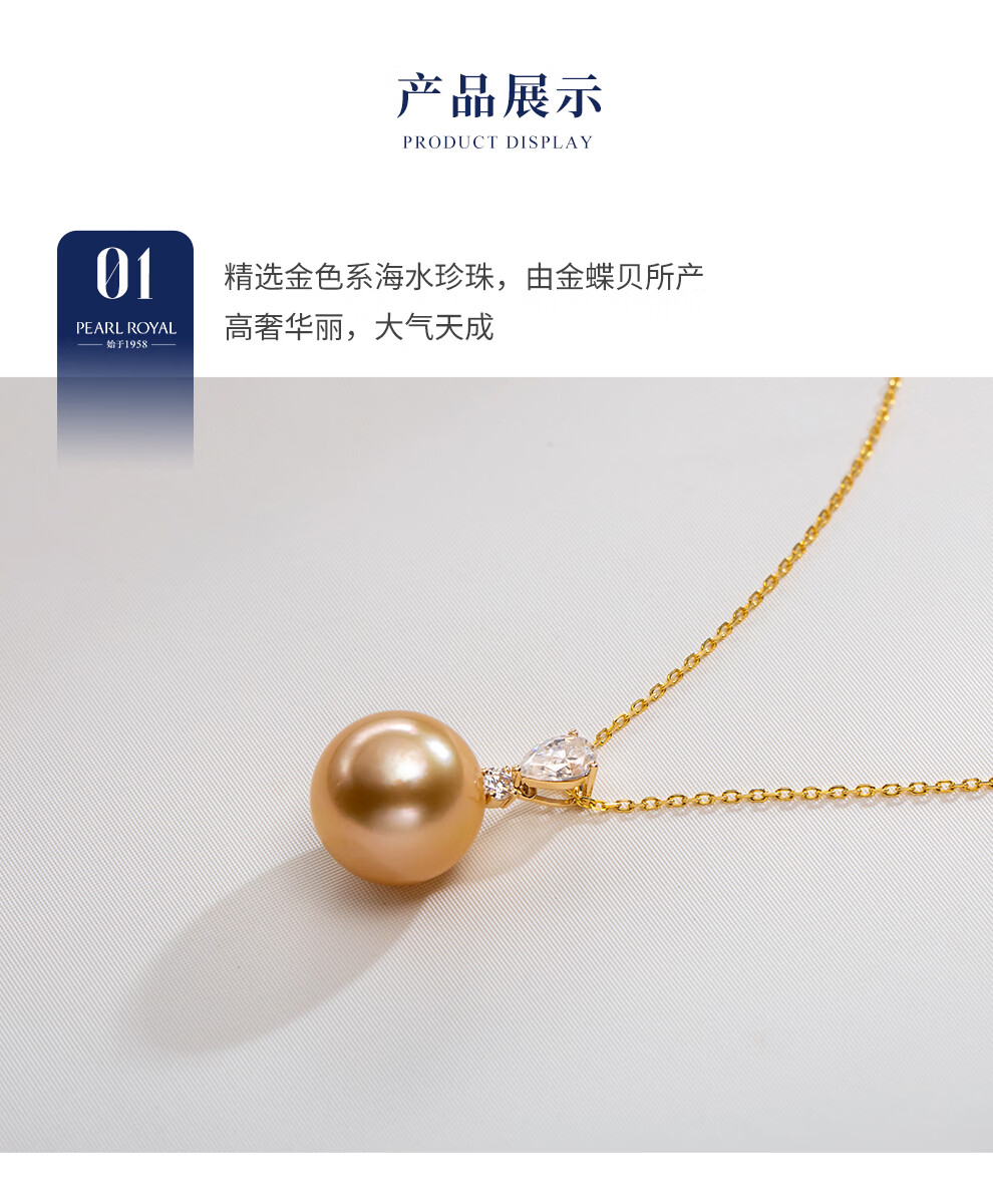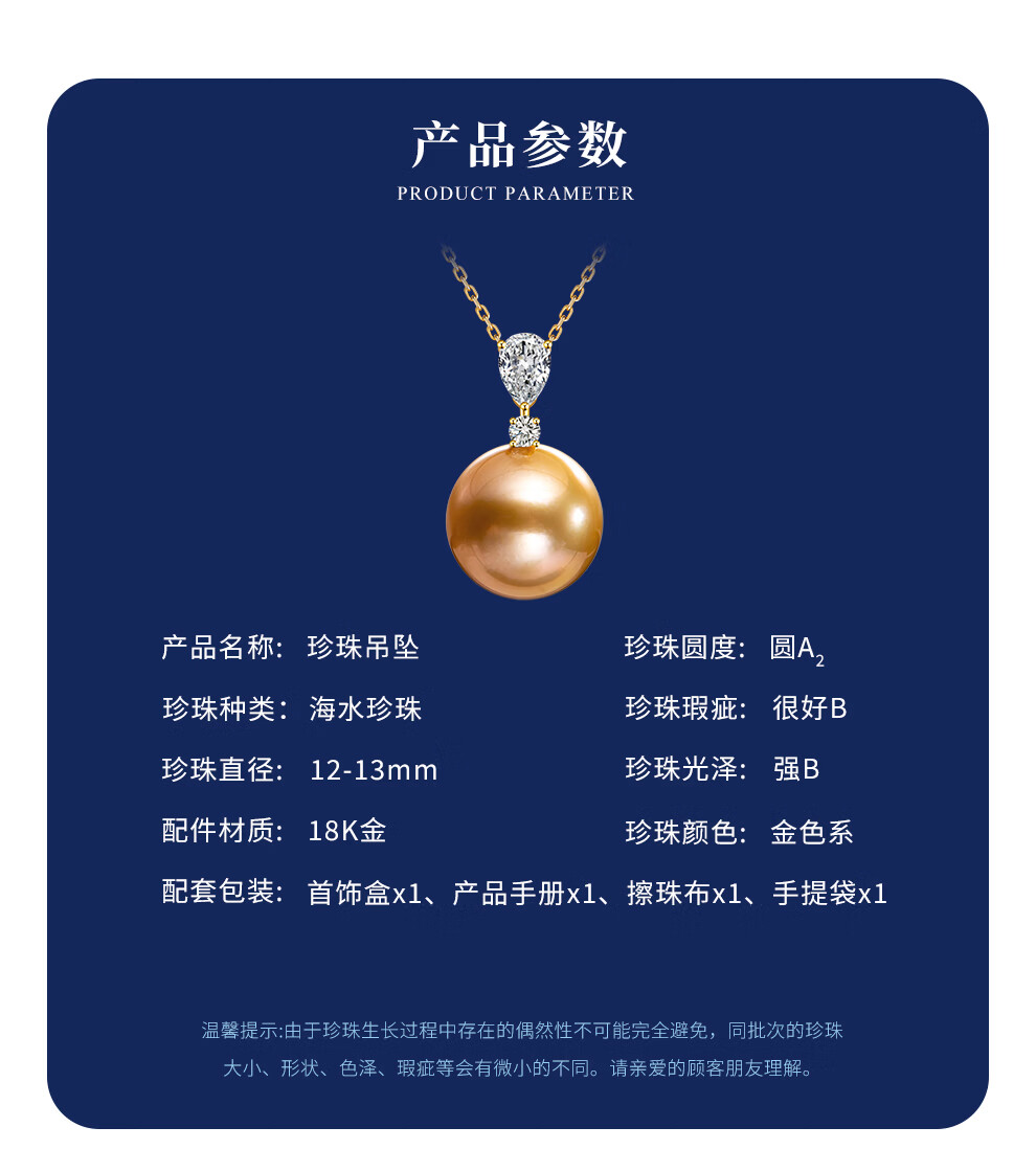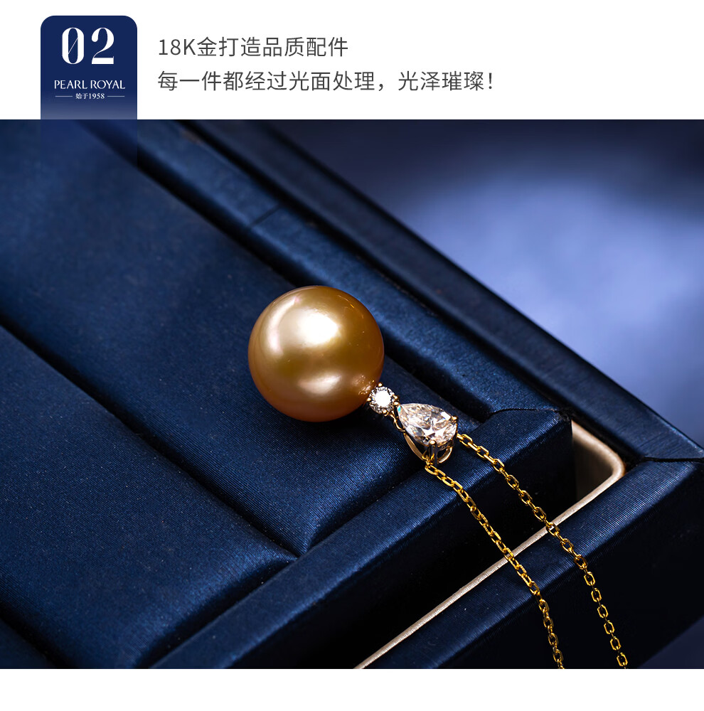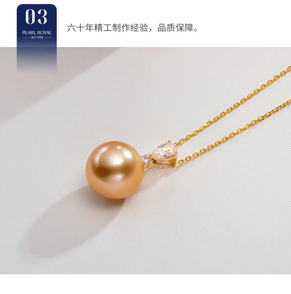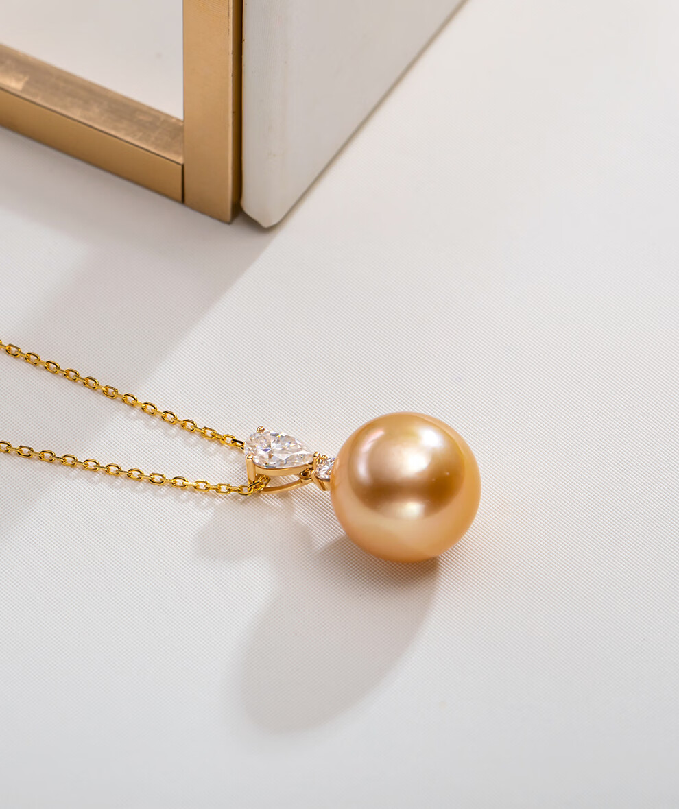 南珠宫向阳18K金海水珍珠吊坠单颗金珠项链轻奢高级感生日礼物送老婆 12.0-13.0mm 赠S925银链