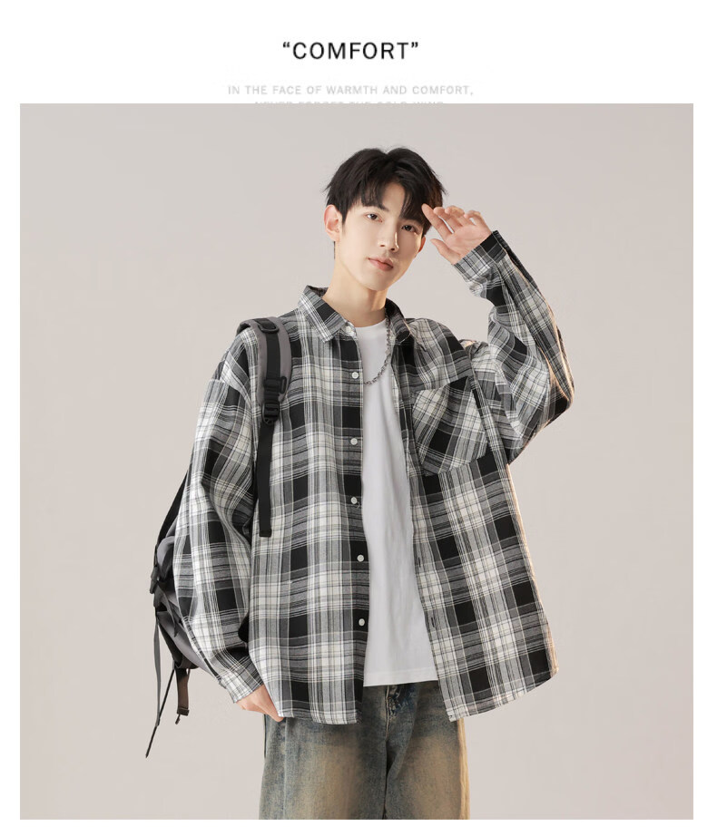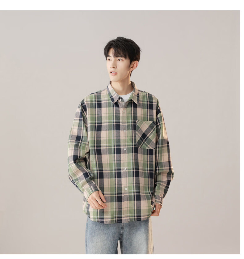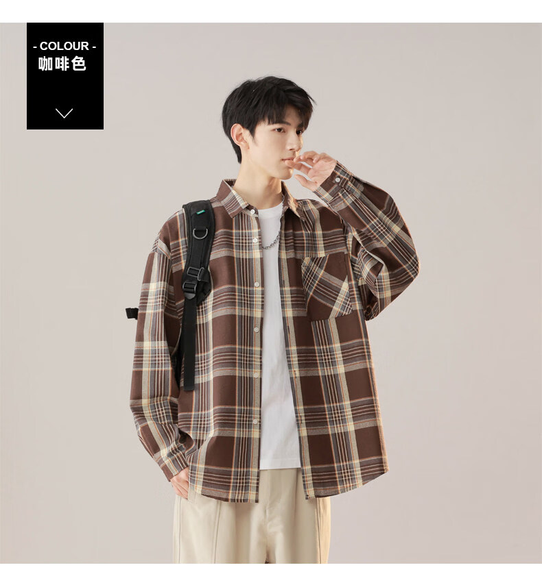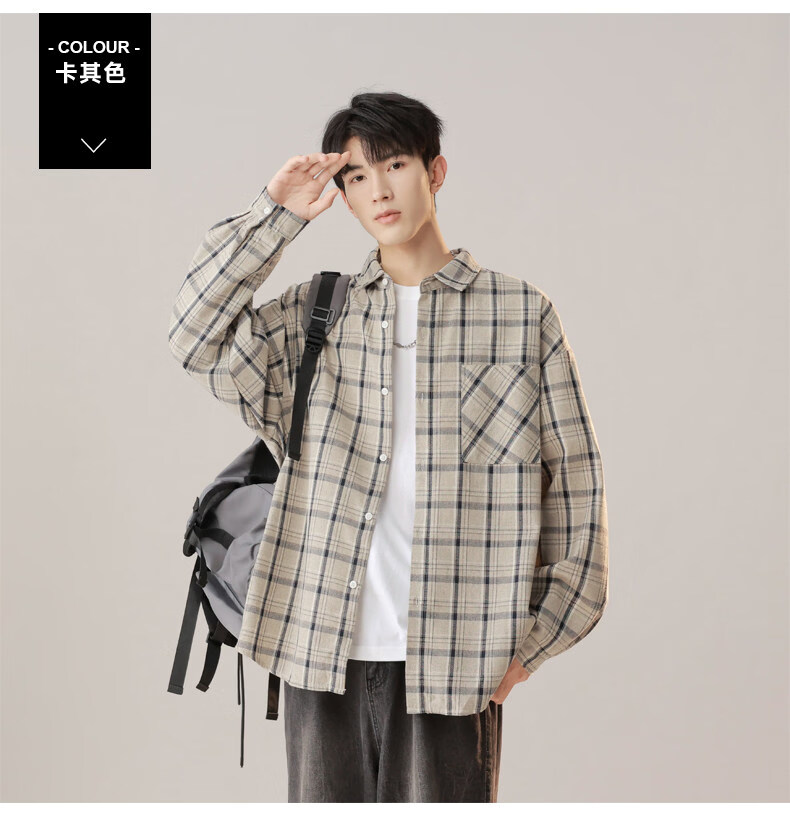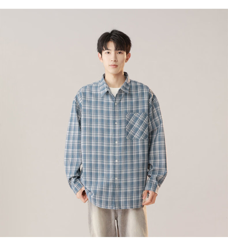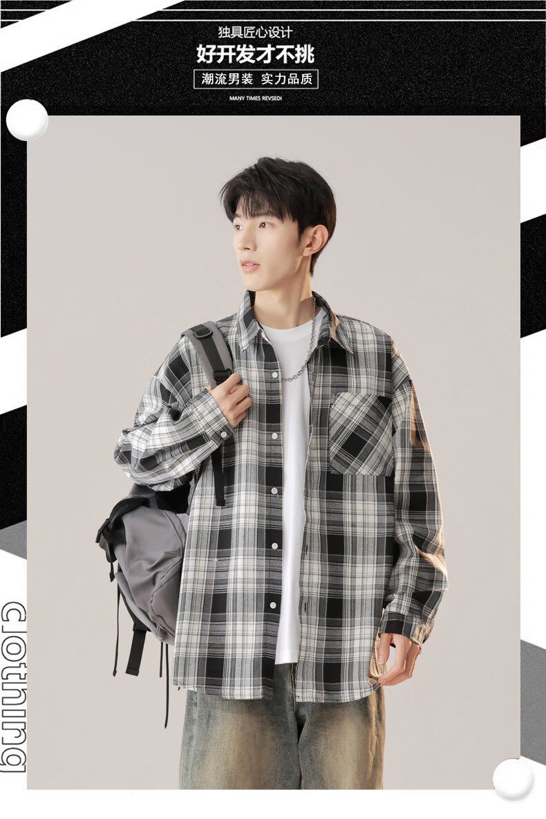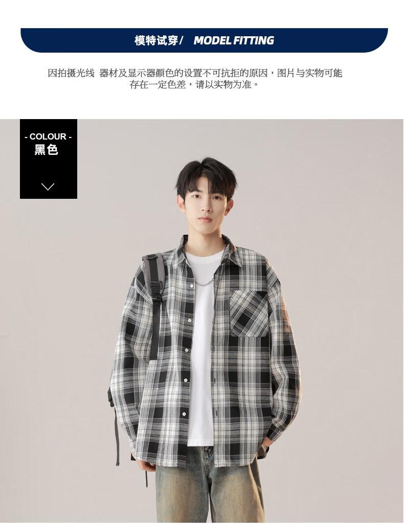 真维斯(Jeanswest)2026春季新款美式格子衬衫男士宽松休闲衬衣外套男生休闲长袖上衣 黑色 【春季新品】 S 【建议90-115斤】