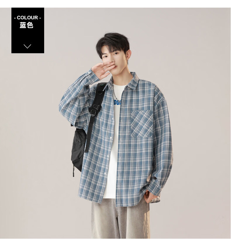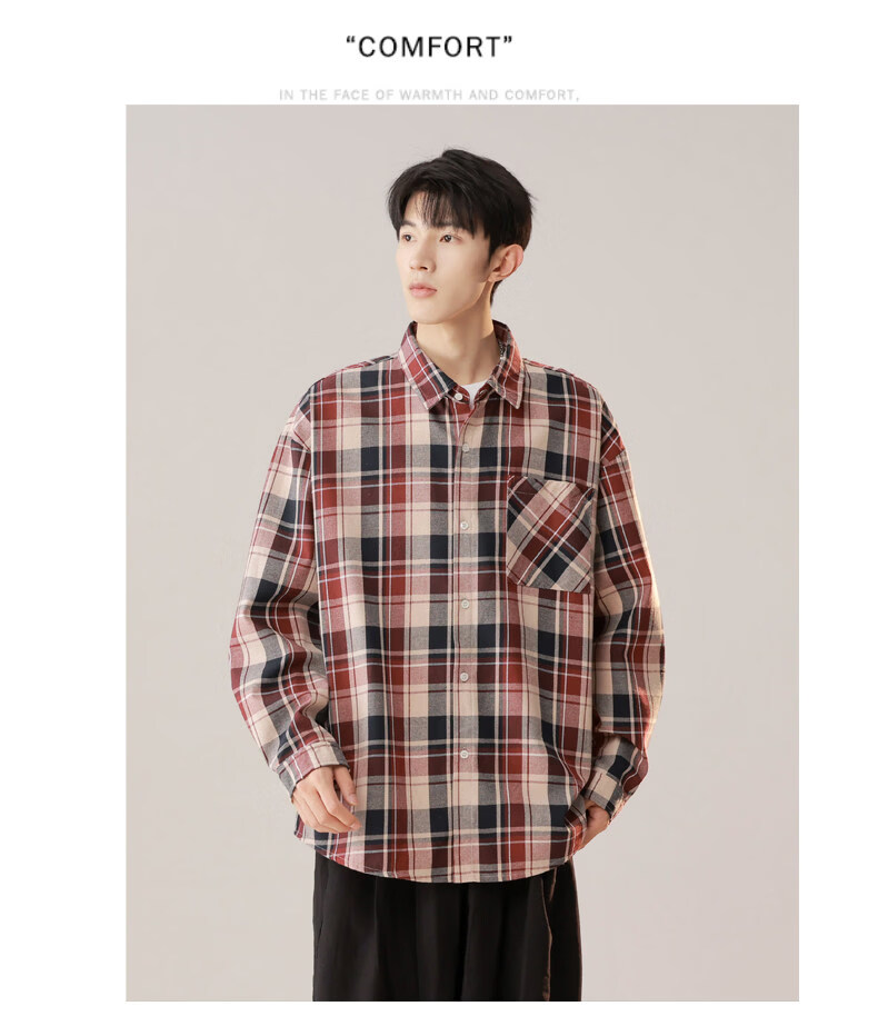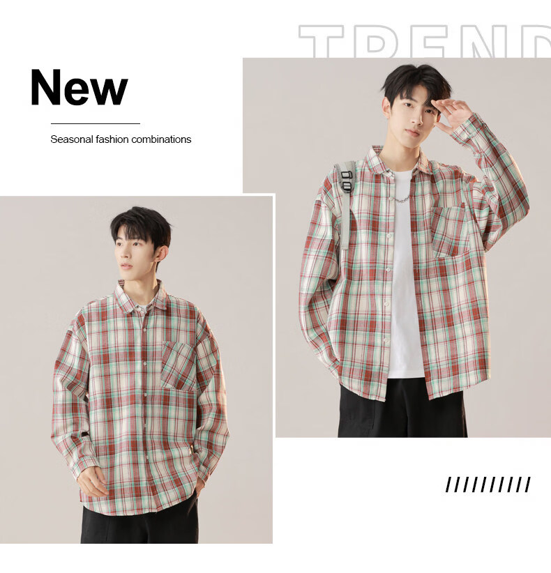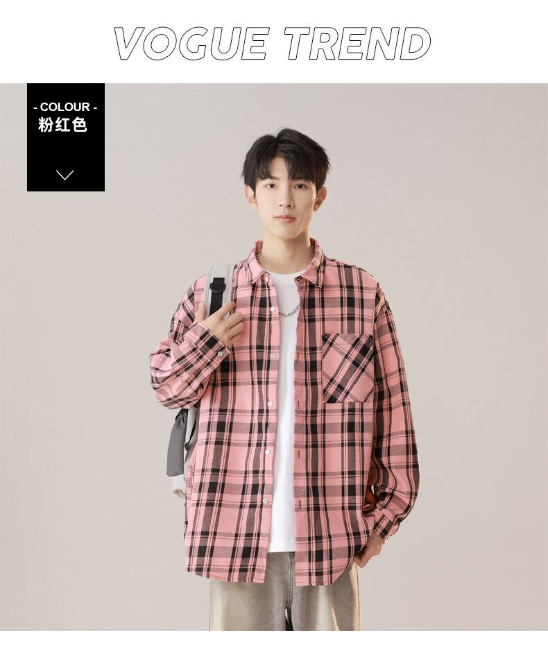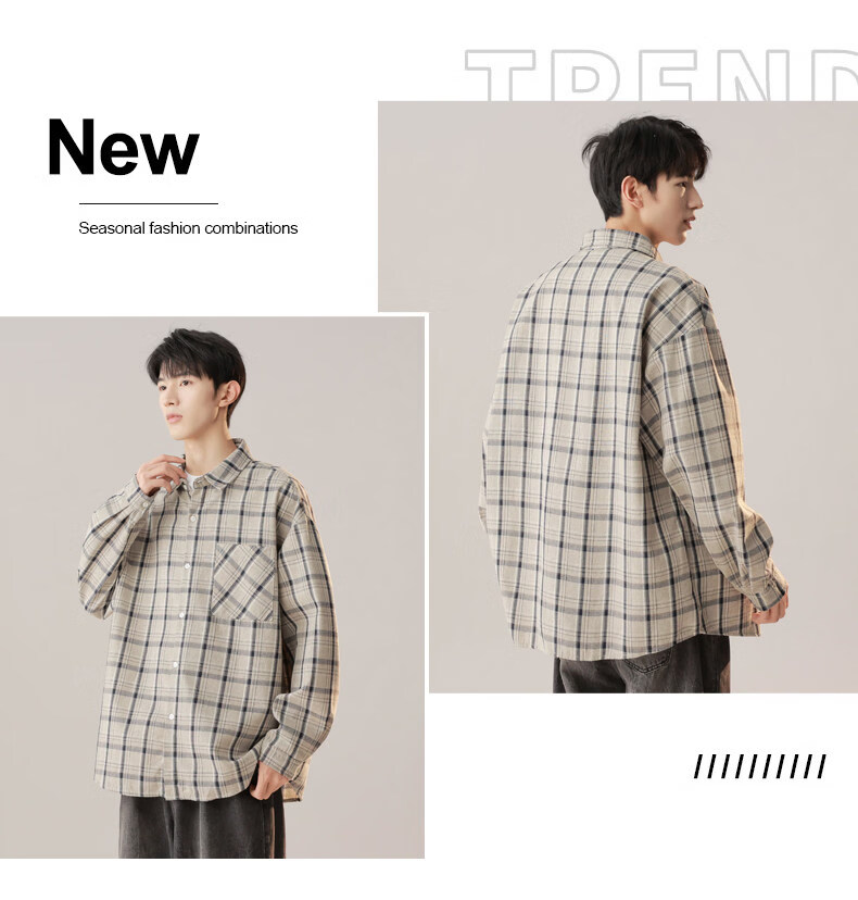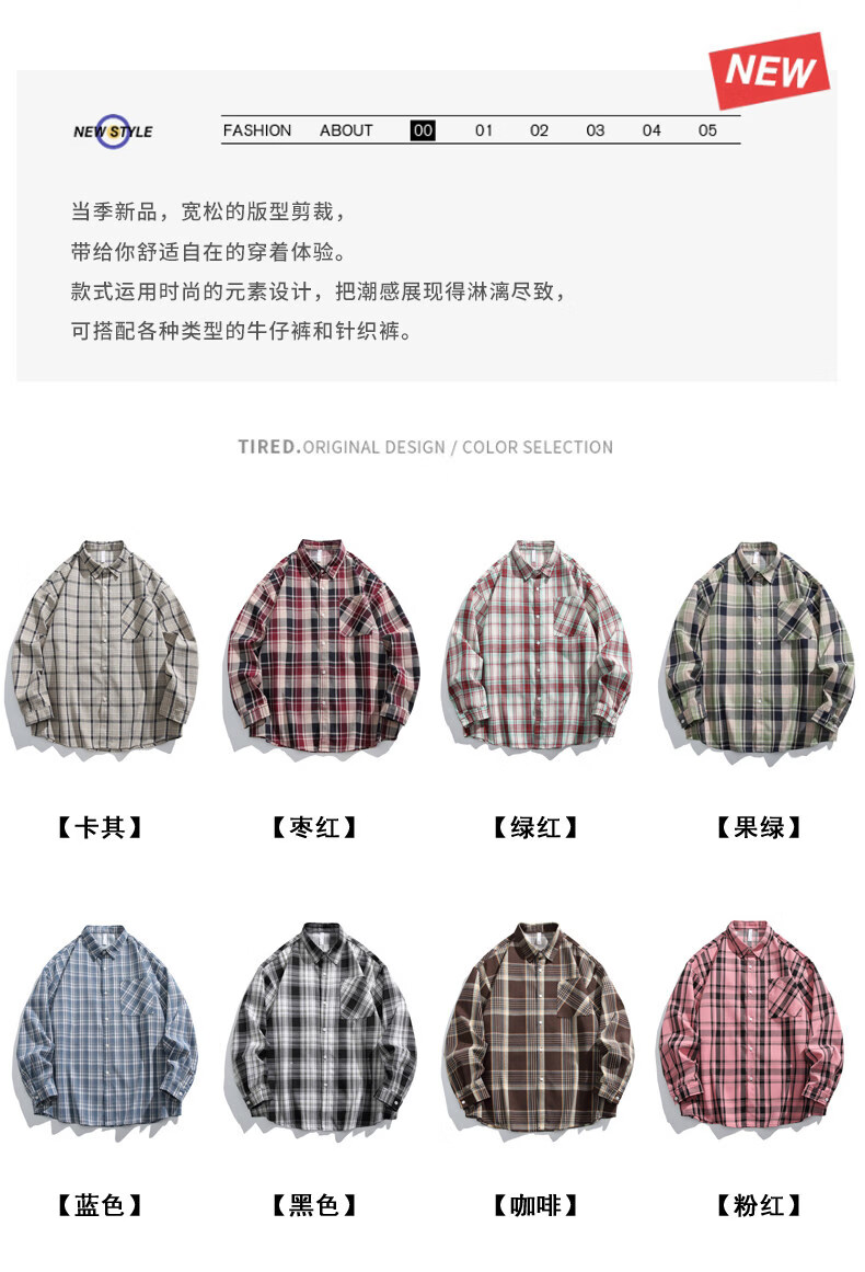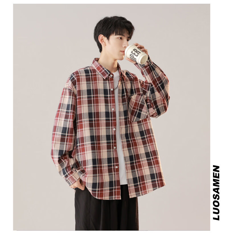真维斯(Jeanswest)2026春季新款美式格子衬衫男士宽松休闲衬衣外套男生休闲长袖上衣 黑色 【春季新品】 S 【建议90-115斤】