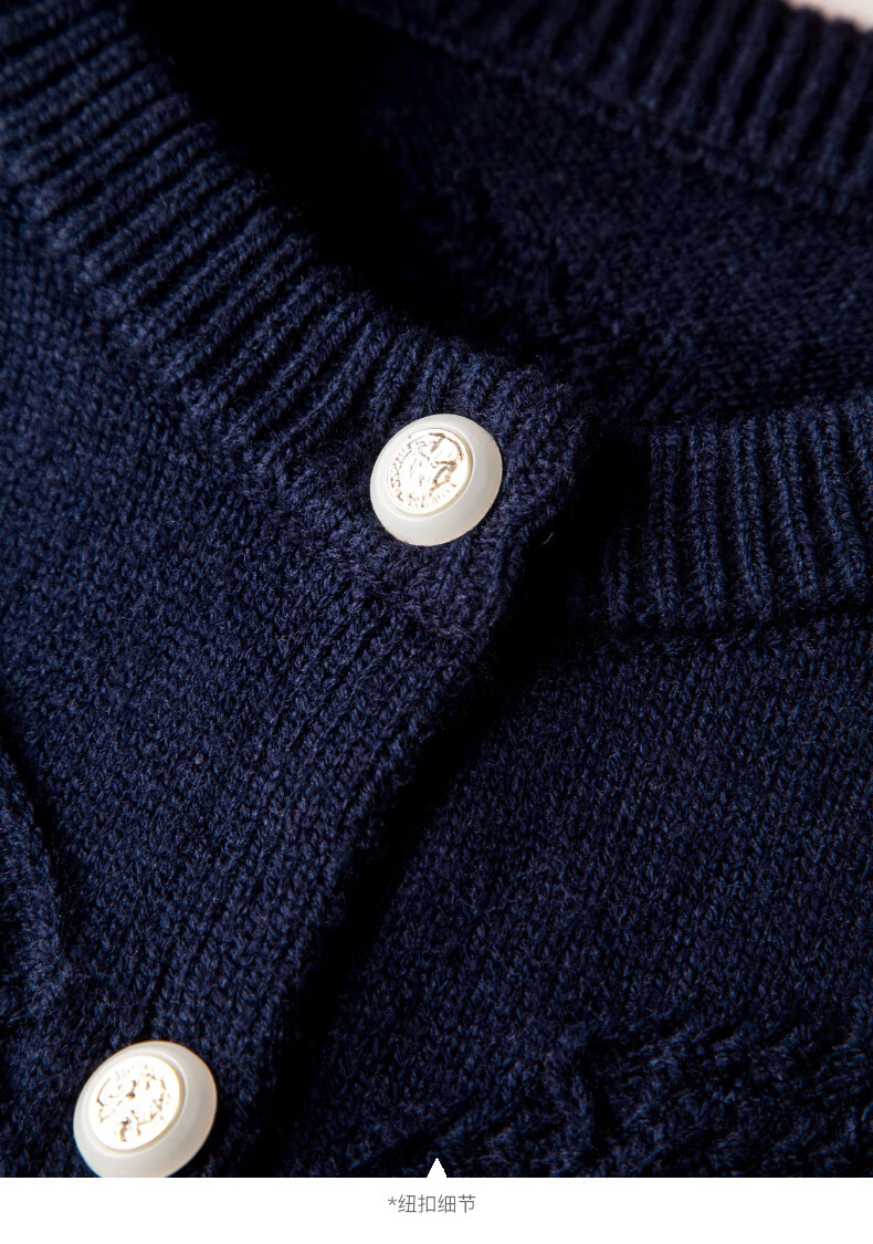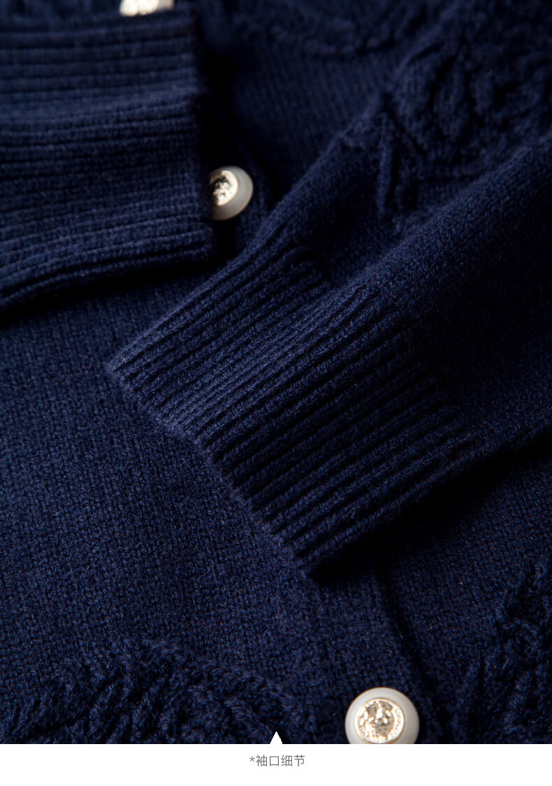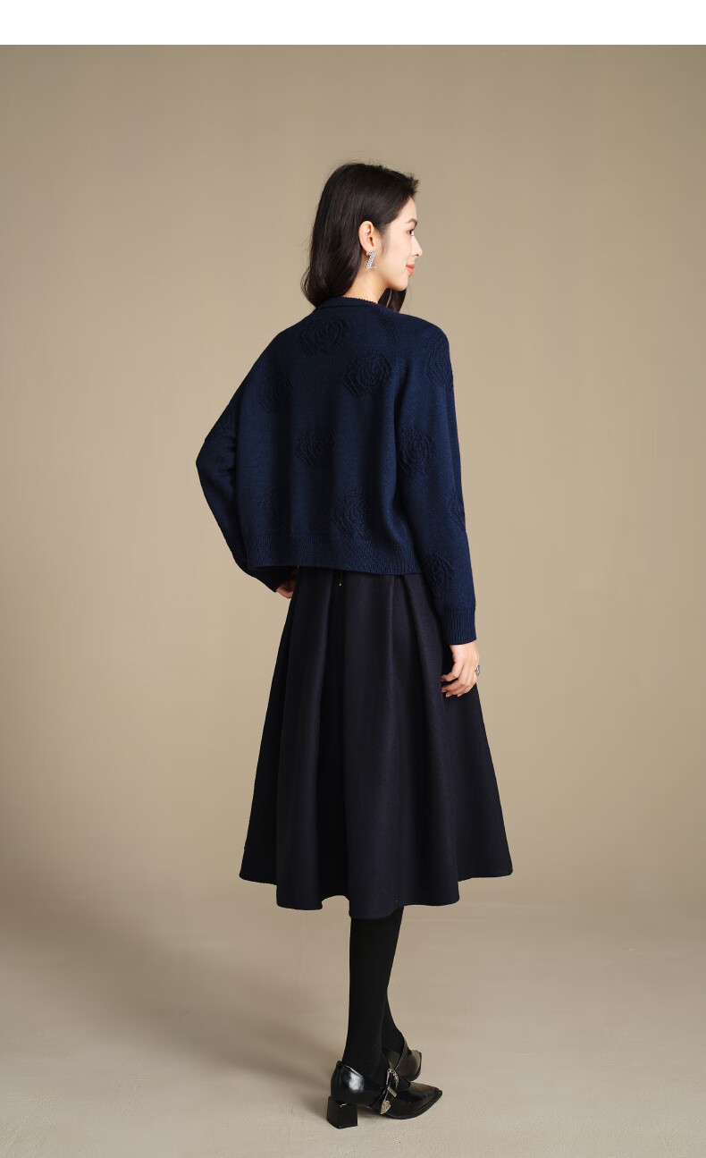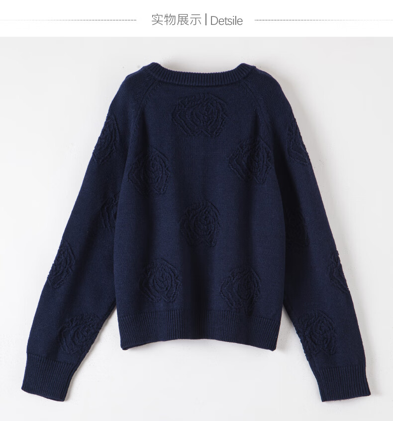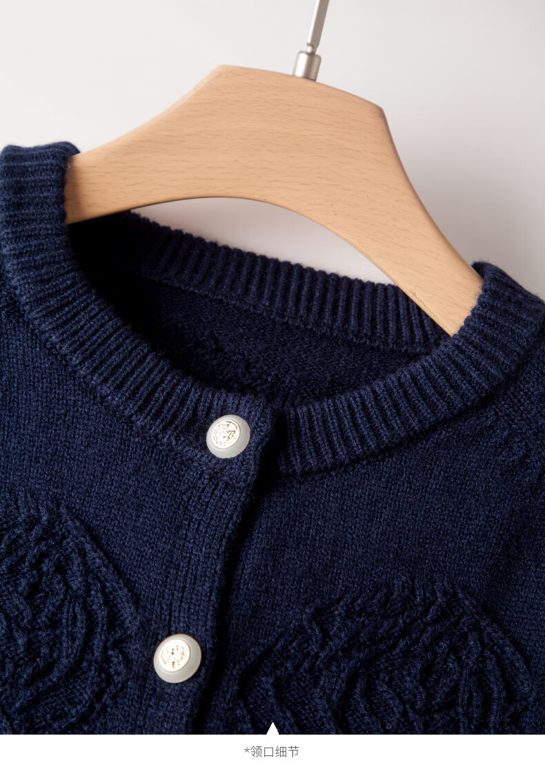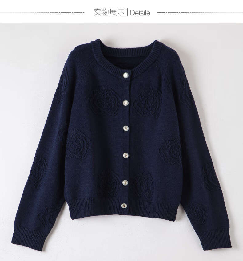 晚白【新品】2026春款含羊毛圆领纯色上衣宽松大码气质短针织开衫女 深蓝色 L