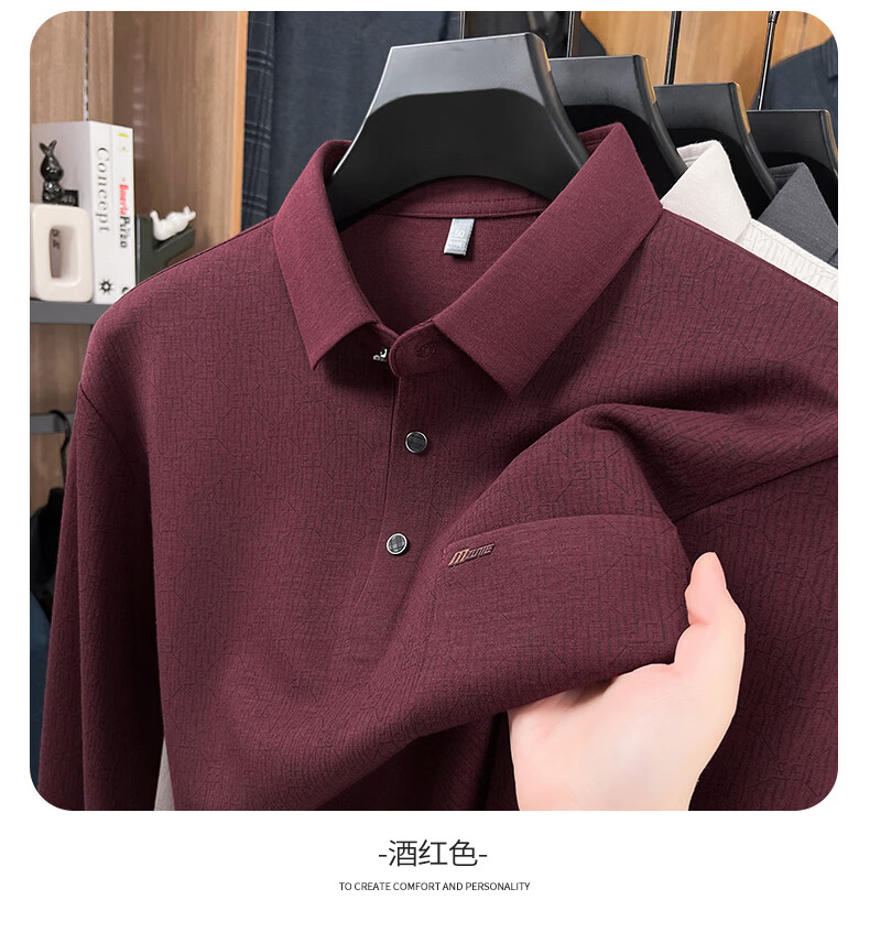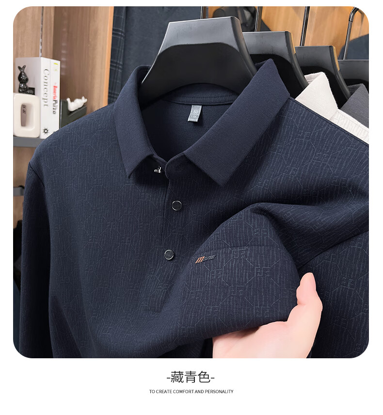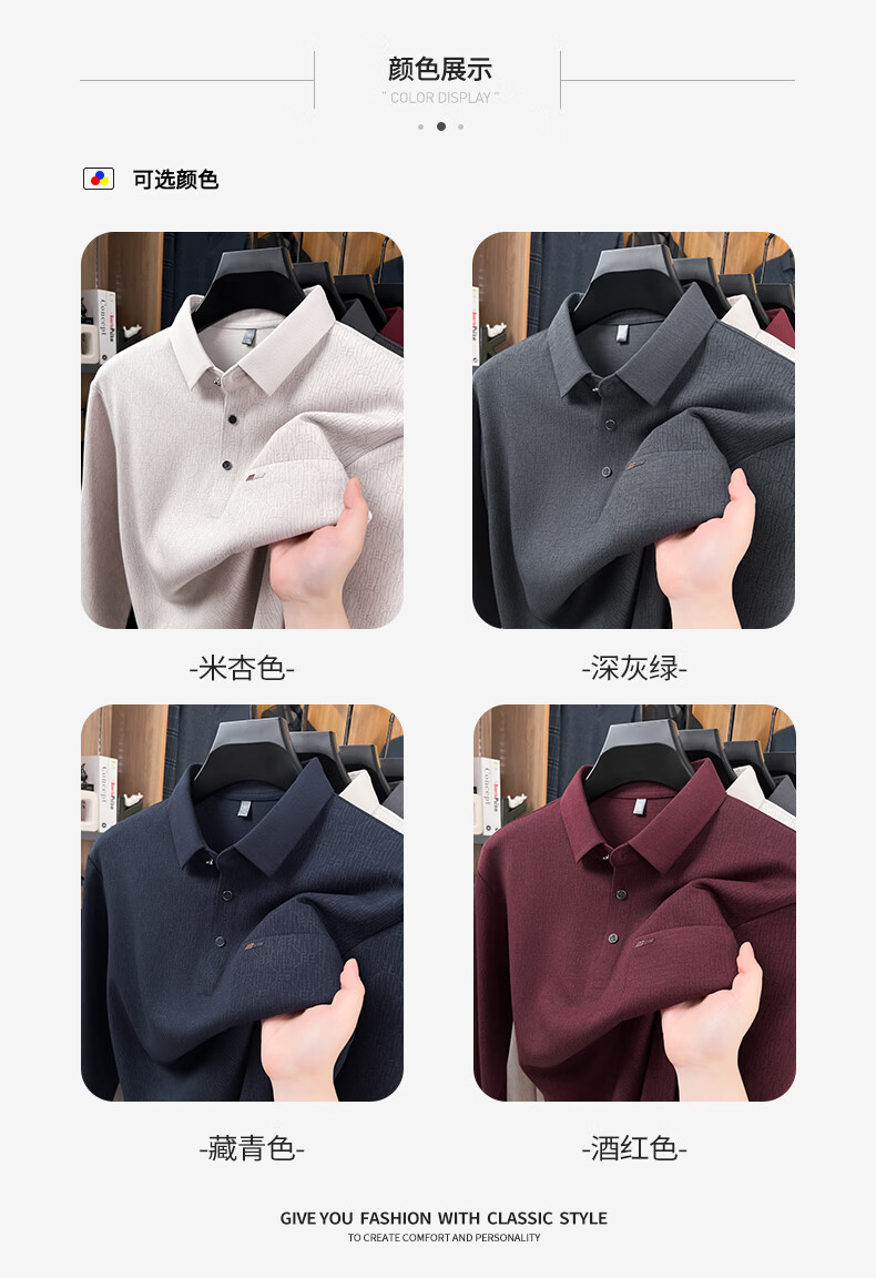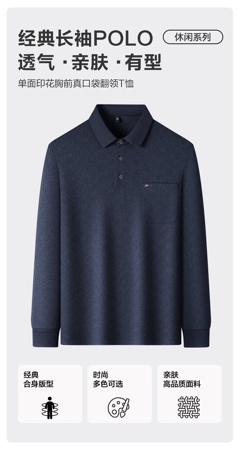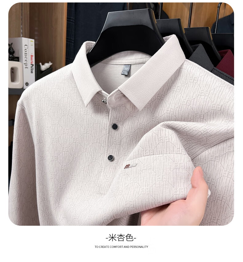 SHANSHAN杉杉【立体印花】长袖T恤男2026春季休闲时尚POLO衫舒适翻领卫衣 米杏色 M /170