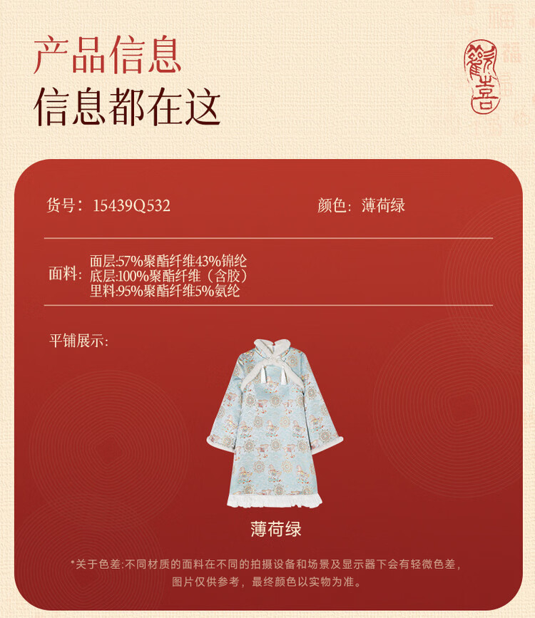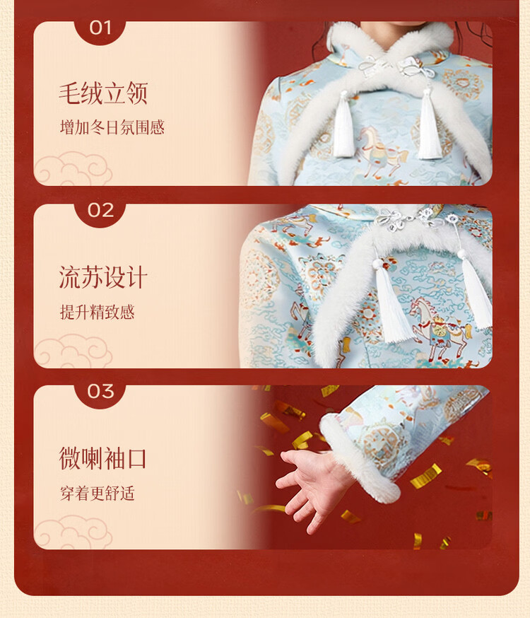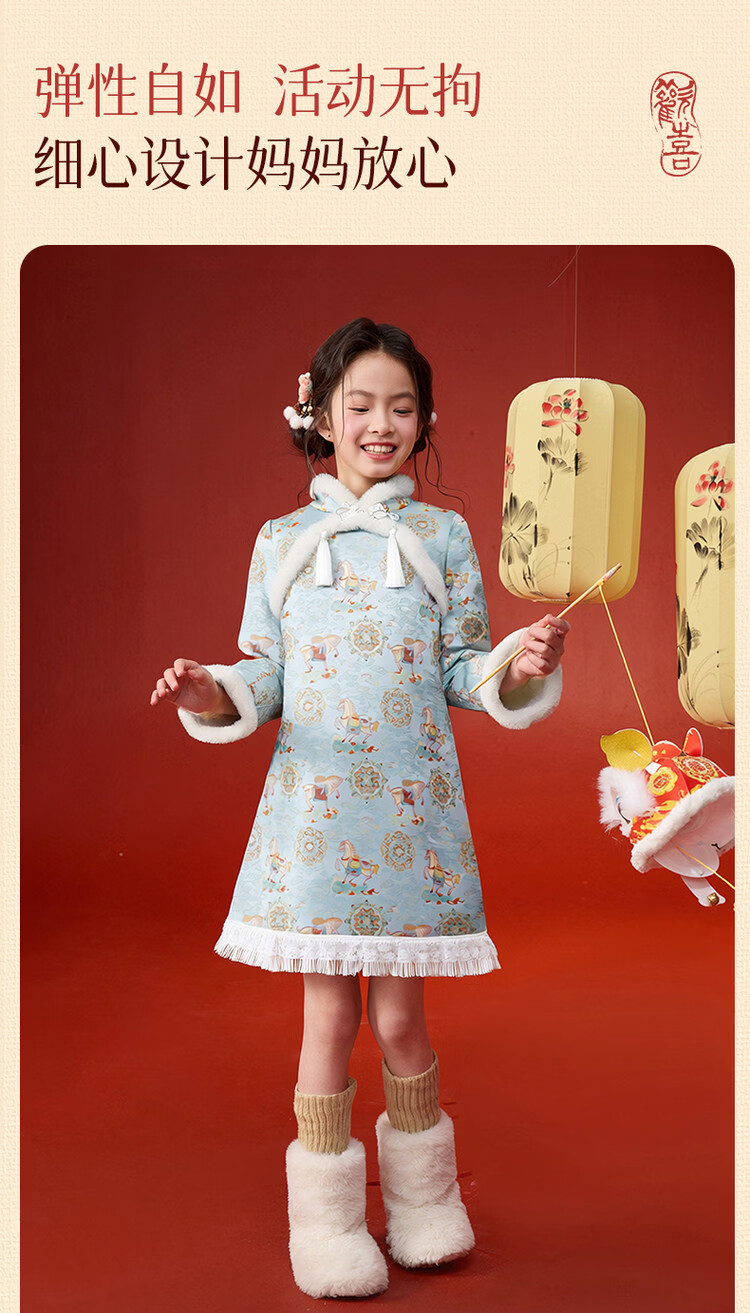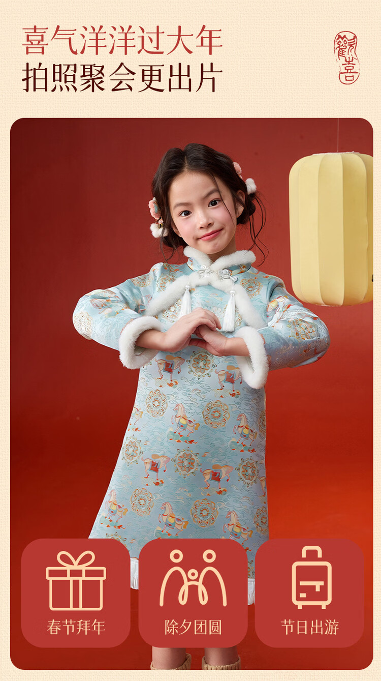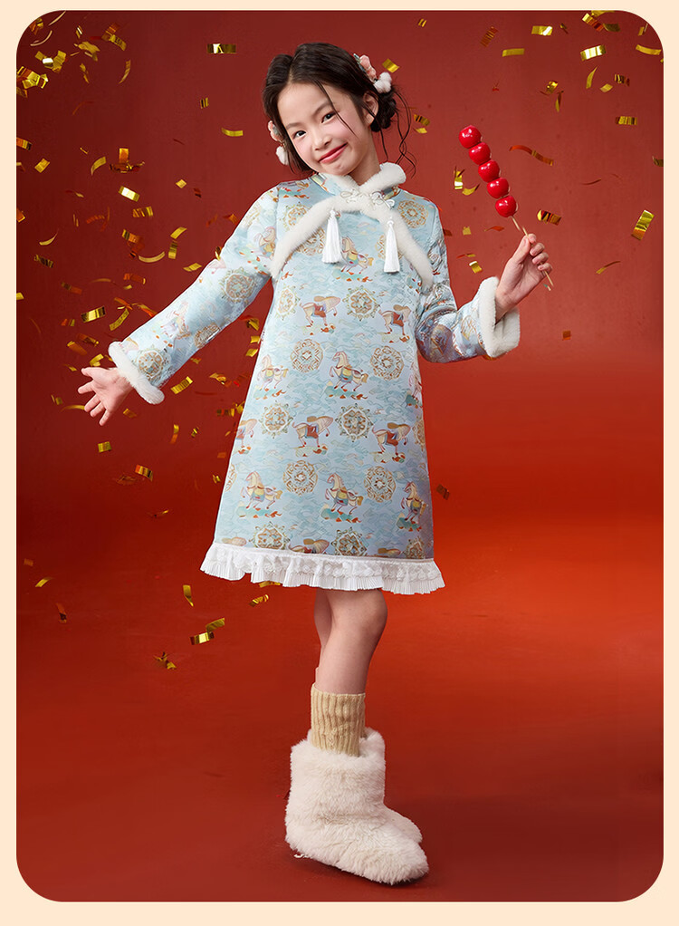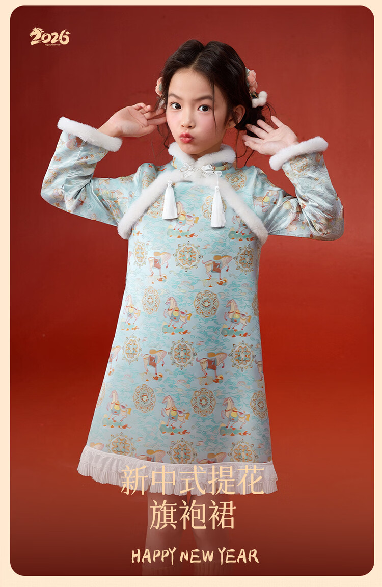 媛媛公主【马到成功】女童新中式加绒旗袍裙25冬新款儿童洋气保暖拜年服 薄荷绿 110