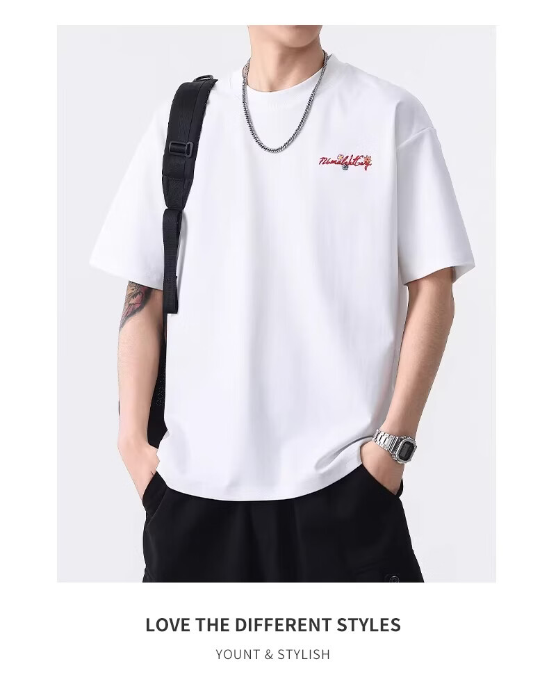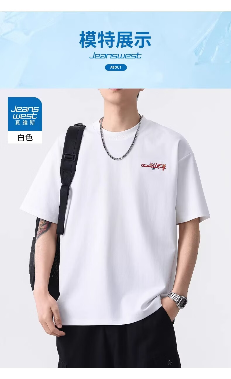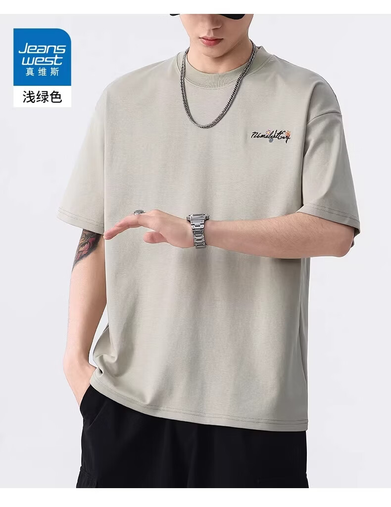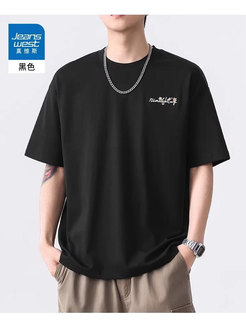 真维斯美式休闲刺绣圆领短袖T恤男夏季新款时尚潮牌百搭复古上衣 黑色 【柔软亲肤】 M 建议体重110-130斤