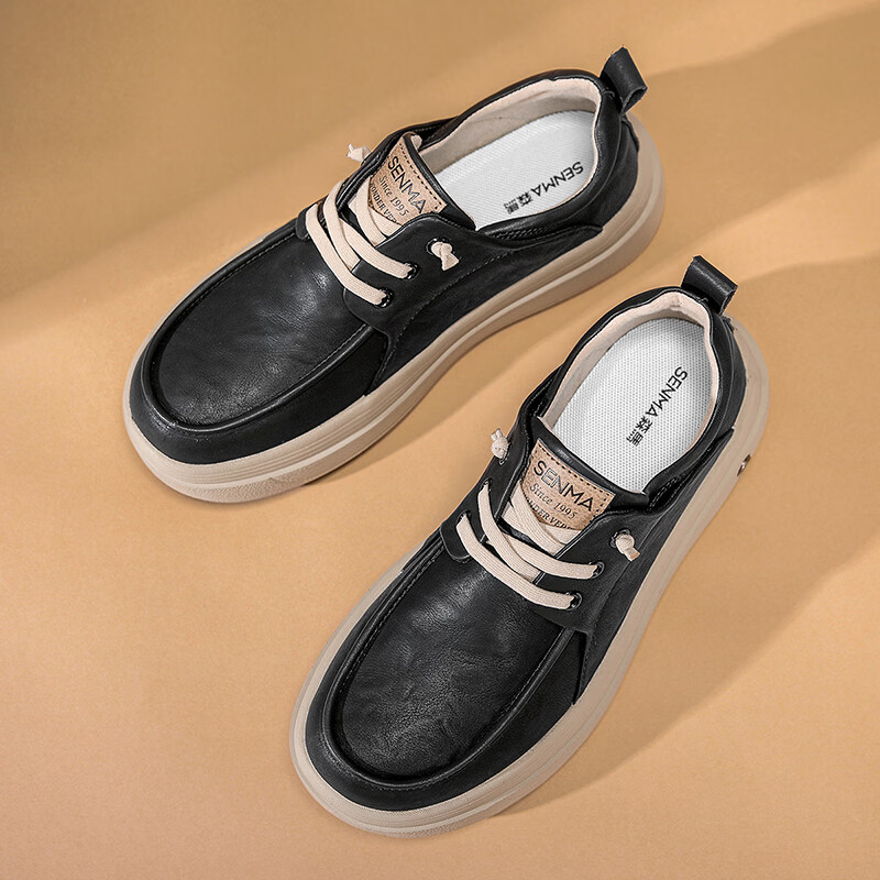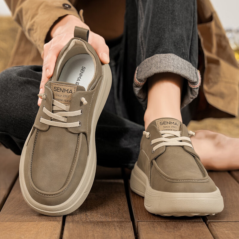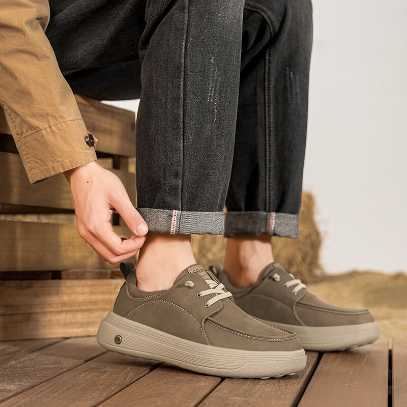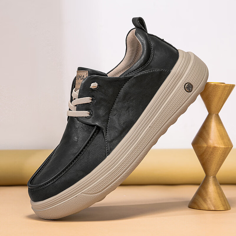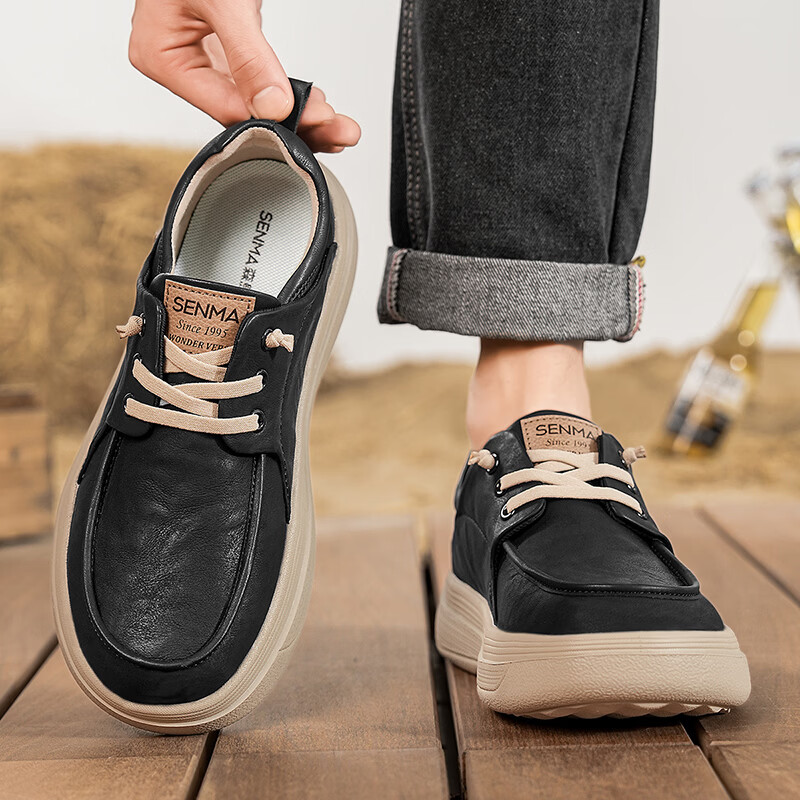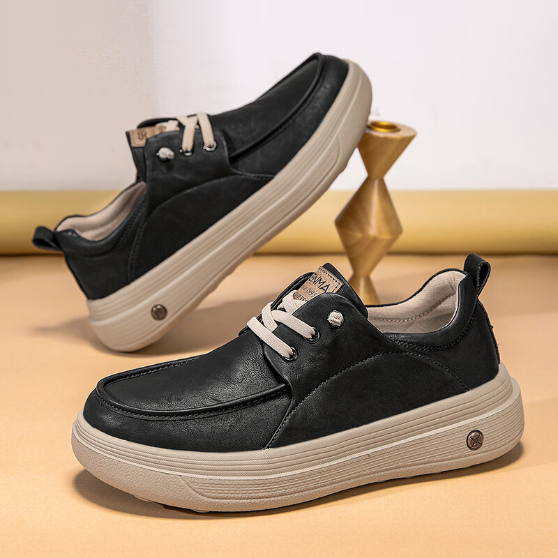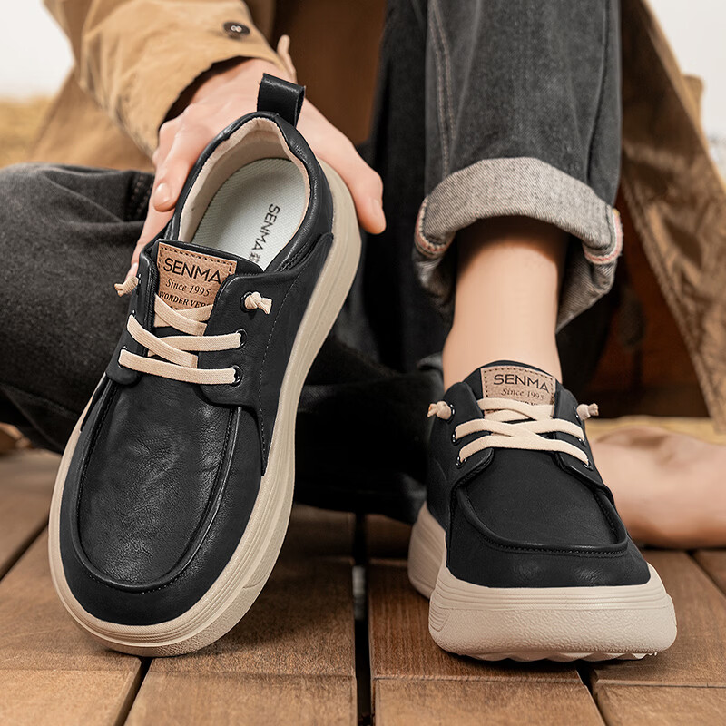 森馬男鞋2026春季英伦风复古真皮防水皮鞋轻便软底男士休闲运动潮鞋 黑色【基础款】 39 标准码数/现货秒发