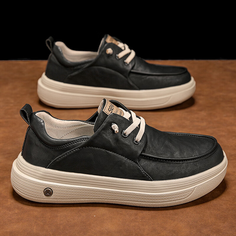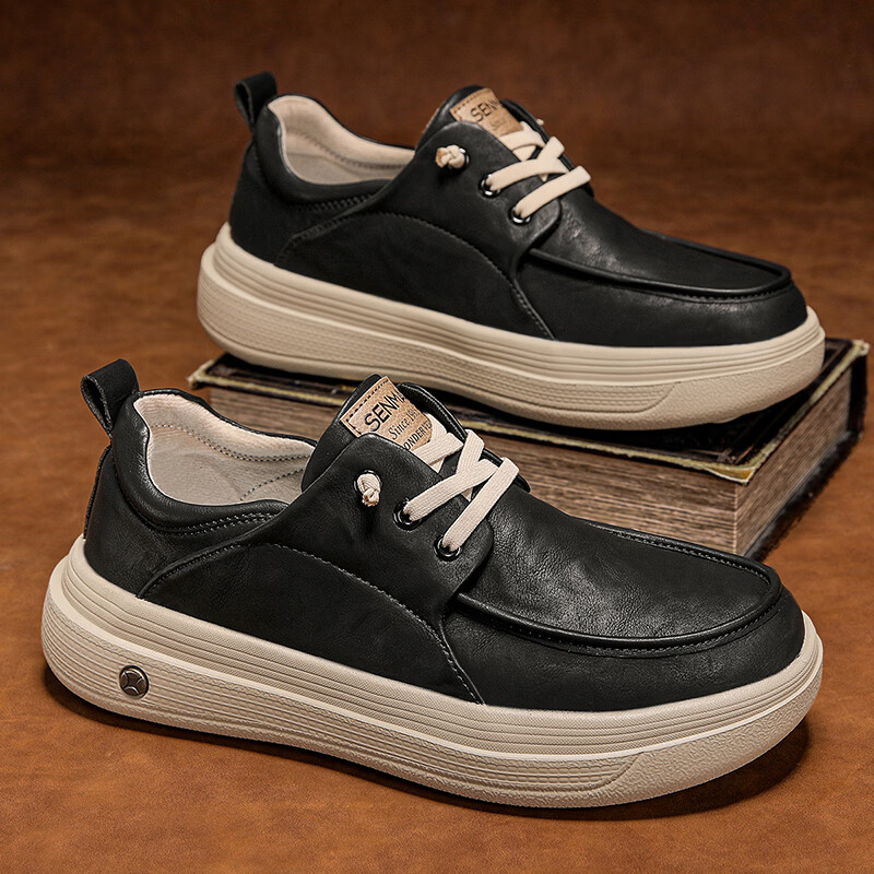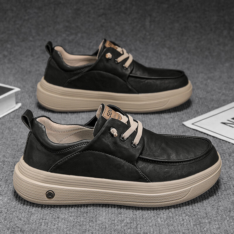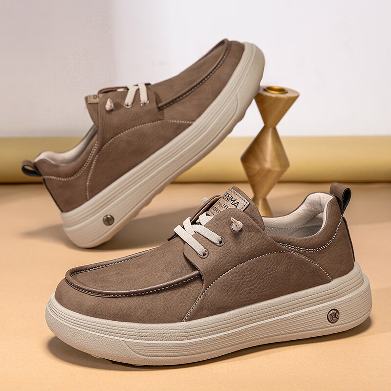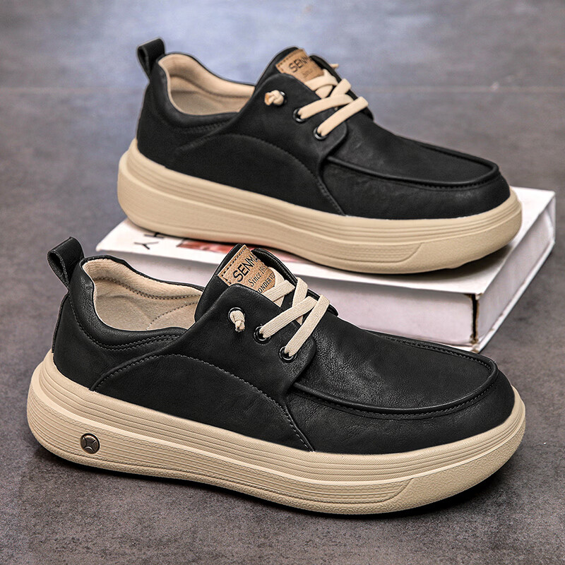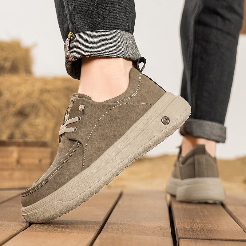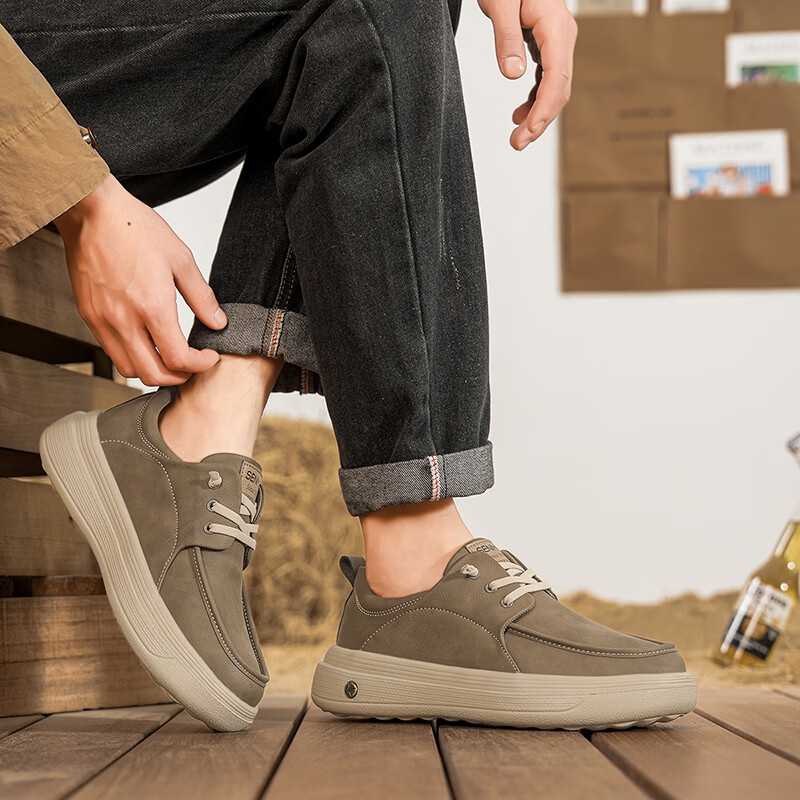 森馬男鞋2026春季英伦风复古真皮防水皮鞋轻便软底男士休闲运动潮鞋 黑色【基础款】 39 标准码数/现货秒发
