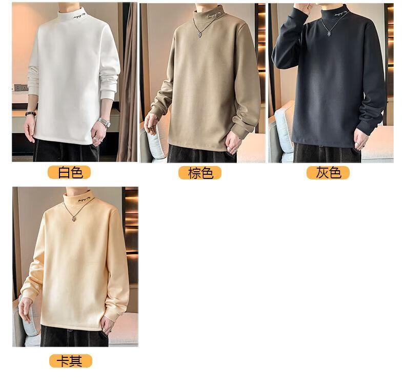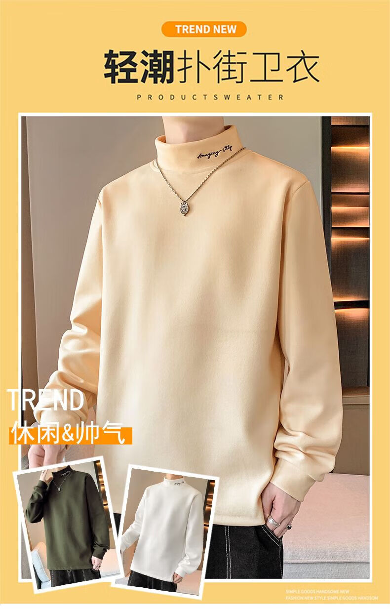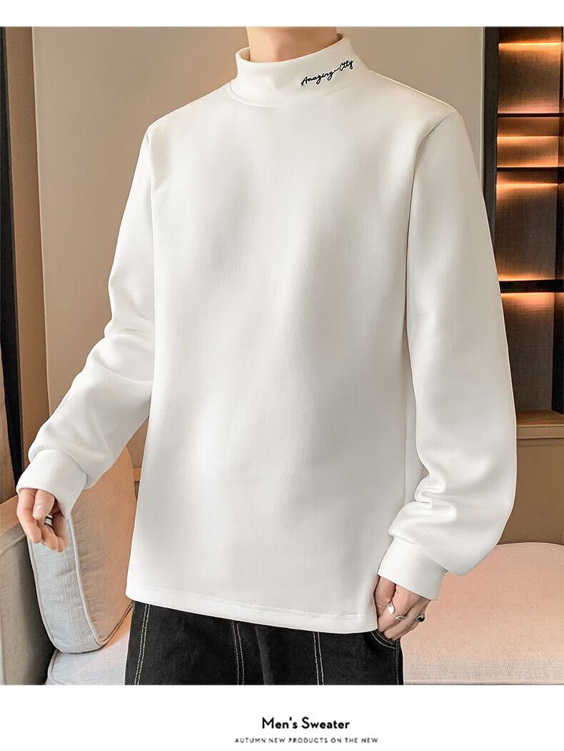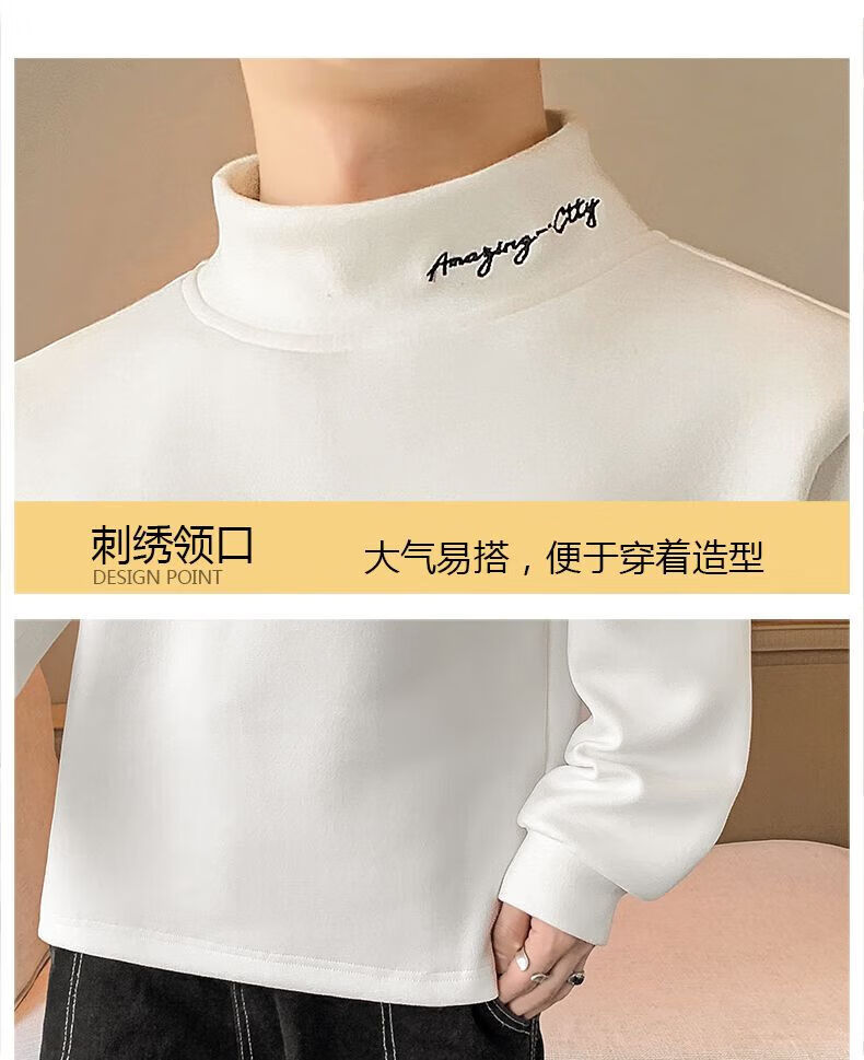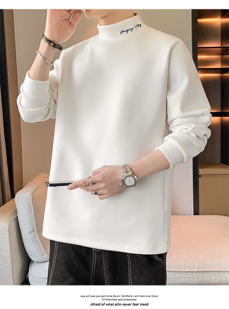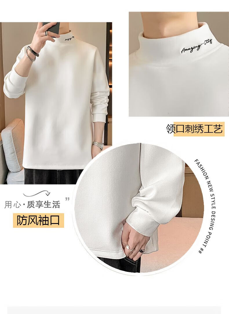 啄木鸟长袖t恤男2025秋冬季新款半高领德绒保暖内搭休闲打底衫卫衣男 白色 M (建议90-110斤)