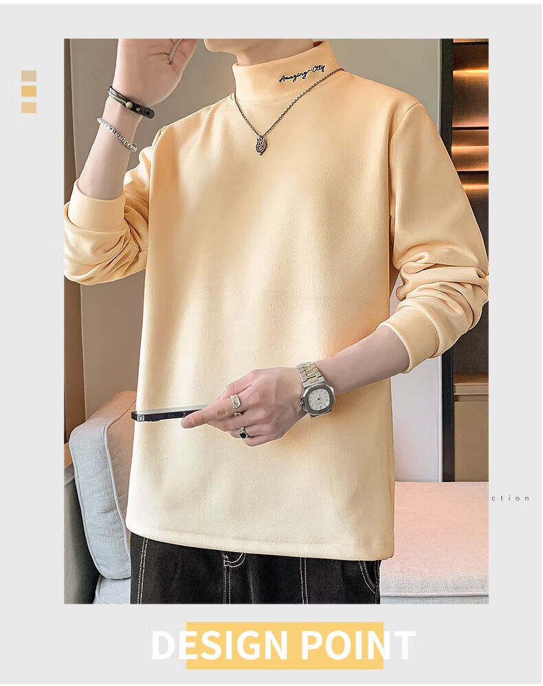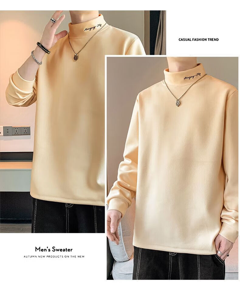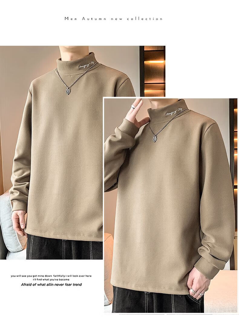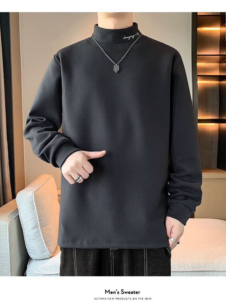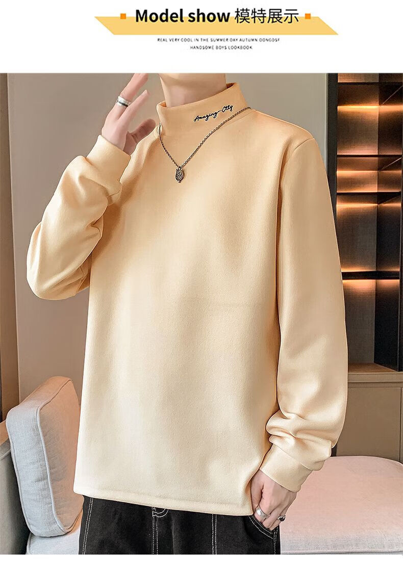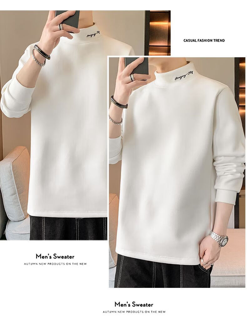 啄木鸟长袖t恤男2025秋冬季新款半高领德绒保暖内搭休闲打底衫卫衣男 白色 M (建议90-110斤)