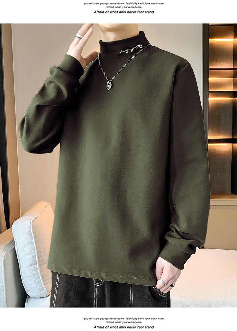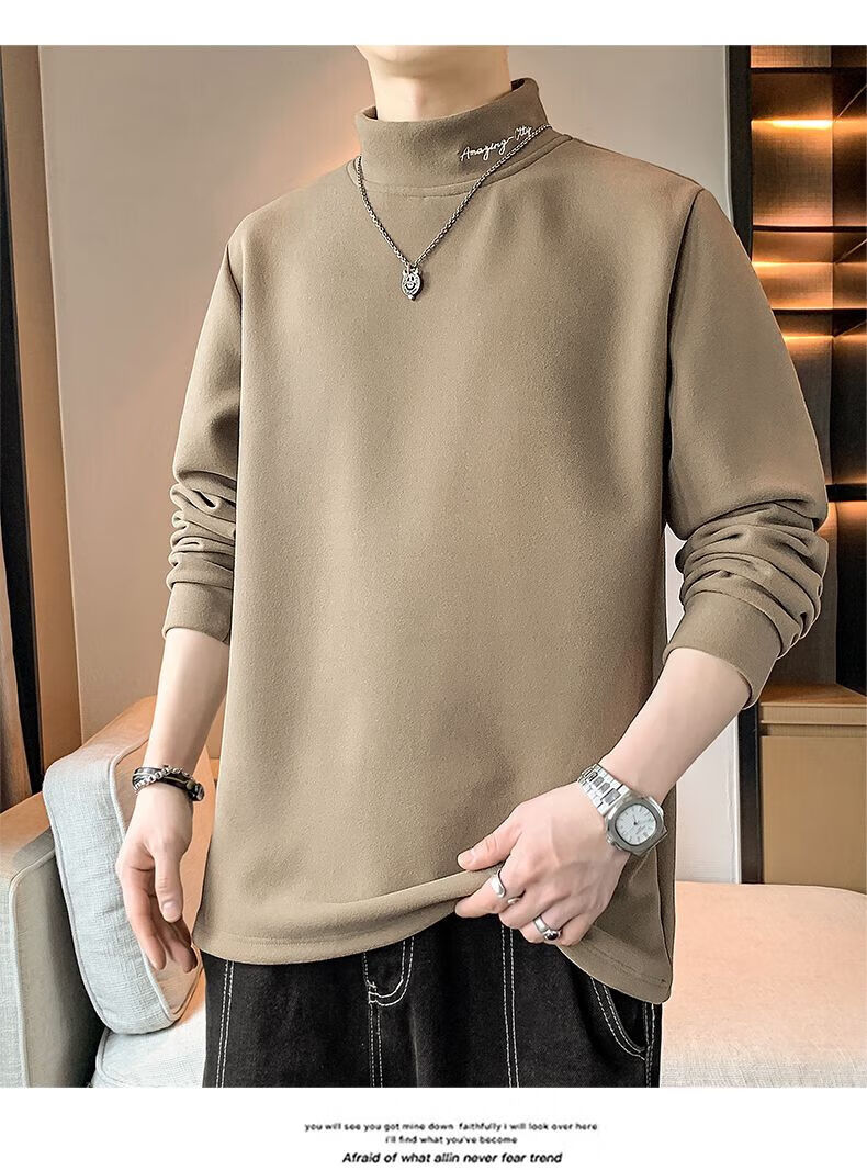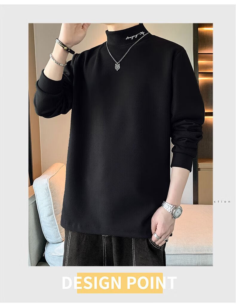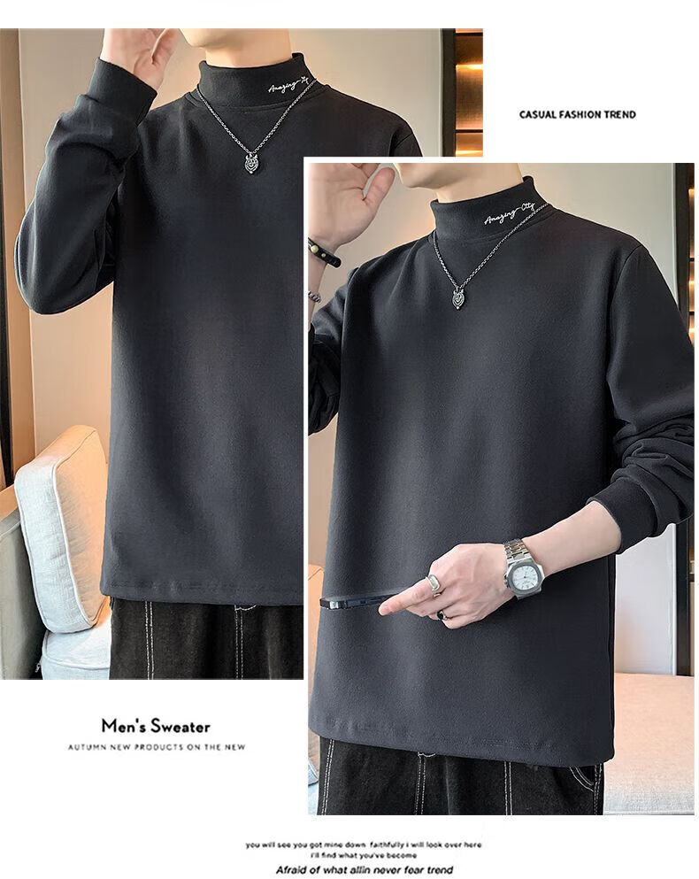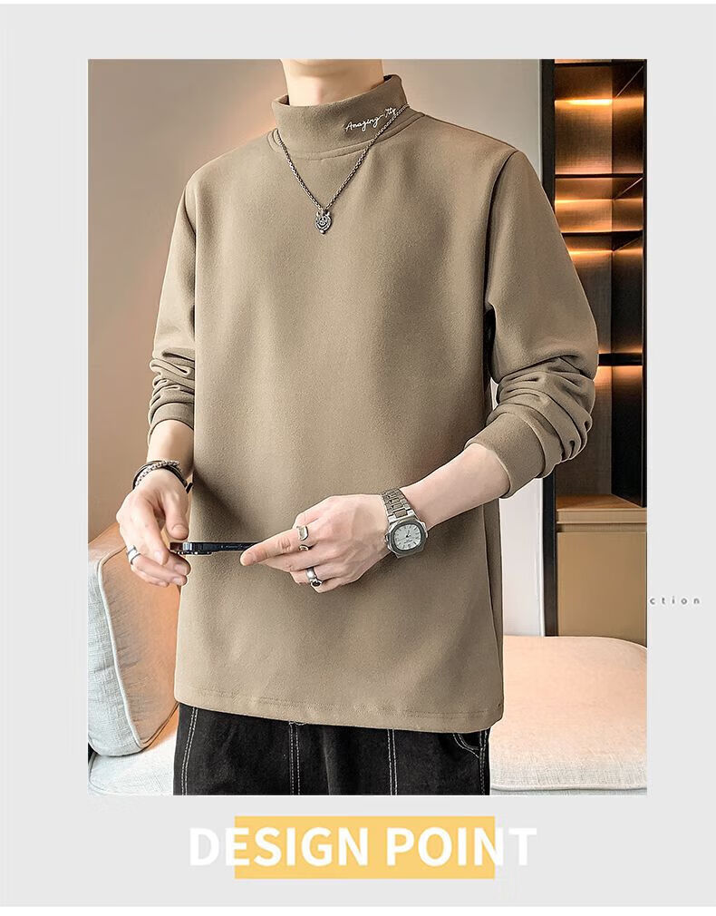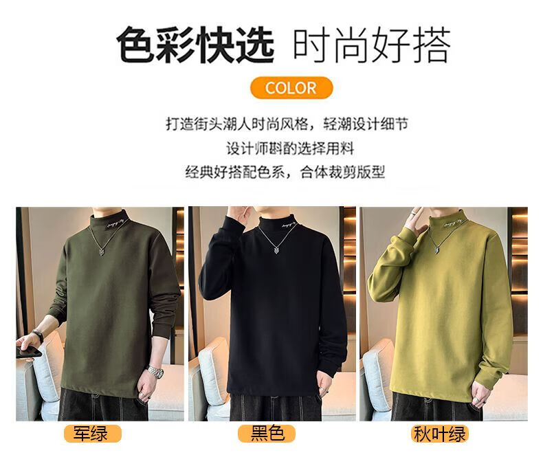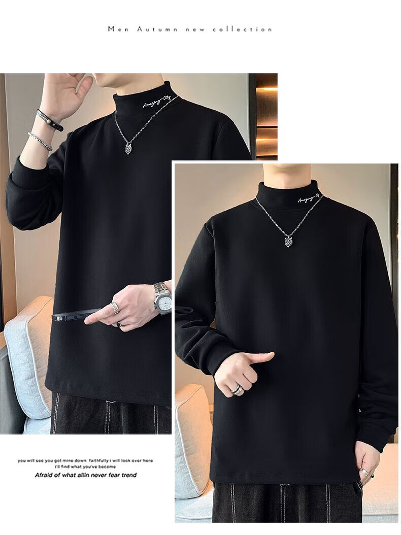 啄木鸟长袖t恤男2025秋冬季新款半高领德绒保暖内搭休闲打底衫卫衣男 白色 M (建议90-110斤)