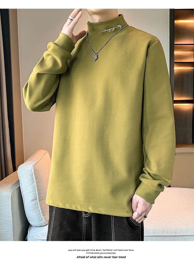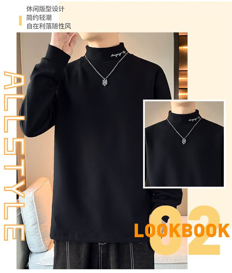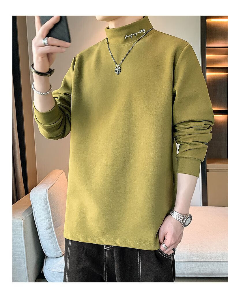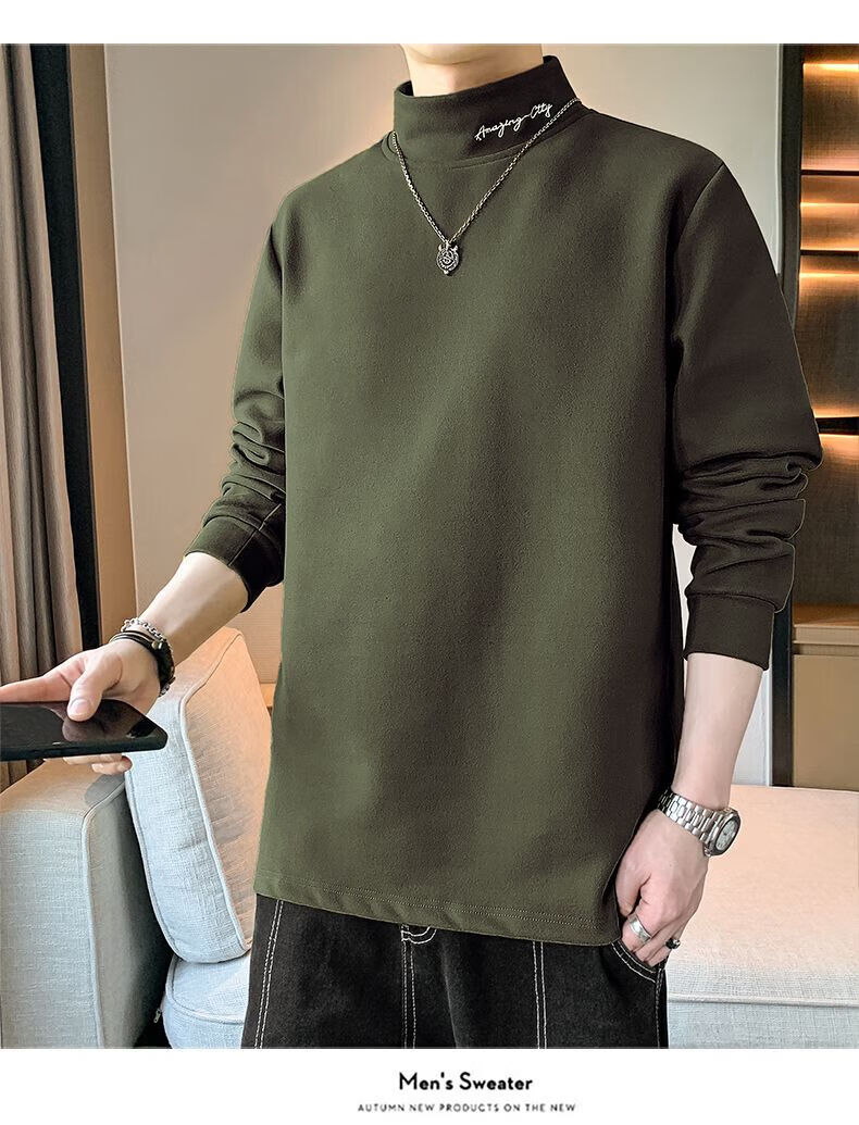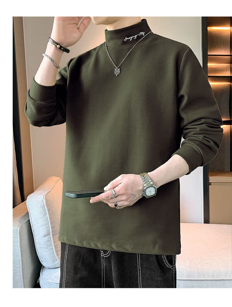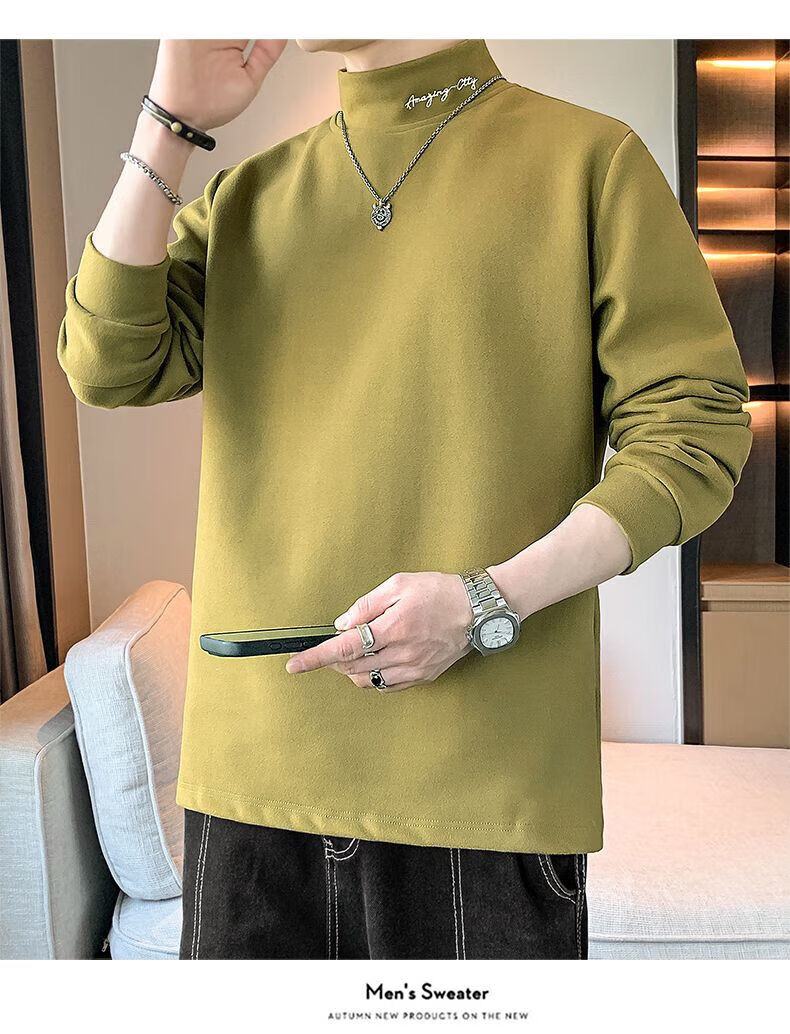 啄木鸟长袖t恤男2025秋冬季新款半高领德绒保暖内搭休闲打底衫卫衣男 白色 M (建议90-110斤)