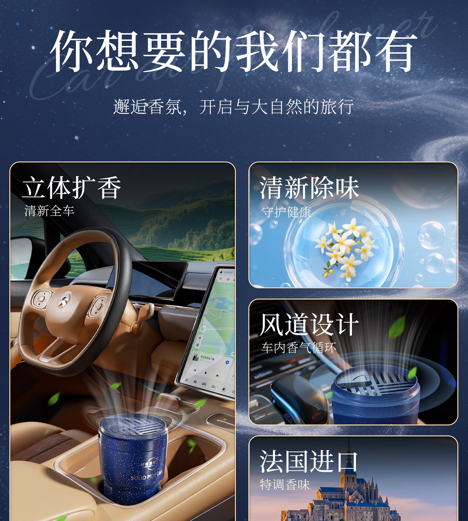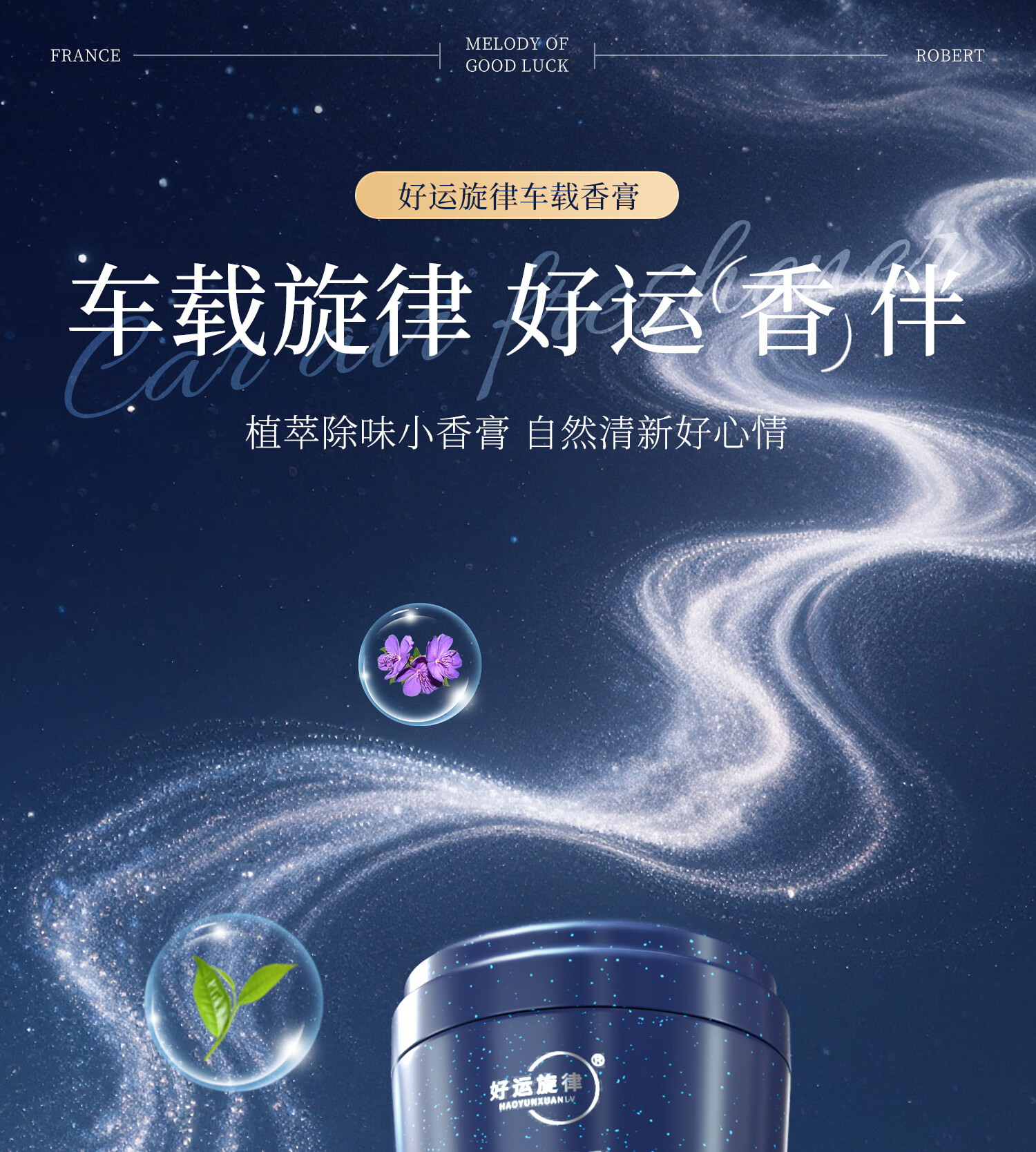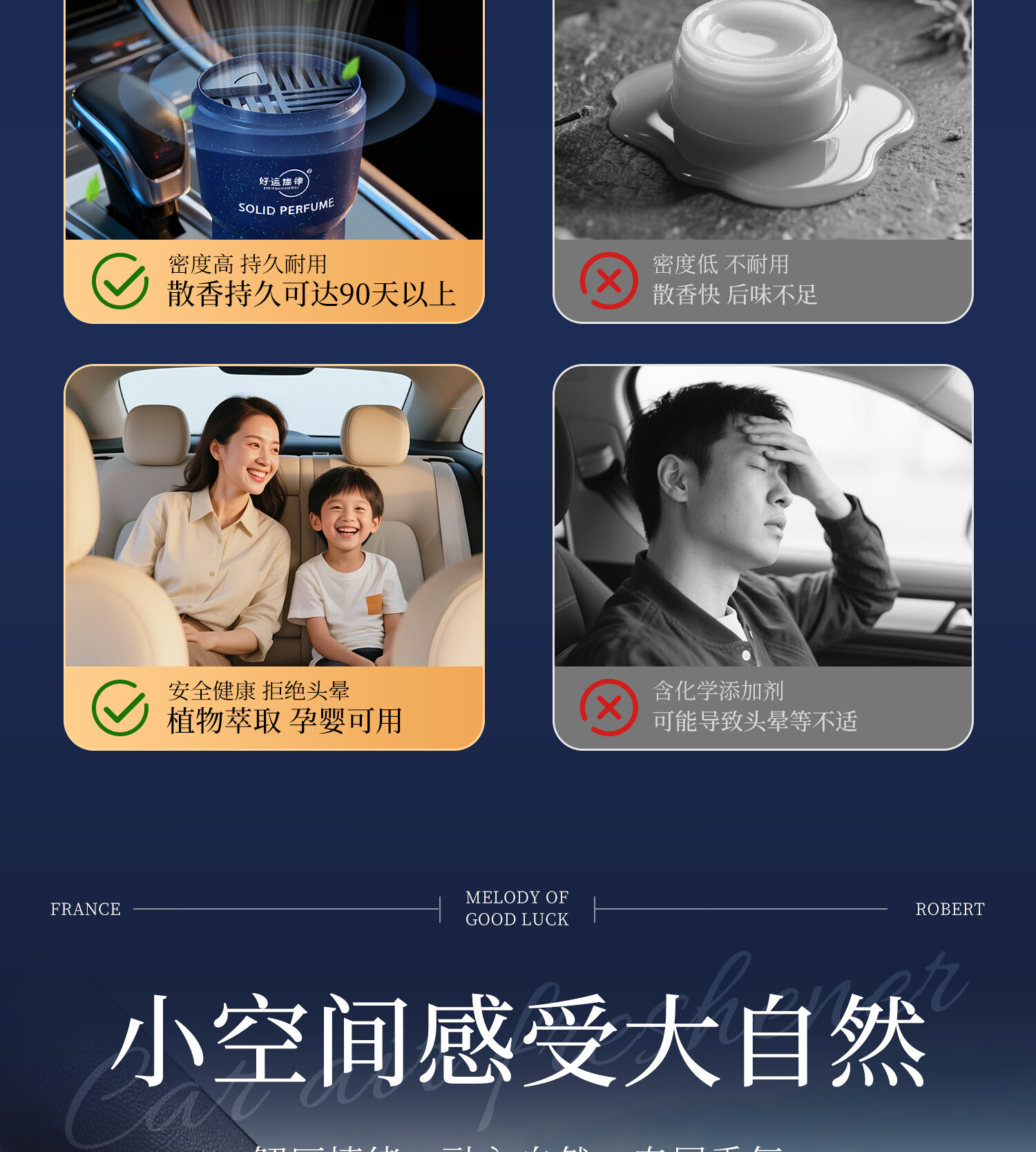 好运旋律车载香薰固体香膏新车除味净化空气除异味车内装饰母婴可用香料 【4瓶装】栀子花+沉香+禅茶+茉莉