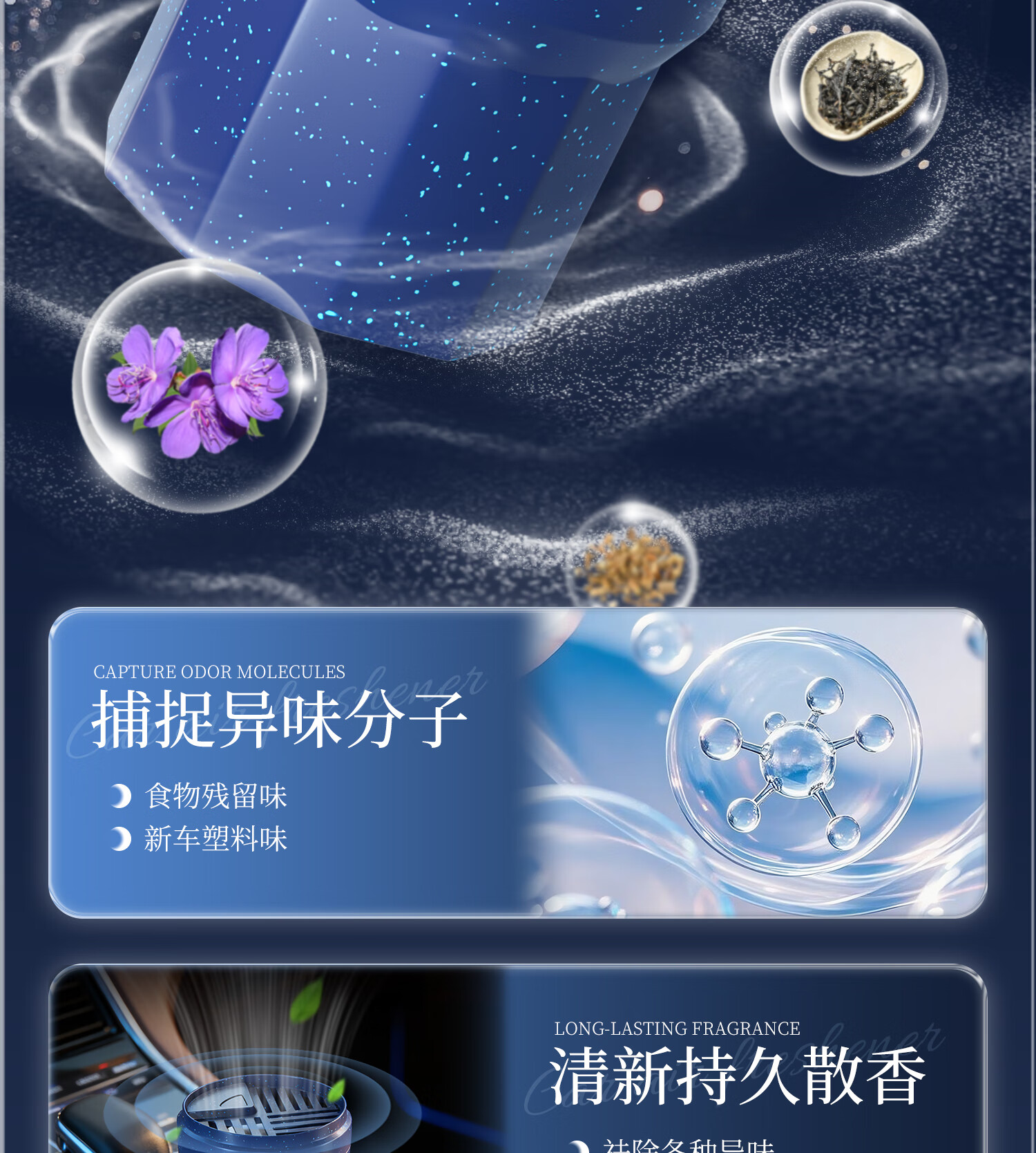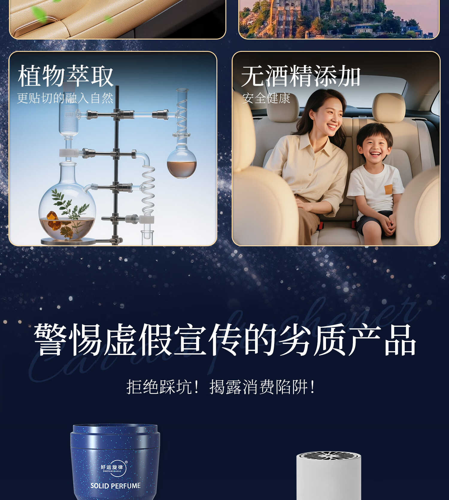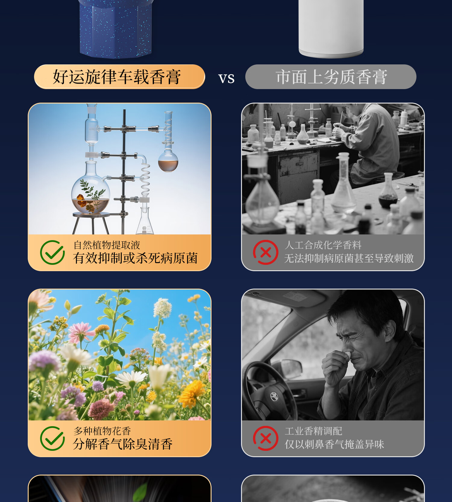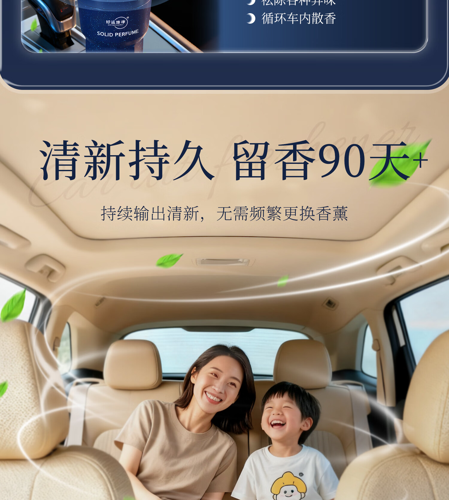好运旋律车载香薰固体香膏新车除味净化空气除异味车内装饰母婴可用香料 【4瓶装】栀子花+沉香+禅茶+茉莉