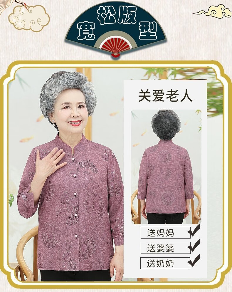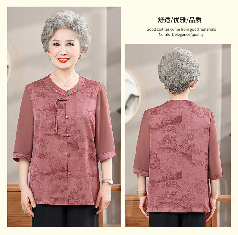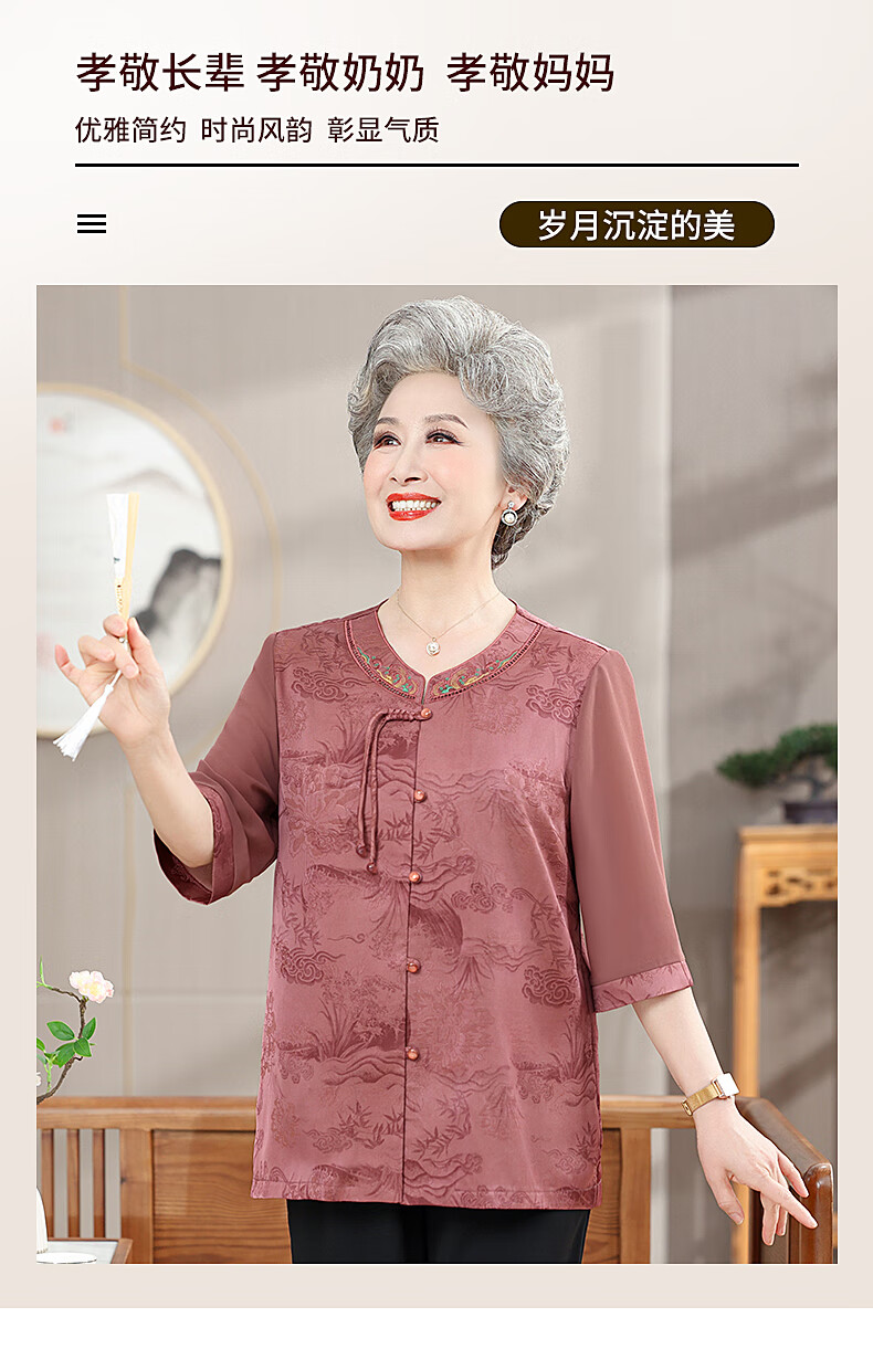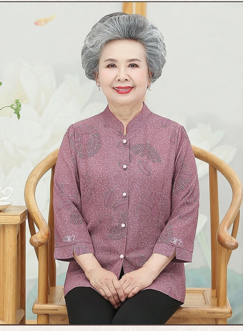 孜颜中老年女装衬衫女老年人夏装奶奶装半袖衬衣60-80岁妈妈开衫上衣 皮粉 XL 【建议80-100斤】
