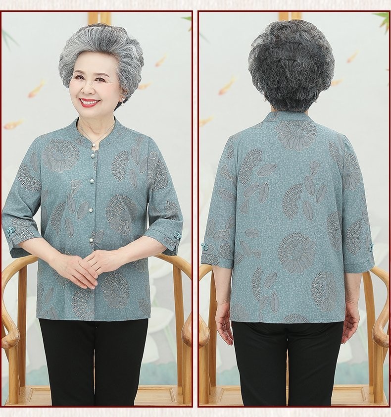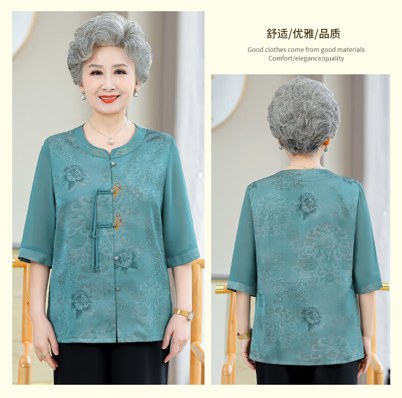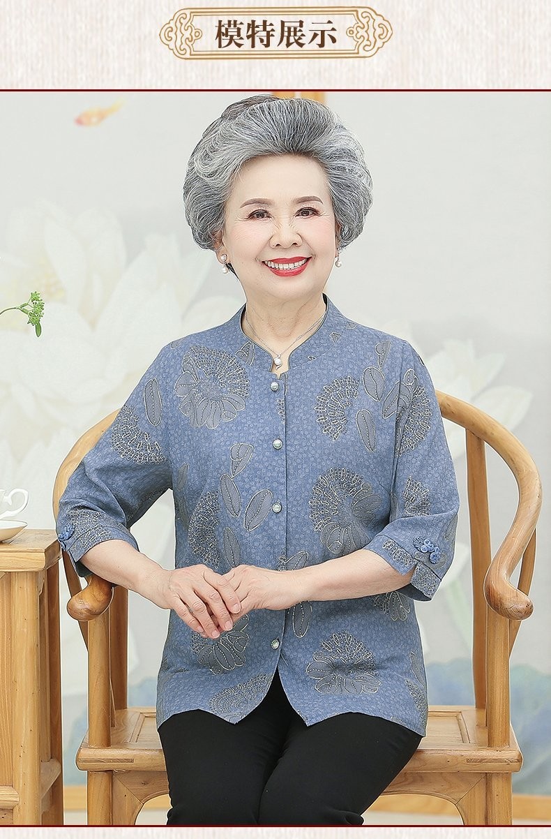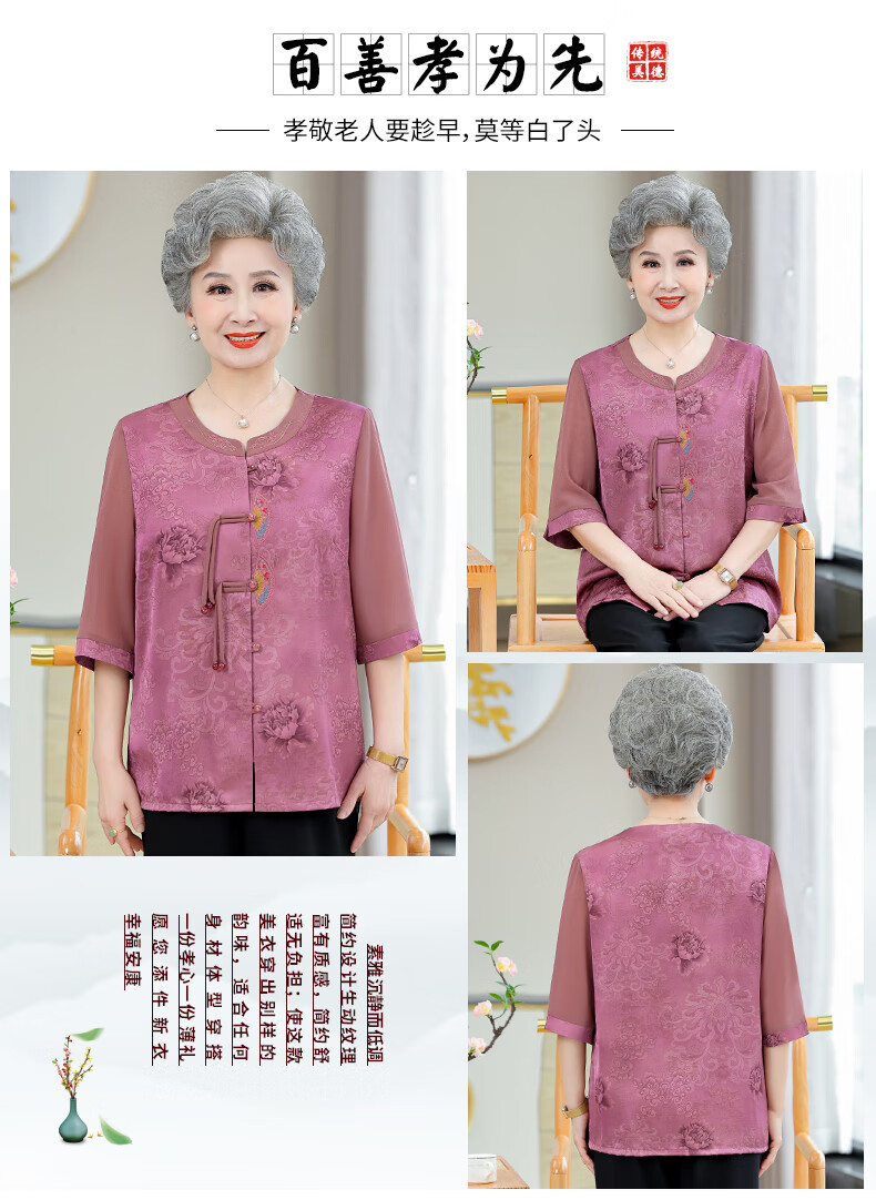 孜颜中老年女装衬衫女老年人夏装奶奶装半袖衬衣60-80岁妈妈开衫上衣 皮粉 XL 【建议80-100斤】