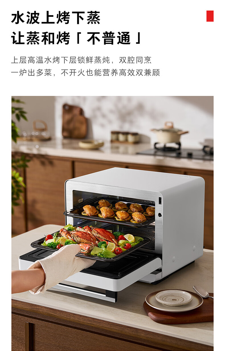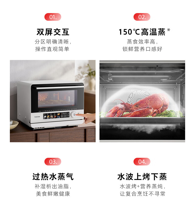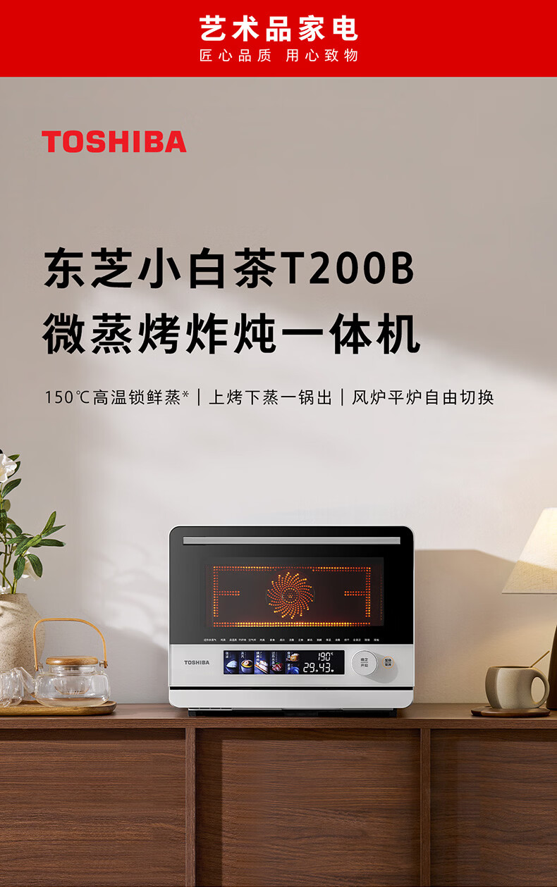 东芝(TOSHIBA)T200B小白茶Air【官方旗舰店】微蒸烤一体机家用微波炉水波炉蒸烤箱空气炸四合一变频 高温蒸 23L ER-T200BW