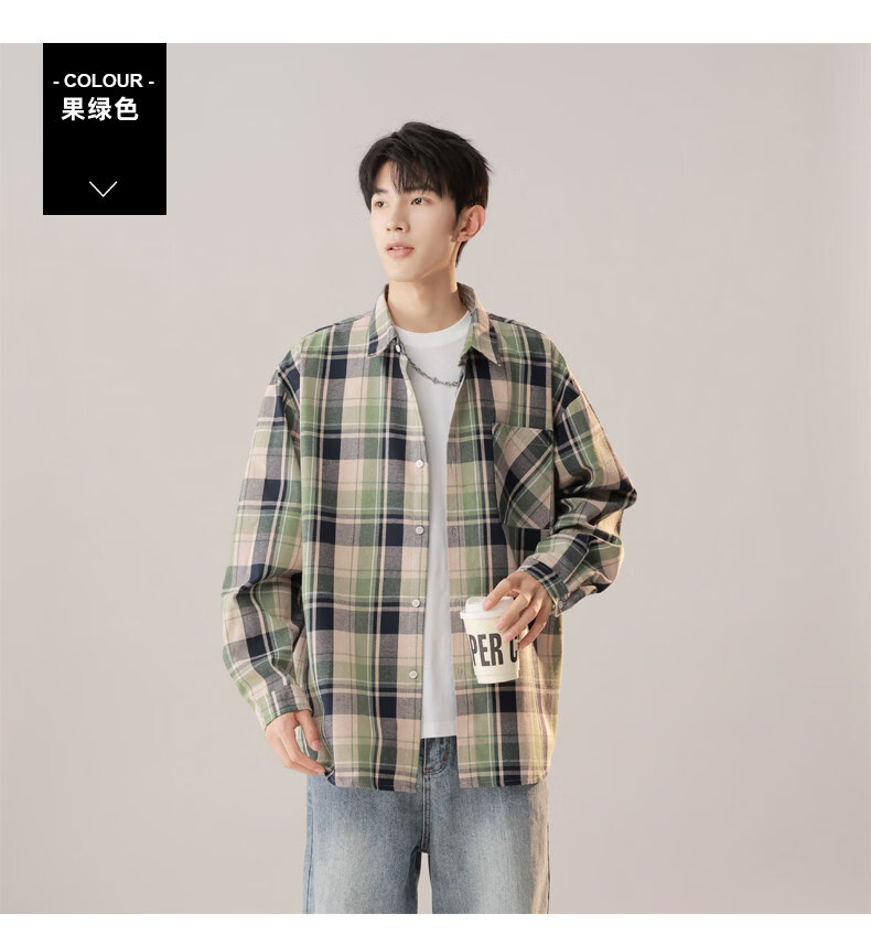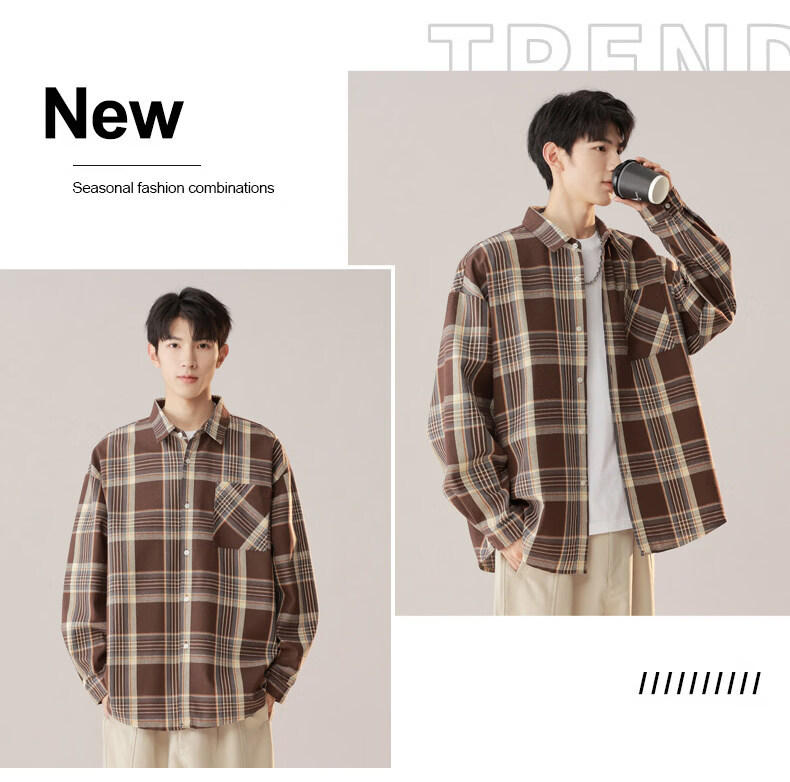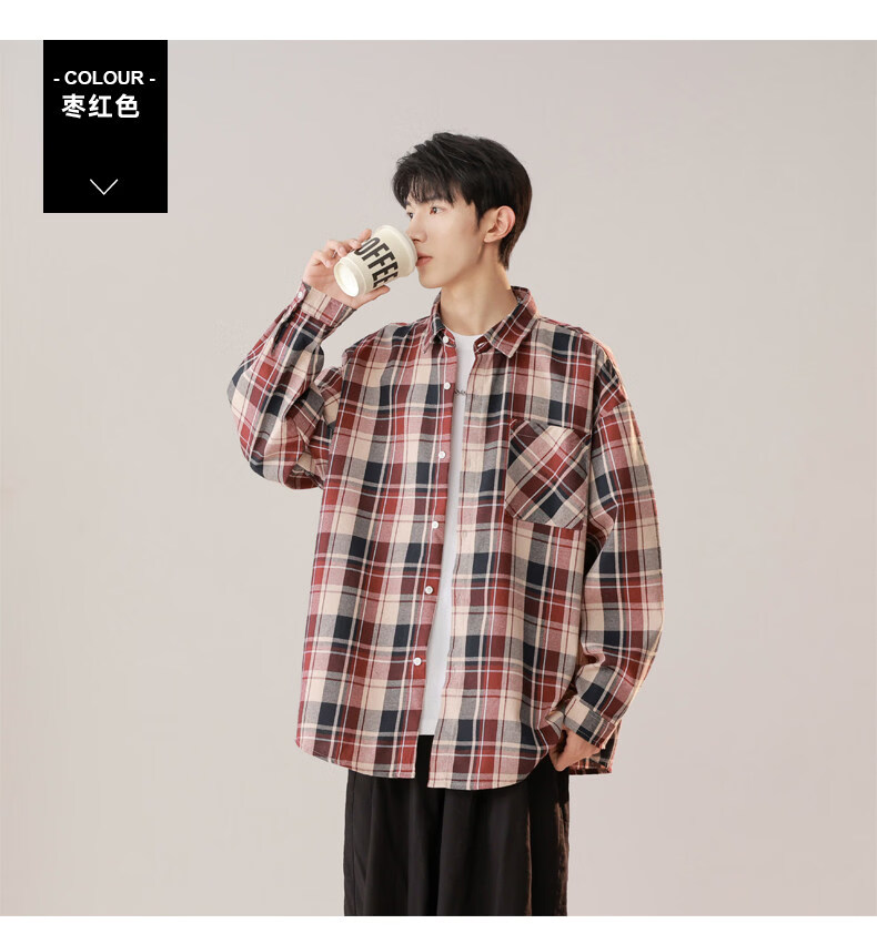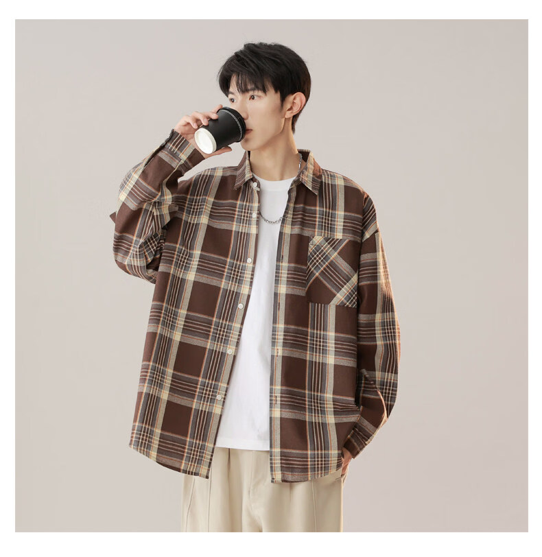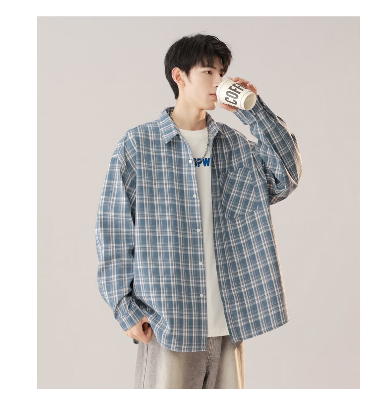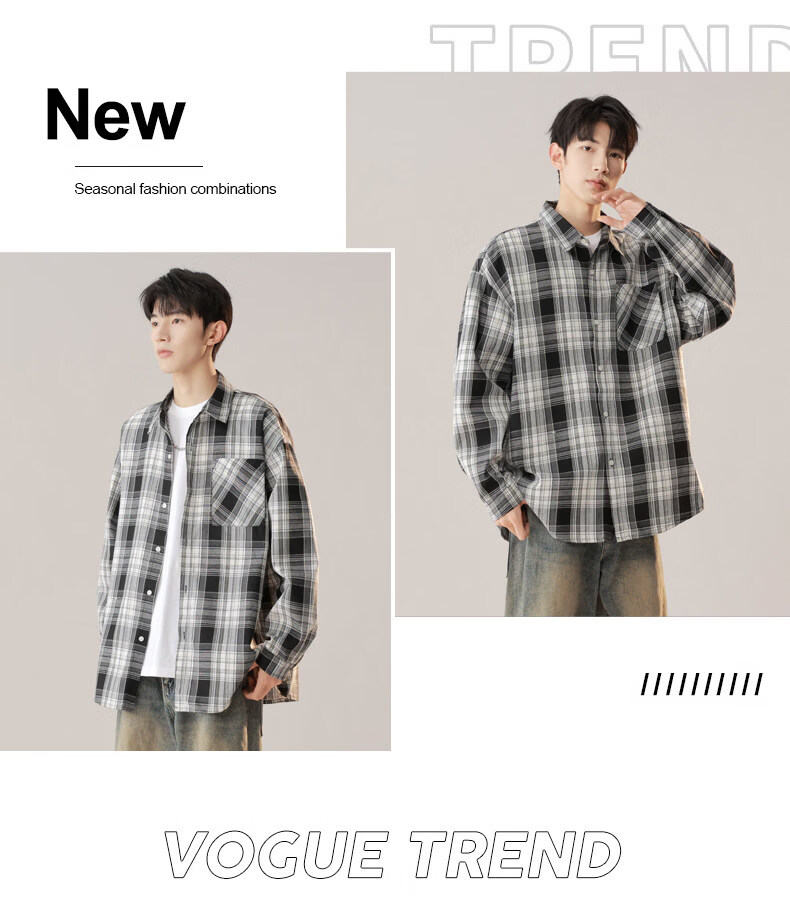 真维斯(Jeanswest)2026春季新款美式格子衬衫男士宽松休闲衬衣外套男生休闲长袖上衣 黑色 【春季新品】 S 【建议90-115斤】