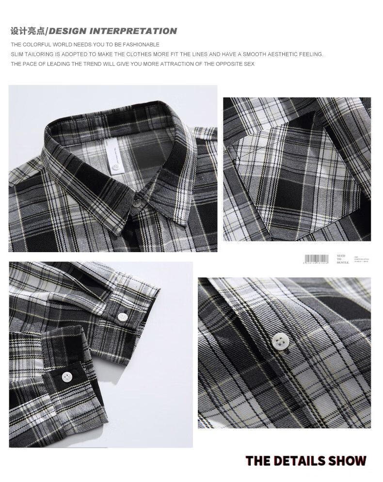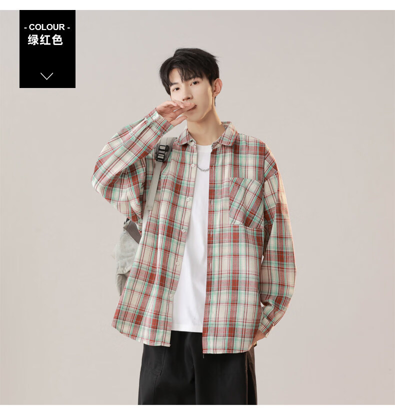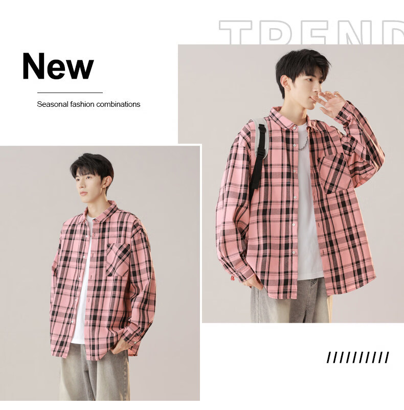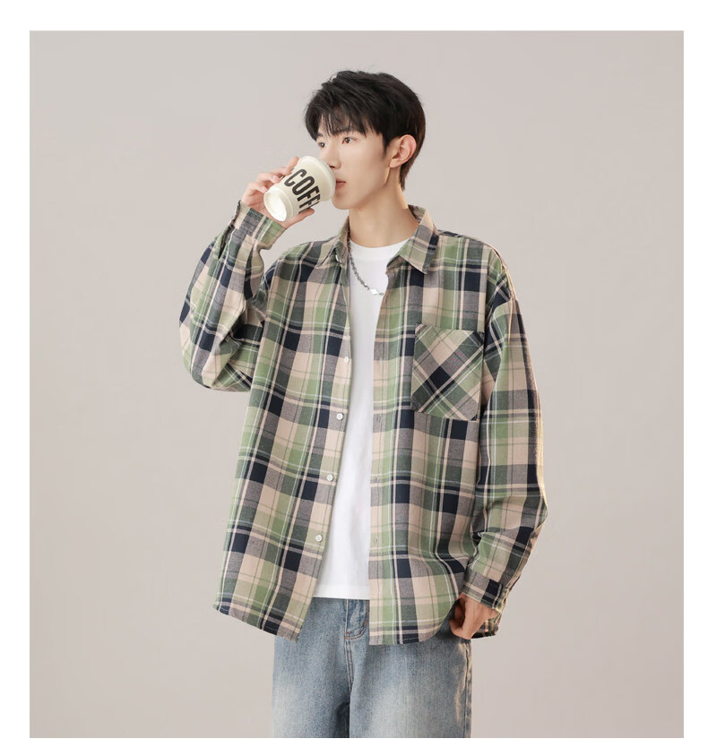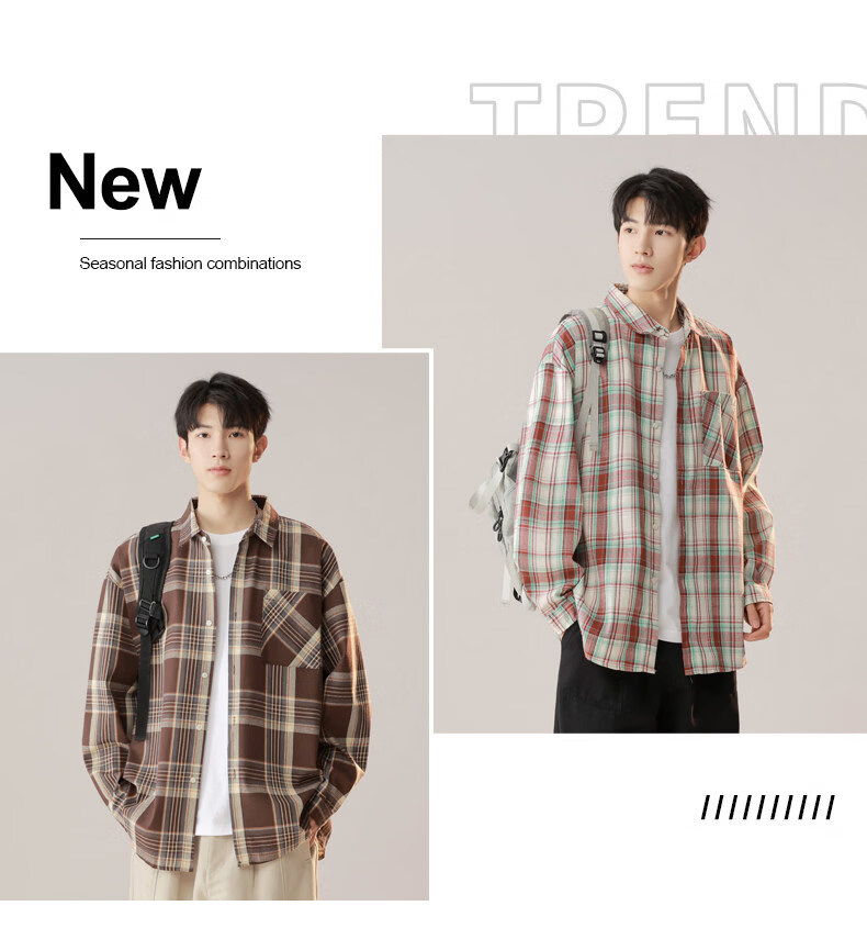 真维斯(Jeanswest)2026春季新款美式格子衬衫男士宽松休闲衬衣外套男生休闲长袖上衣 黑色 【春季新品】 S 【建议90-115斤】