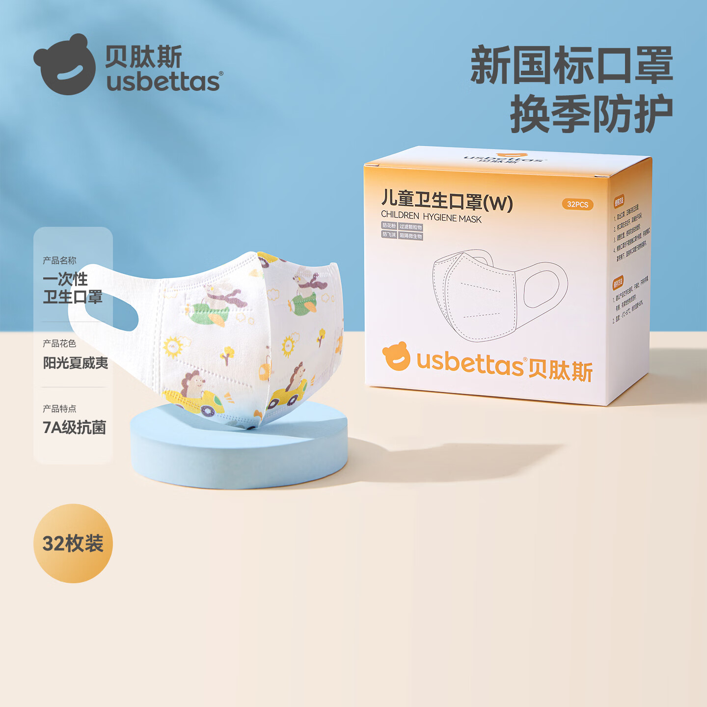 贝肽斯儿童口罩3d立体婴幼儿1-3岁月宝宝专用防护口耳罩 阳光夏威夷S码