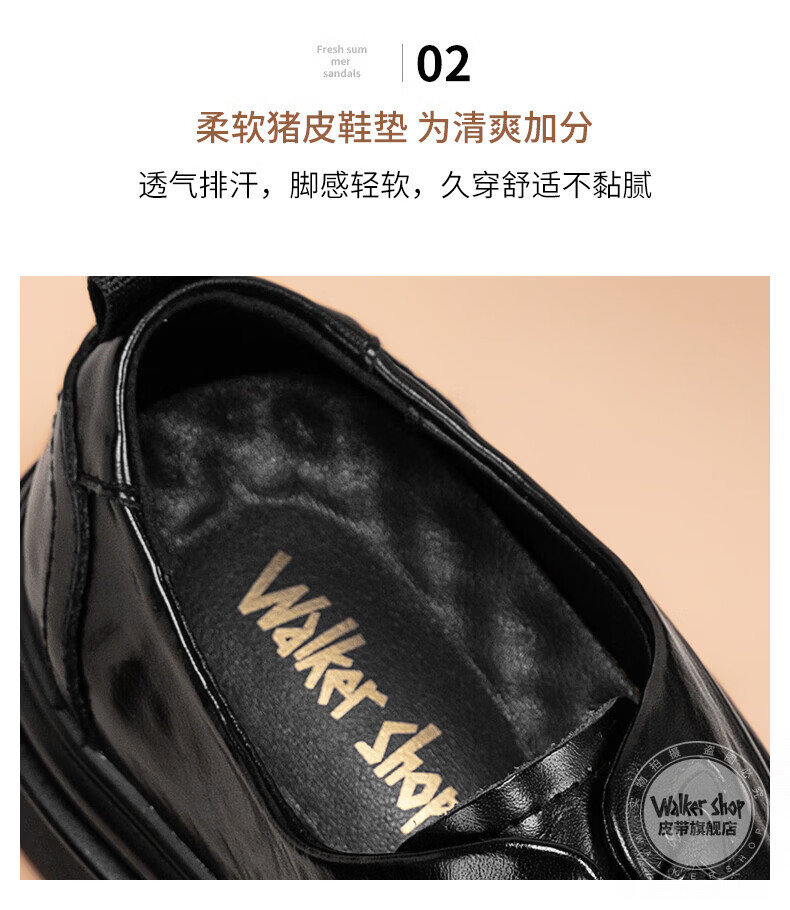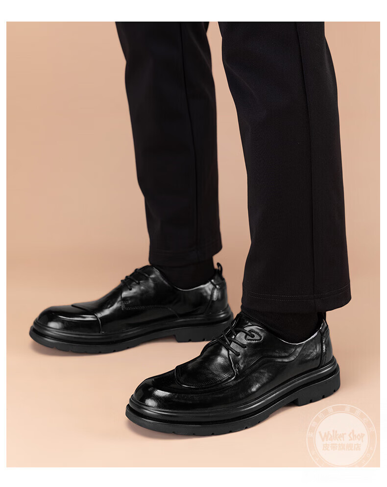 Walker Shop皮鞋男高端商务正装男士皮鞋2026新款休闲真皮透气软底内增高男鞋 黑色【内增高】 40