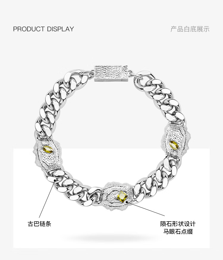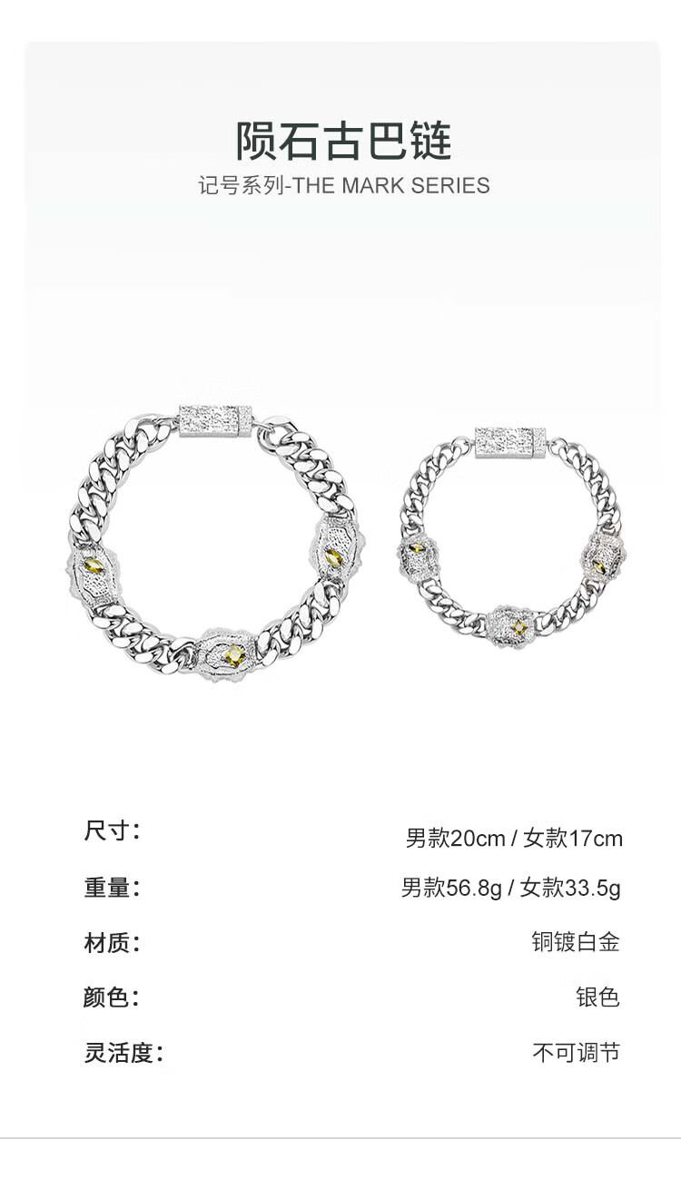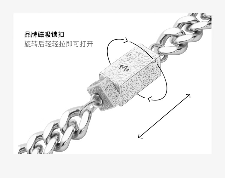 BABAMA古巴手链男士记号系列吸磁石小众饰品送男朋友生日礼物 男款链长19cm【工艺已升级】