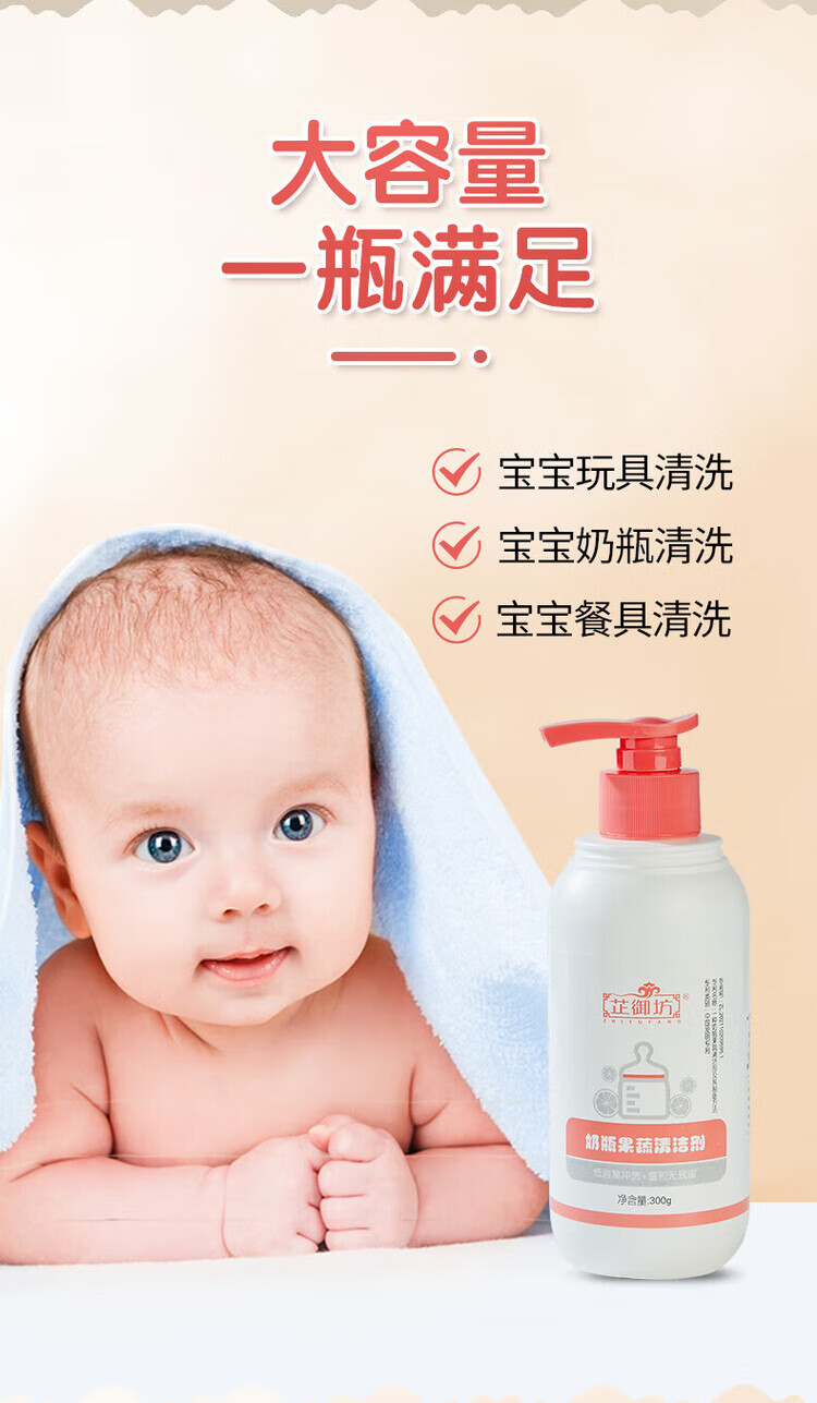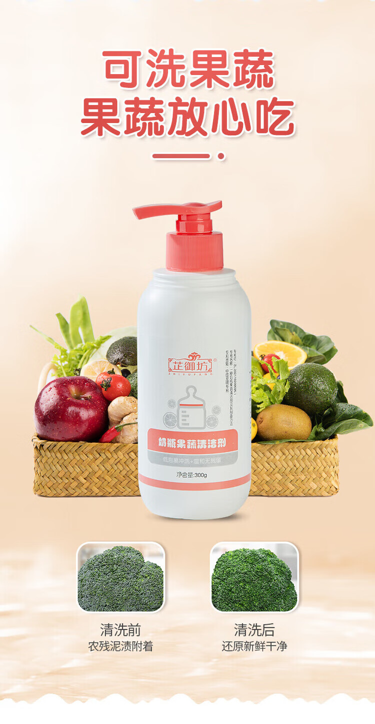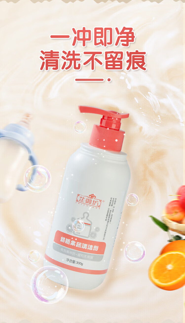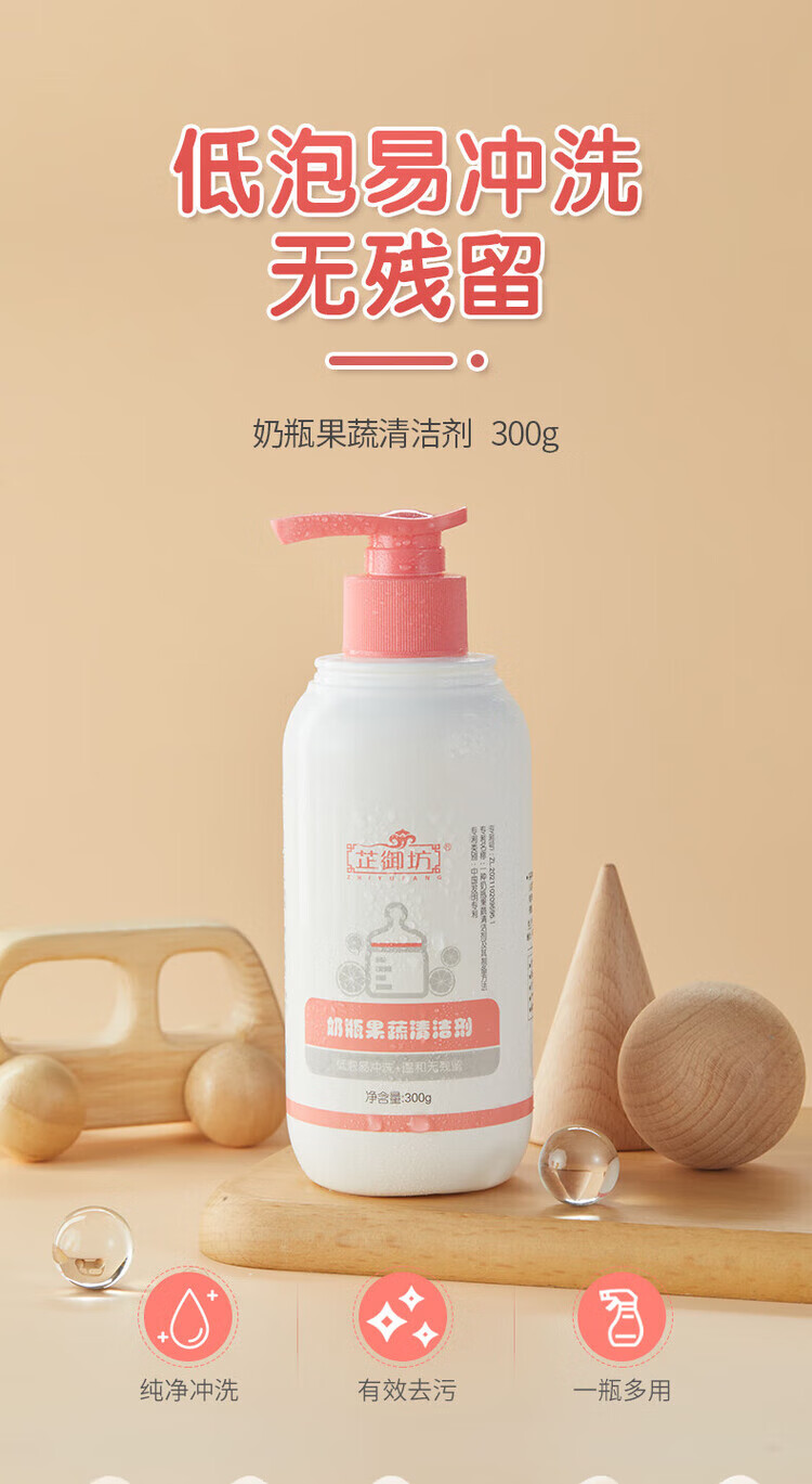 芷御坊奶瓶果蔬清洁剂婴儿专用洗奶嘴果蔬餐玩具婴儿童洗洁精 【超值必备】奶瓶果蔬清洁剂300g*2【新旧包装随机发】
