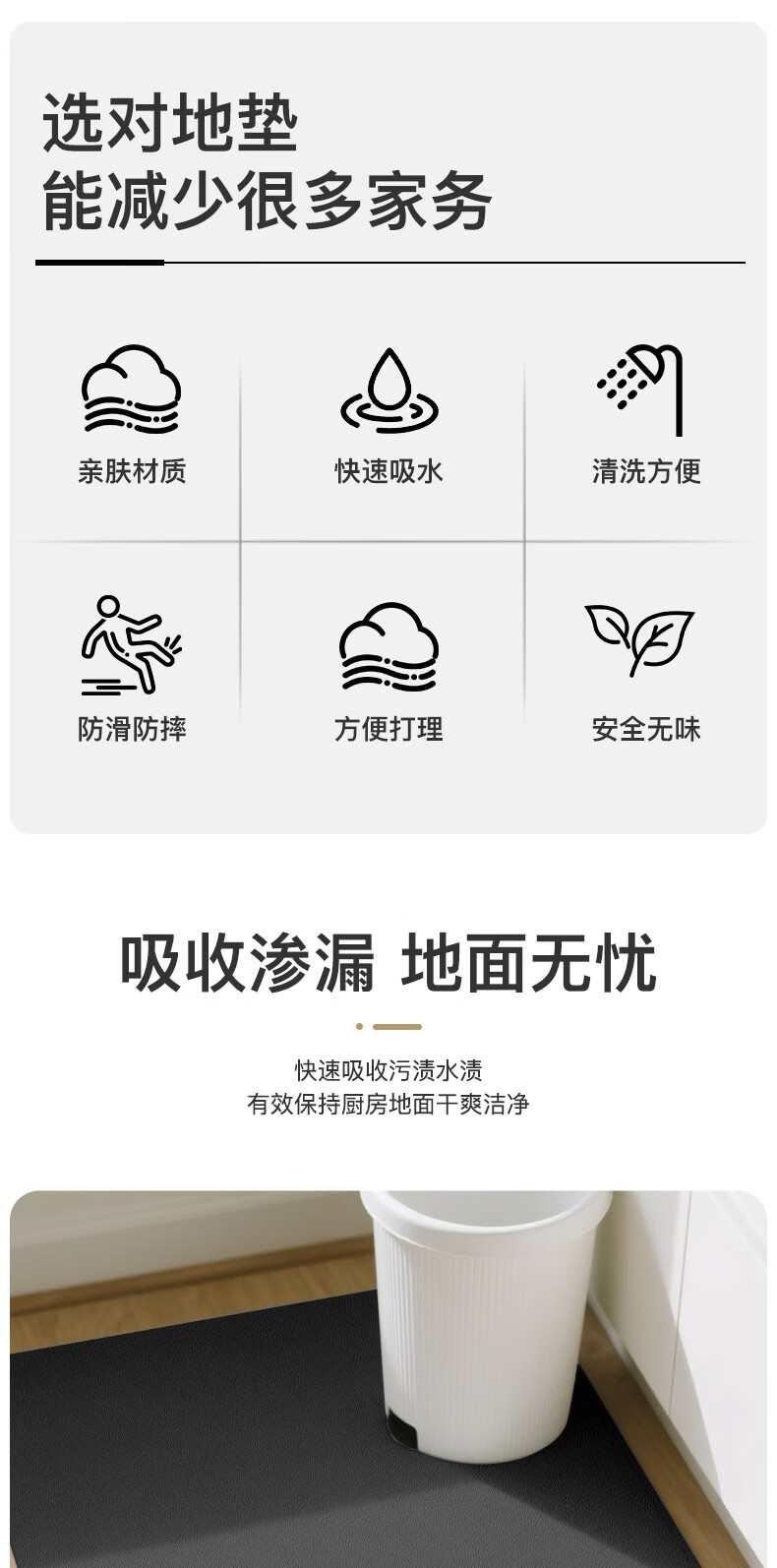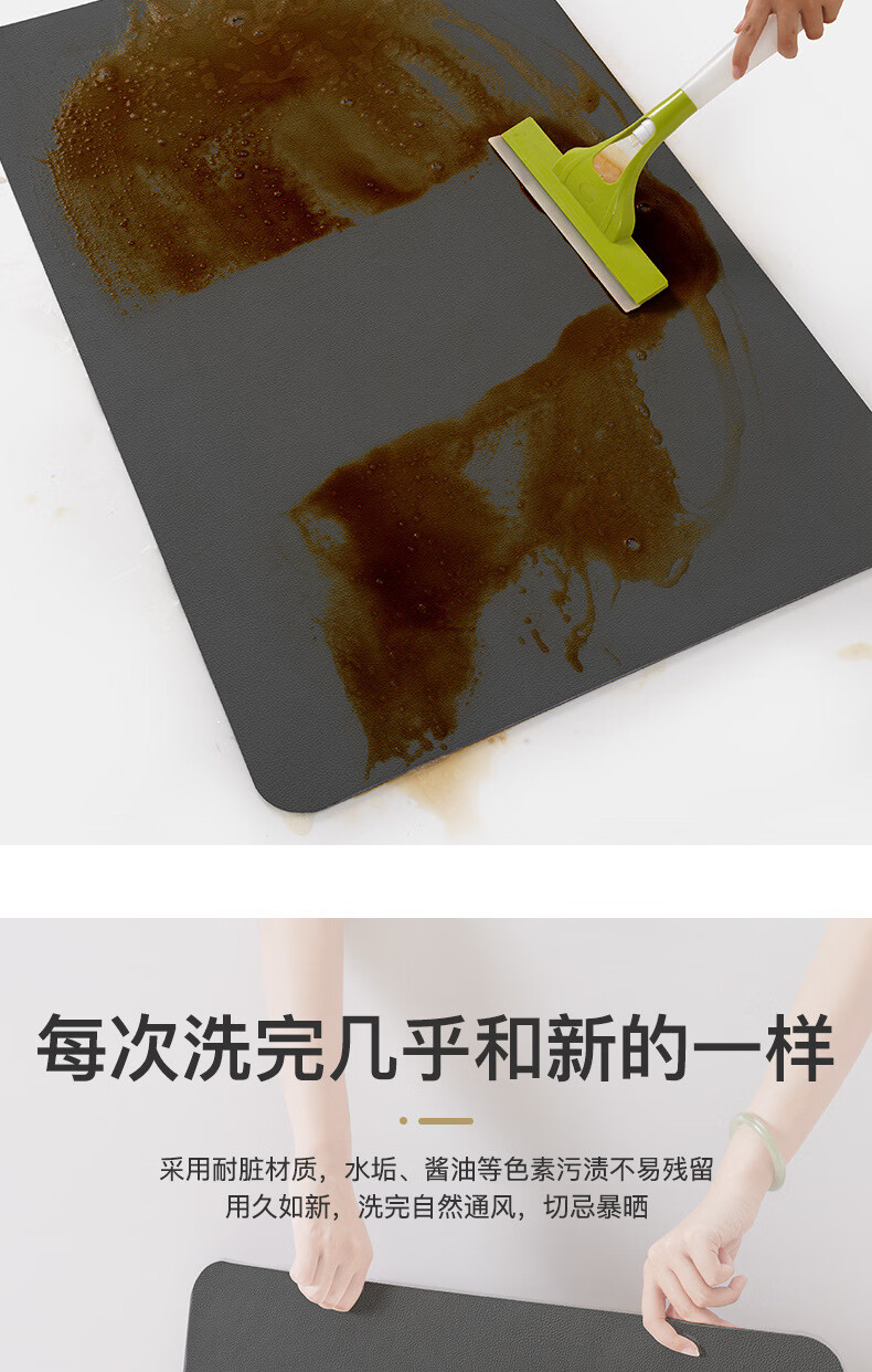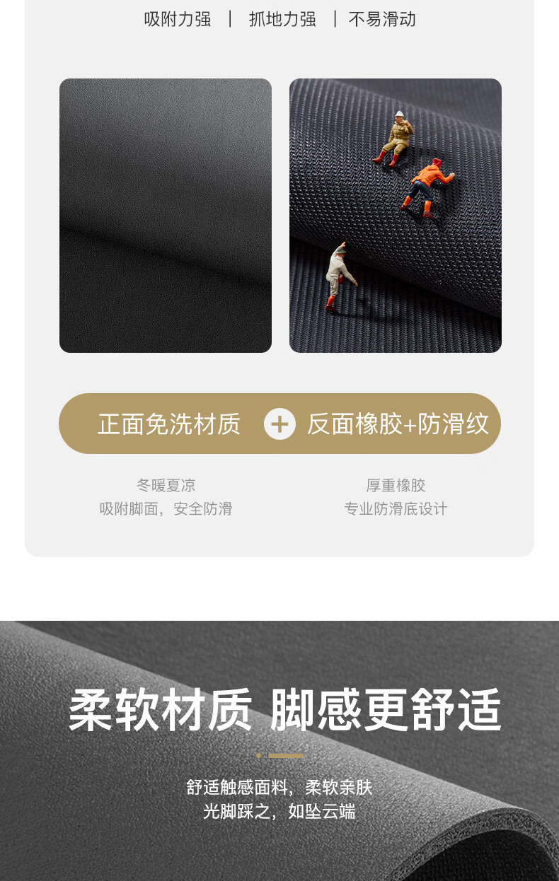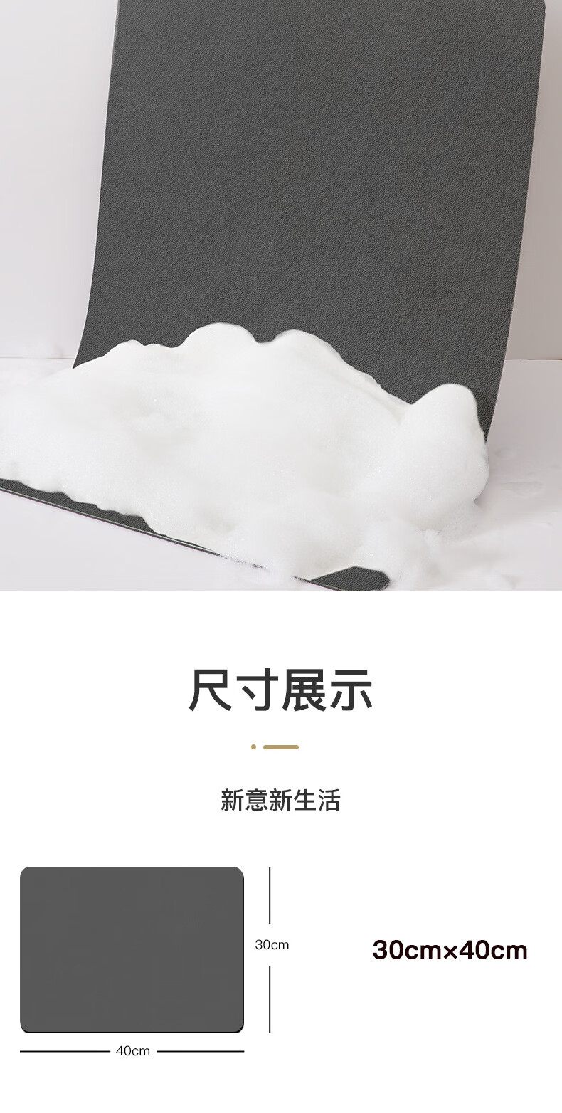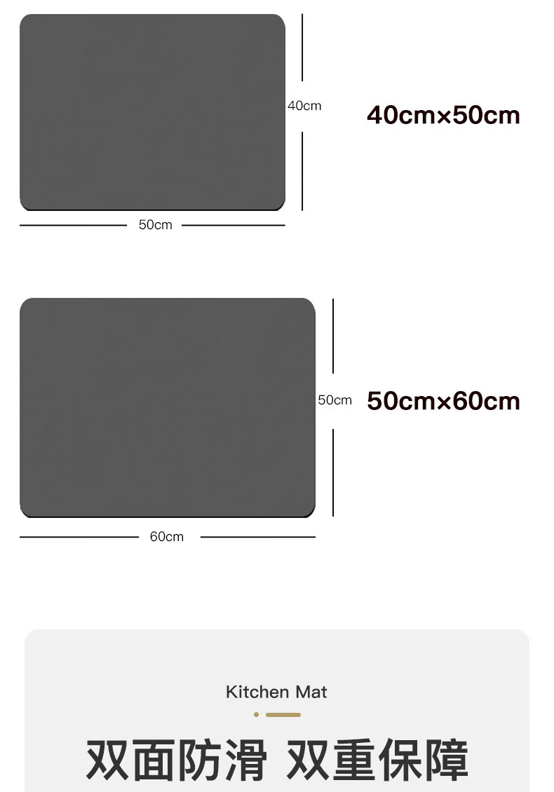 语森忆家用厨房垃圾桶地垫简约吸水垫耐脏防滑免洗易打理脚垫速干地毯 免洗-极简深灰 40cm*50cm