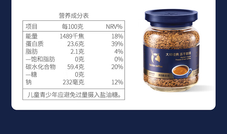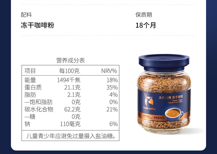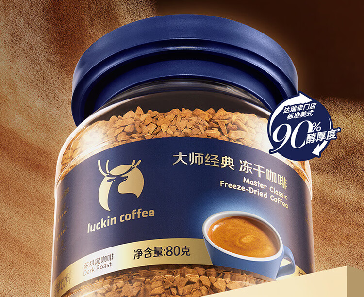 瑞幸咖啡速溶黑咖啡 大师经典深烘口味90g瓶装 0糖拿铁美式400次咖啡