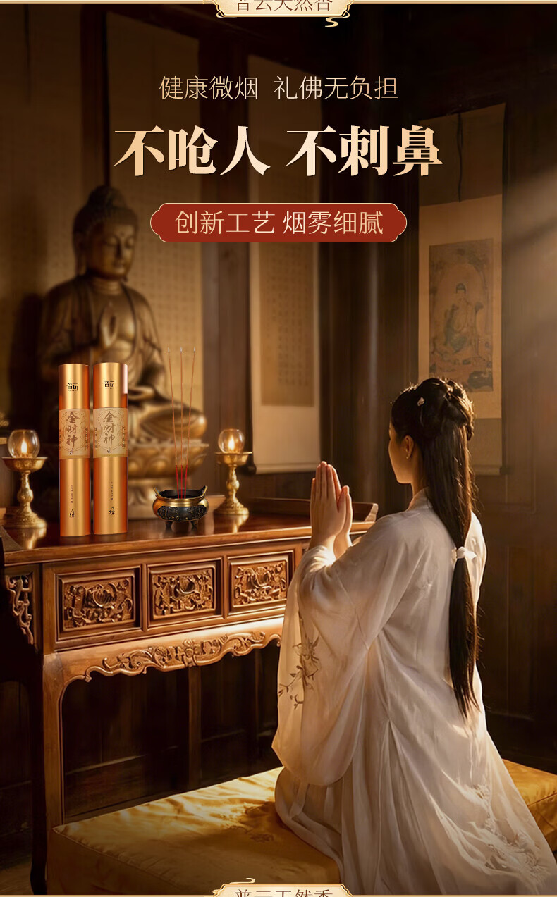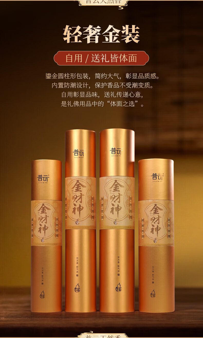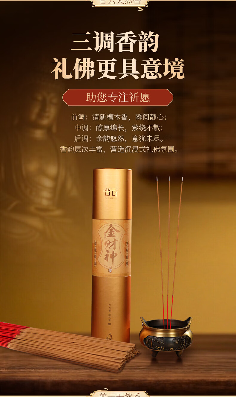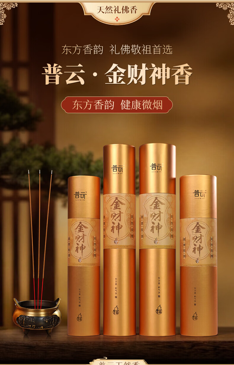 普云檀香礼香佛香老檀竹签立香招财香微烟供香熏香拜拜香金檀香财神香 金财神香39.5CM(750支)桶装 600g 无规格