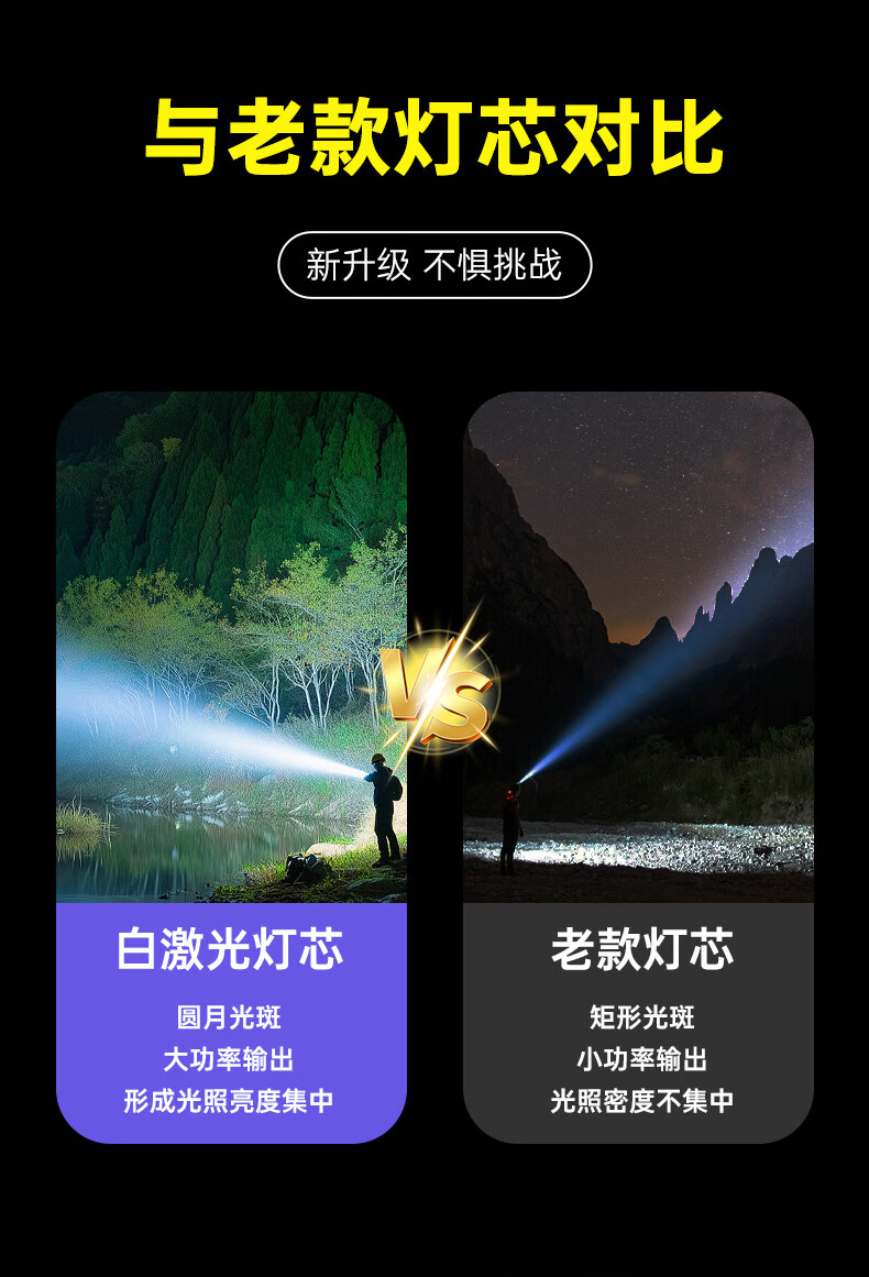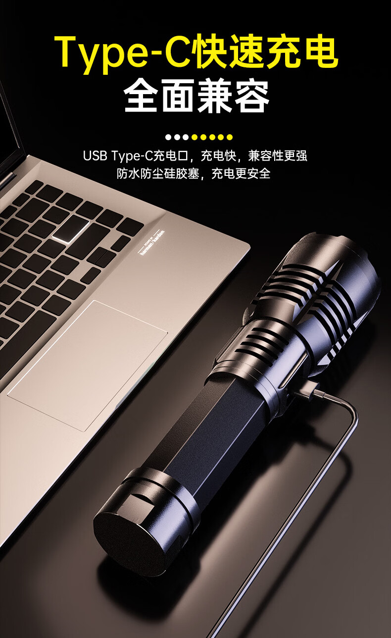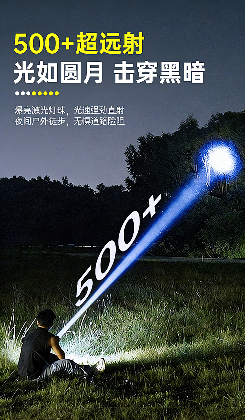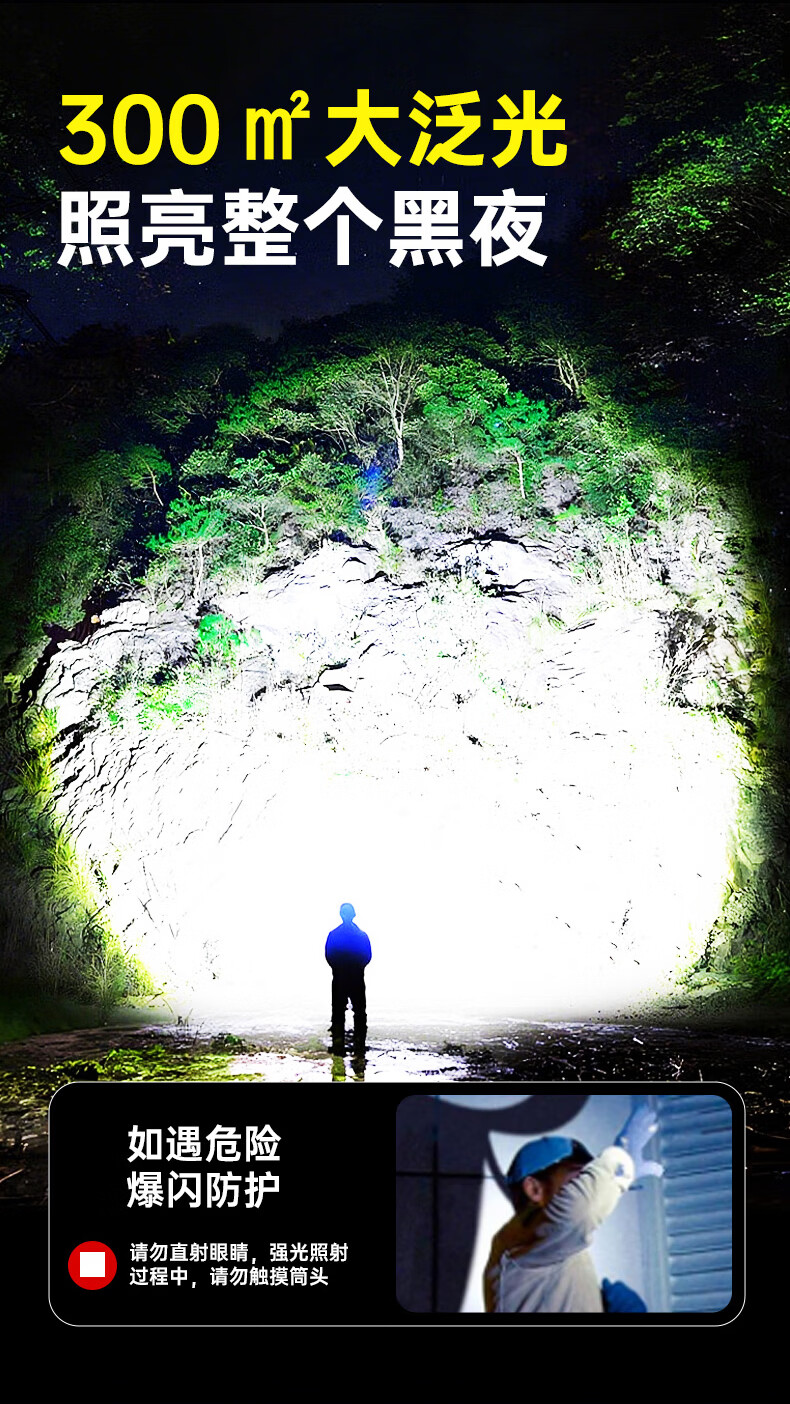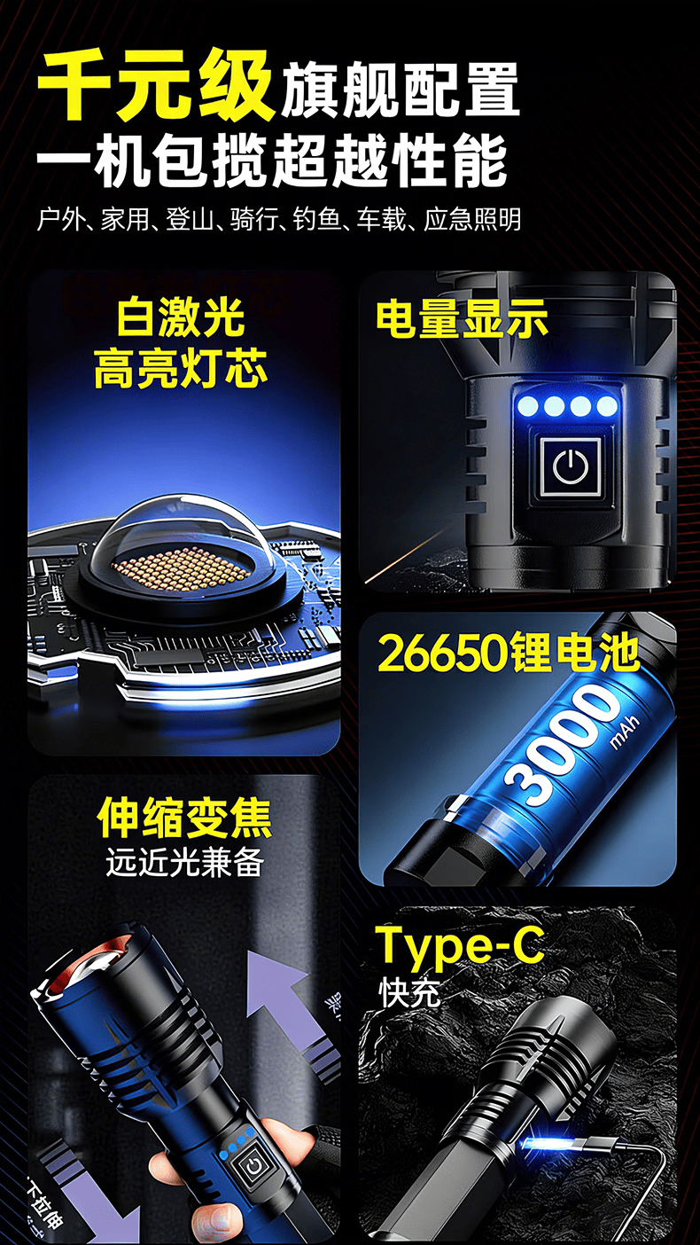 奥克斯强光手电筒超亮变焦远射长续航白激光便携军户外骑行家应急专用灯