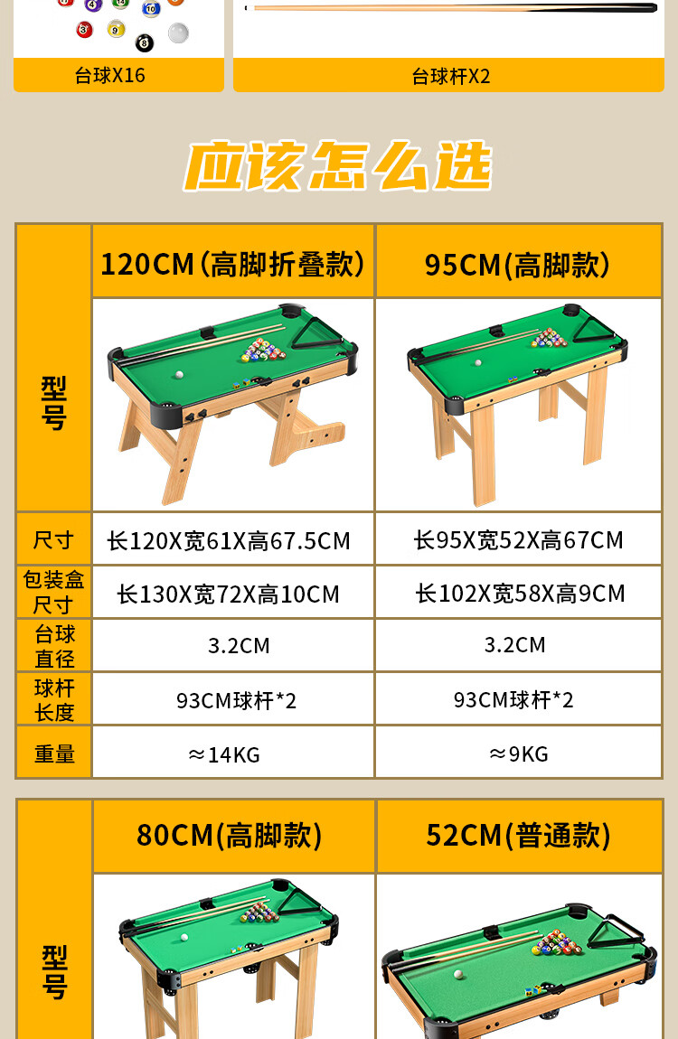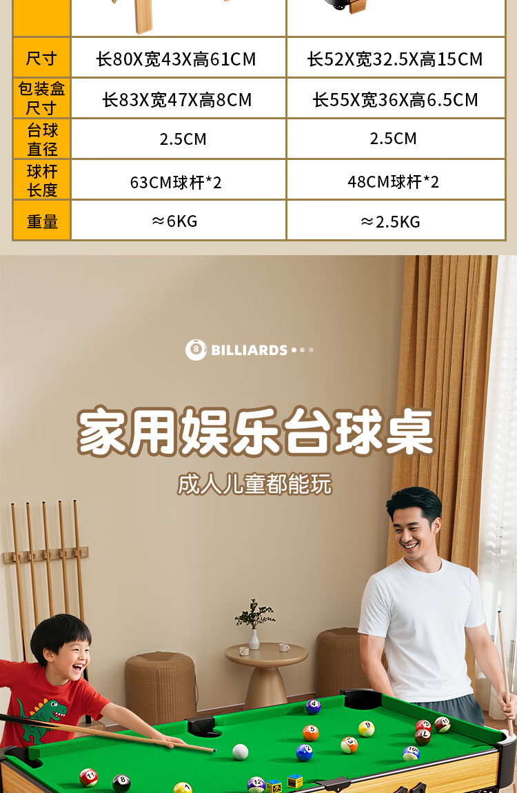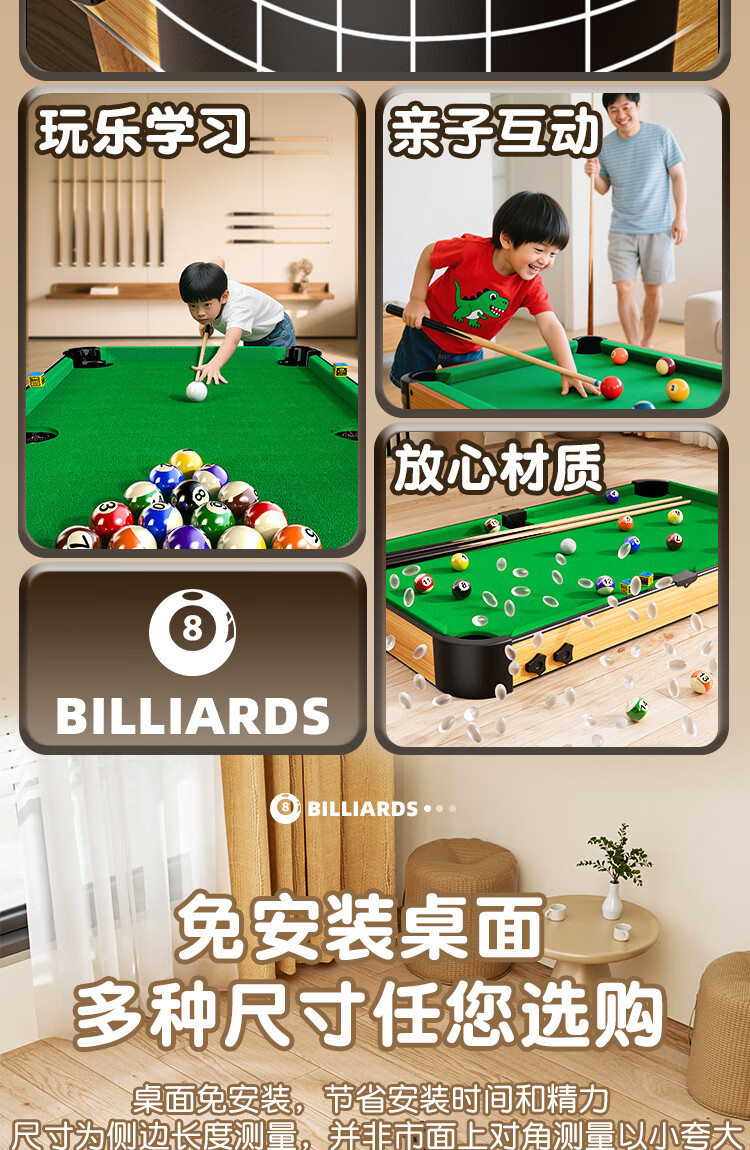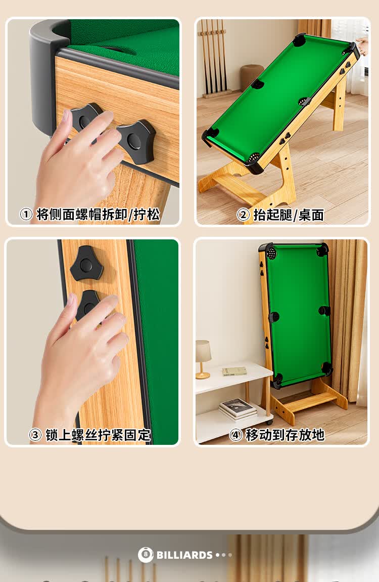 糖米 TEMI台球桌6-12岁男孩家用室内迷你桌球台可折叠儿童节日生日礼物玩具
